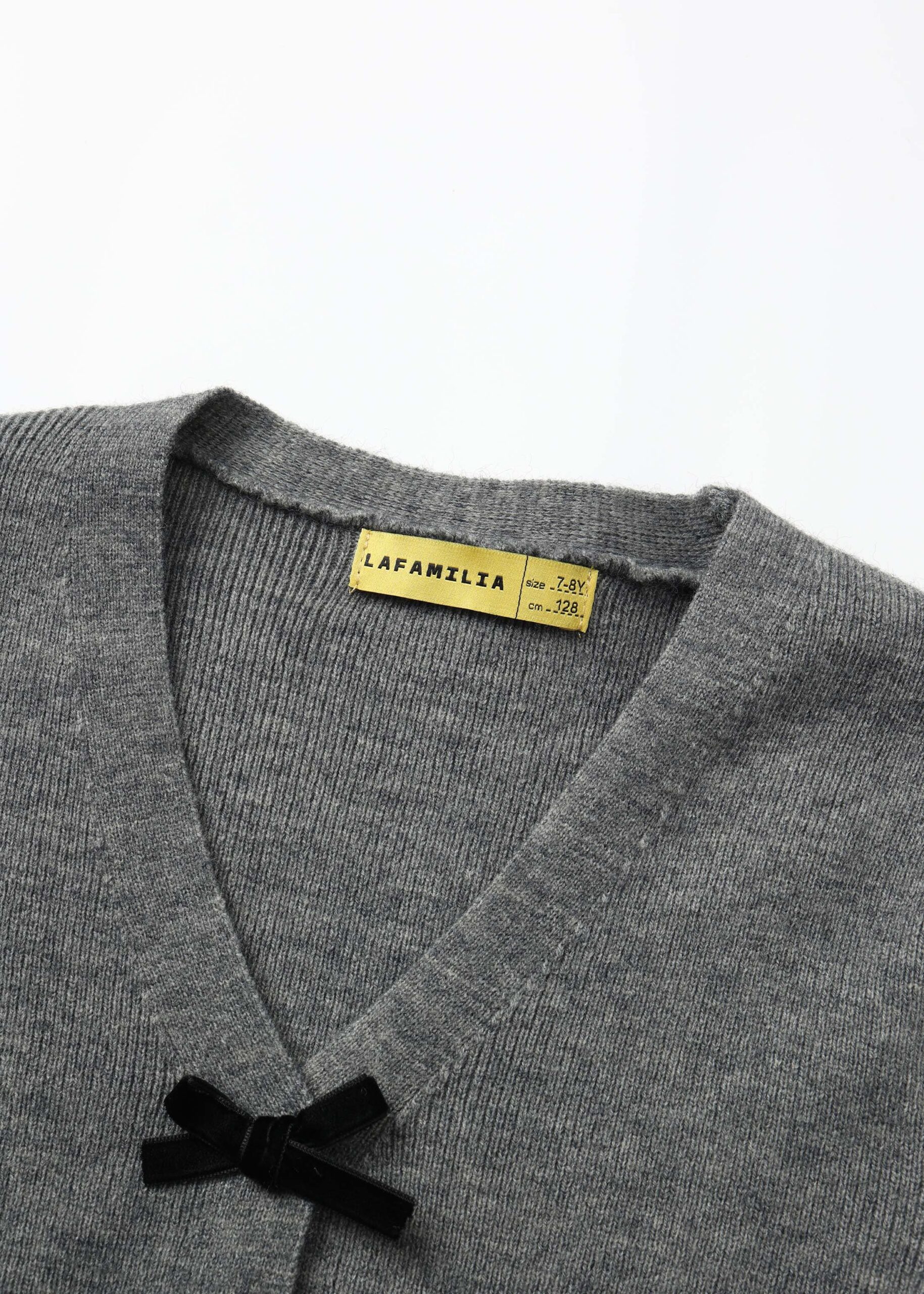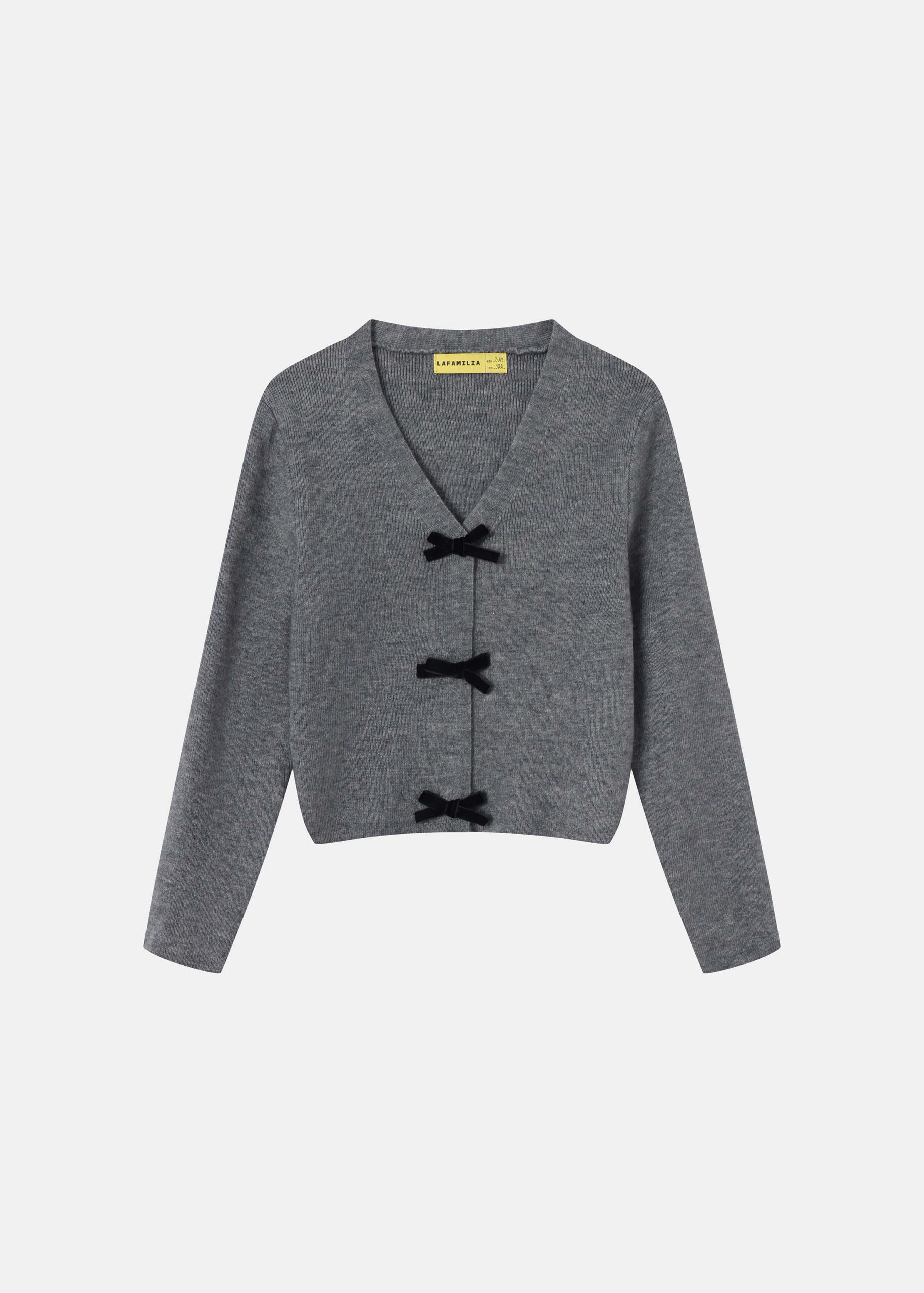 Kids girl jacket, knitted fabric, Bow decor from the front, V neck, long sleeves, unique and modern