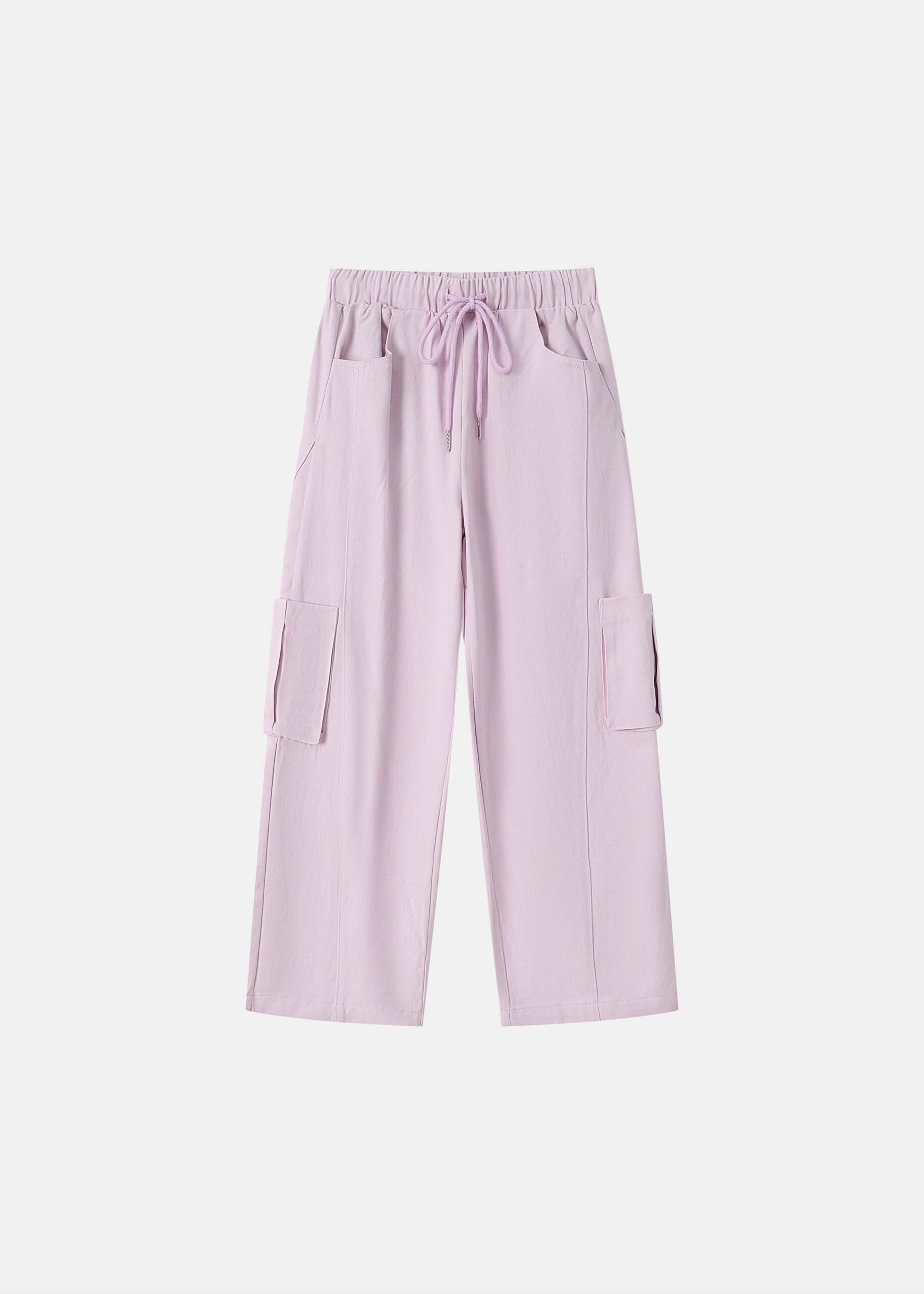 Kids girl trouser, cargo, elastic waist with front tie, front and side pockets, comfortable and practical