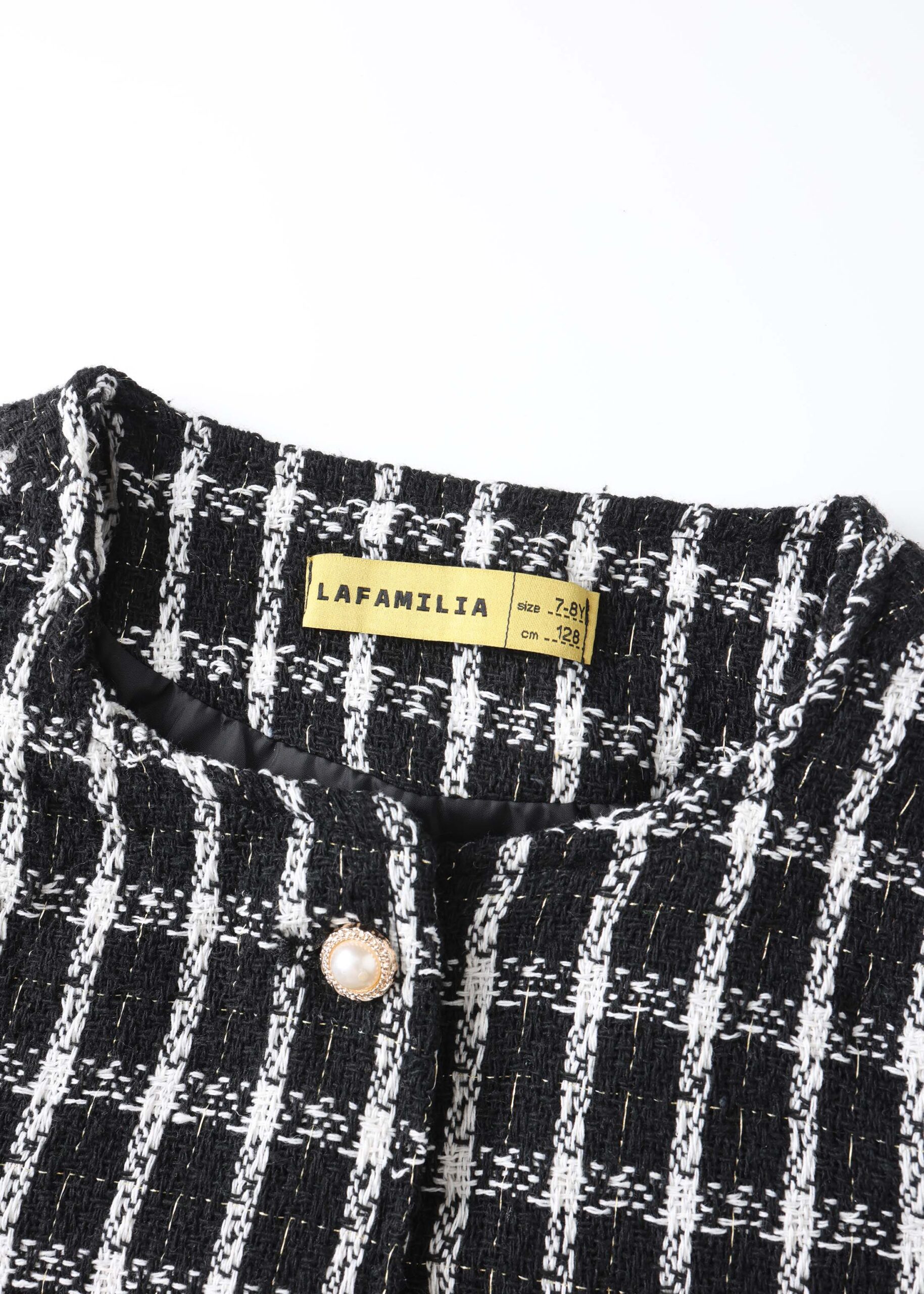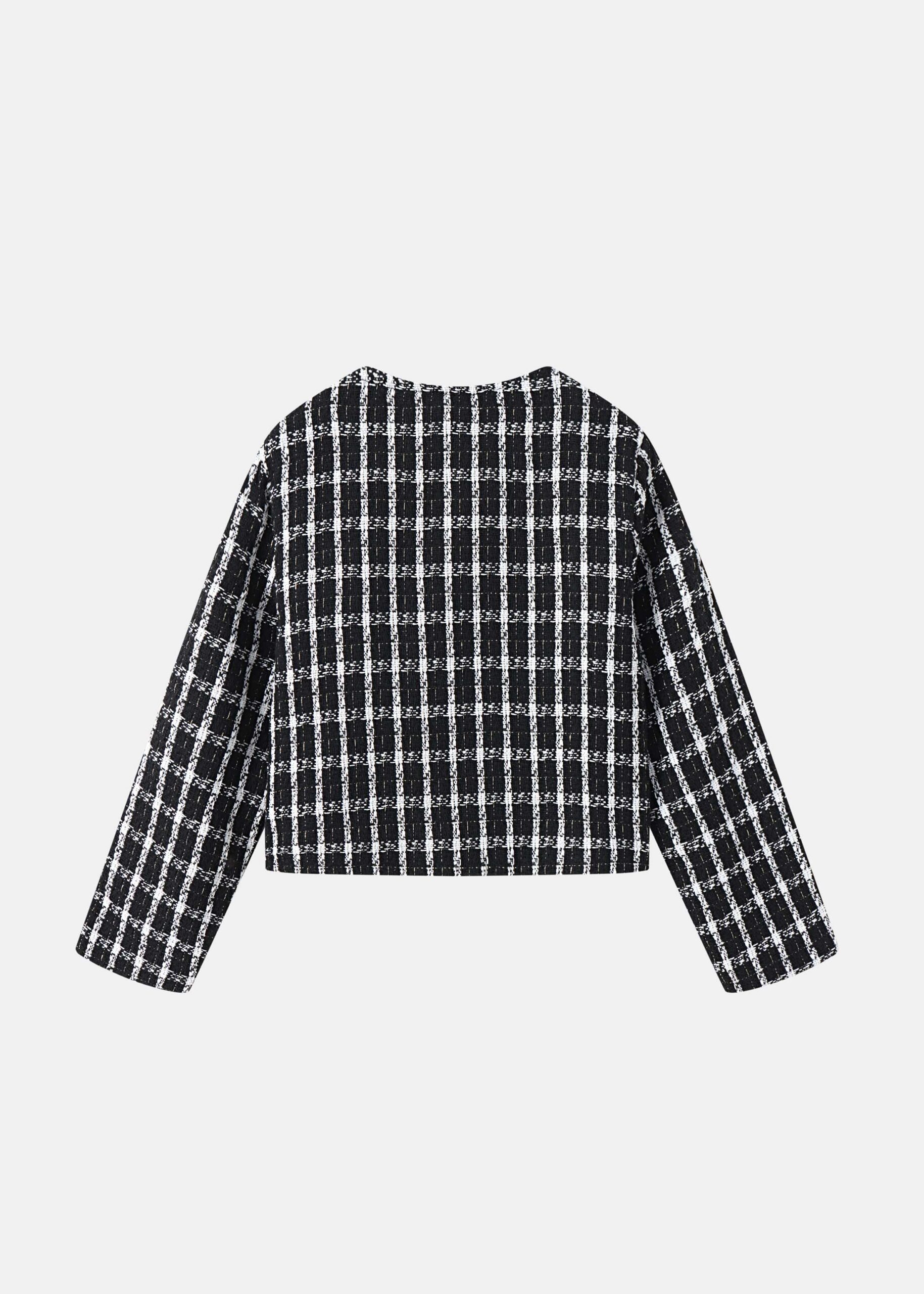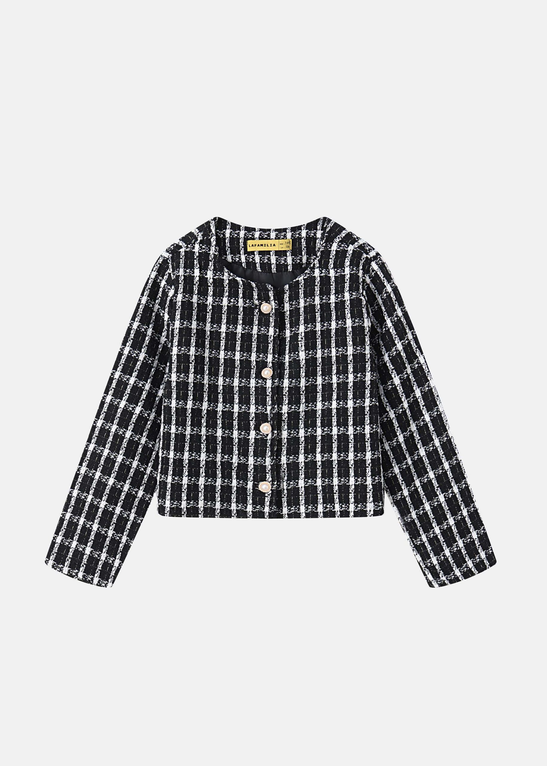 Kids girl jacket, checkered, round neck, front buttons to close, long sleeves, unique and modern