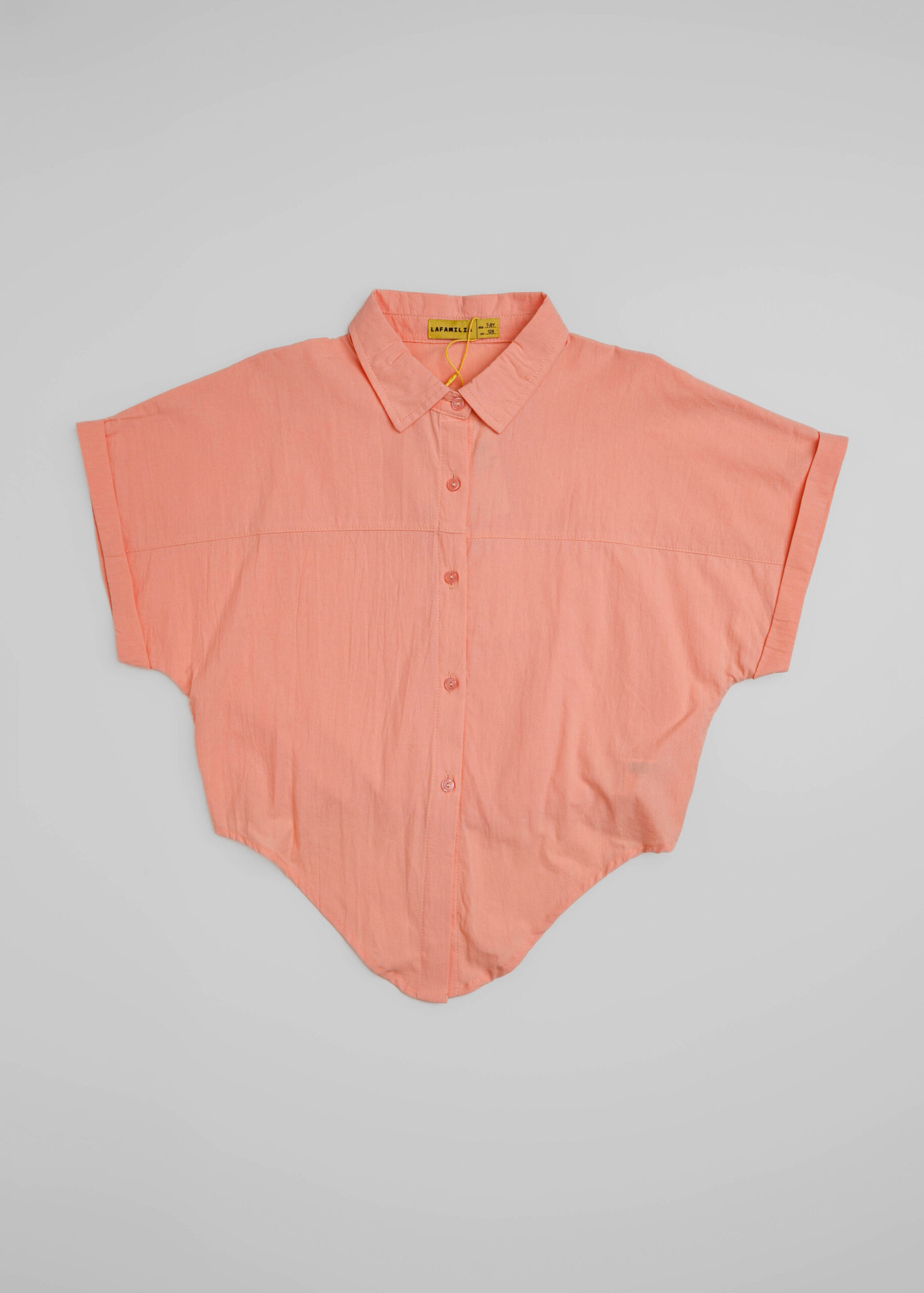 Kids girl shirt, plain, cropped, front buttons to close, short sleeves, rolled collar, front tie, unique and modern