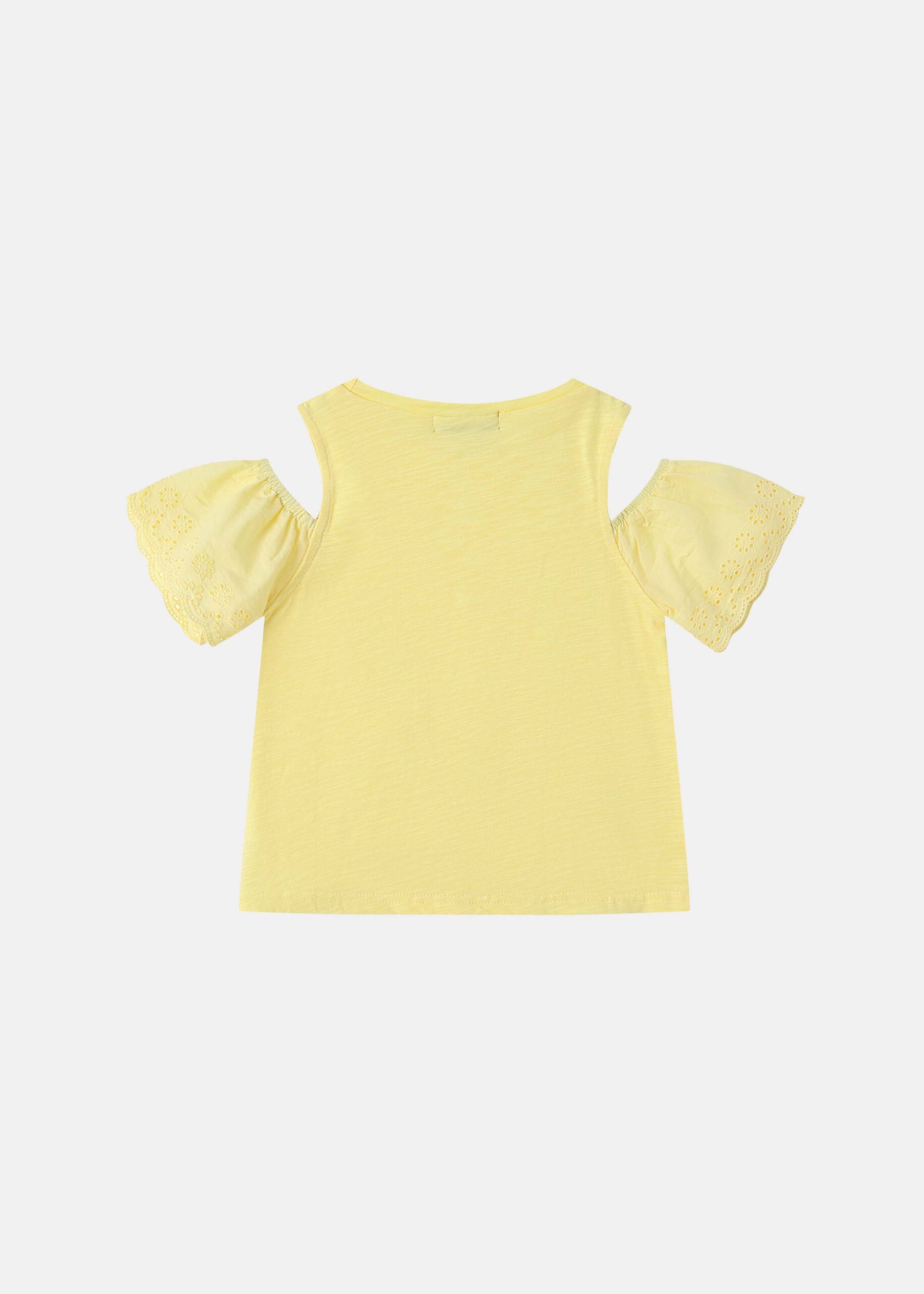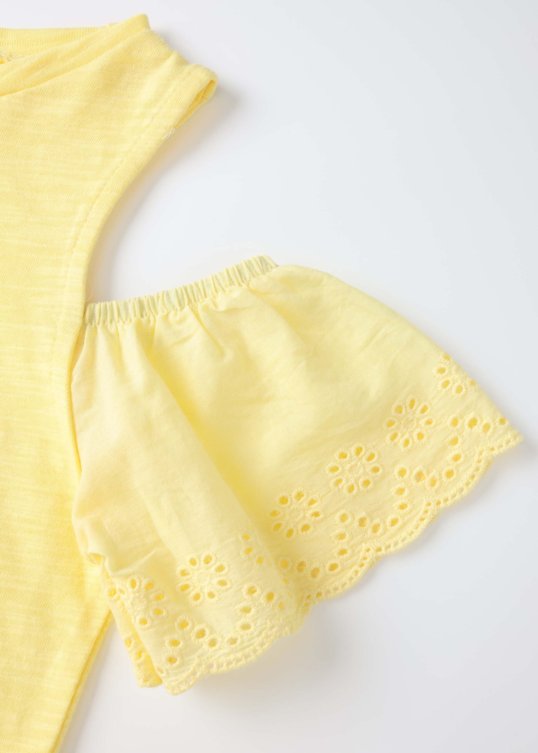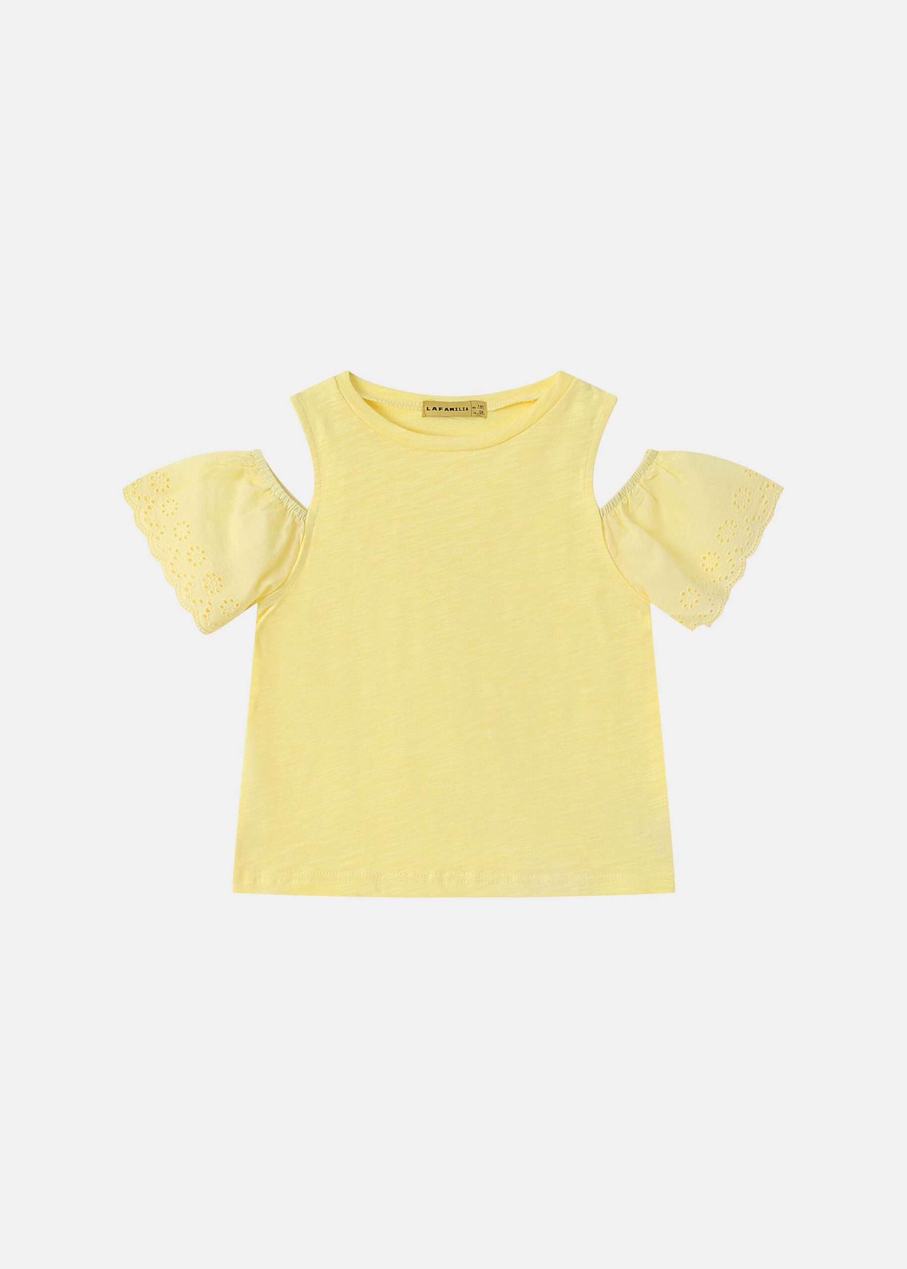 Kids girl top, round neck, cut-out shoulders with eyelet embroidery short sleeves, unique and modern