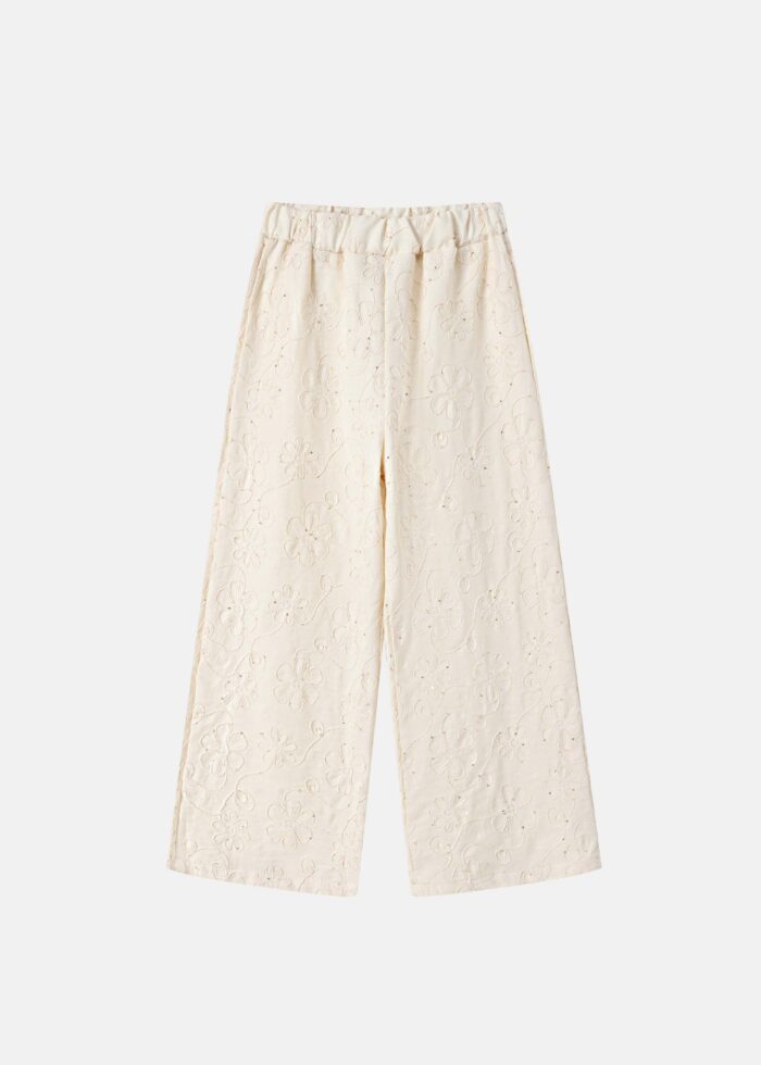 Kids girl trouser, embroidered, elastic waist, straight-leg, unique and modern