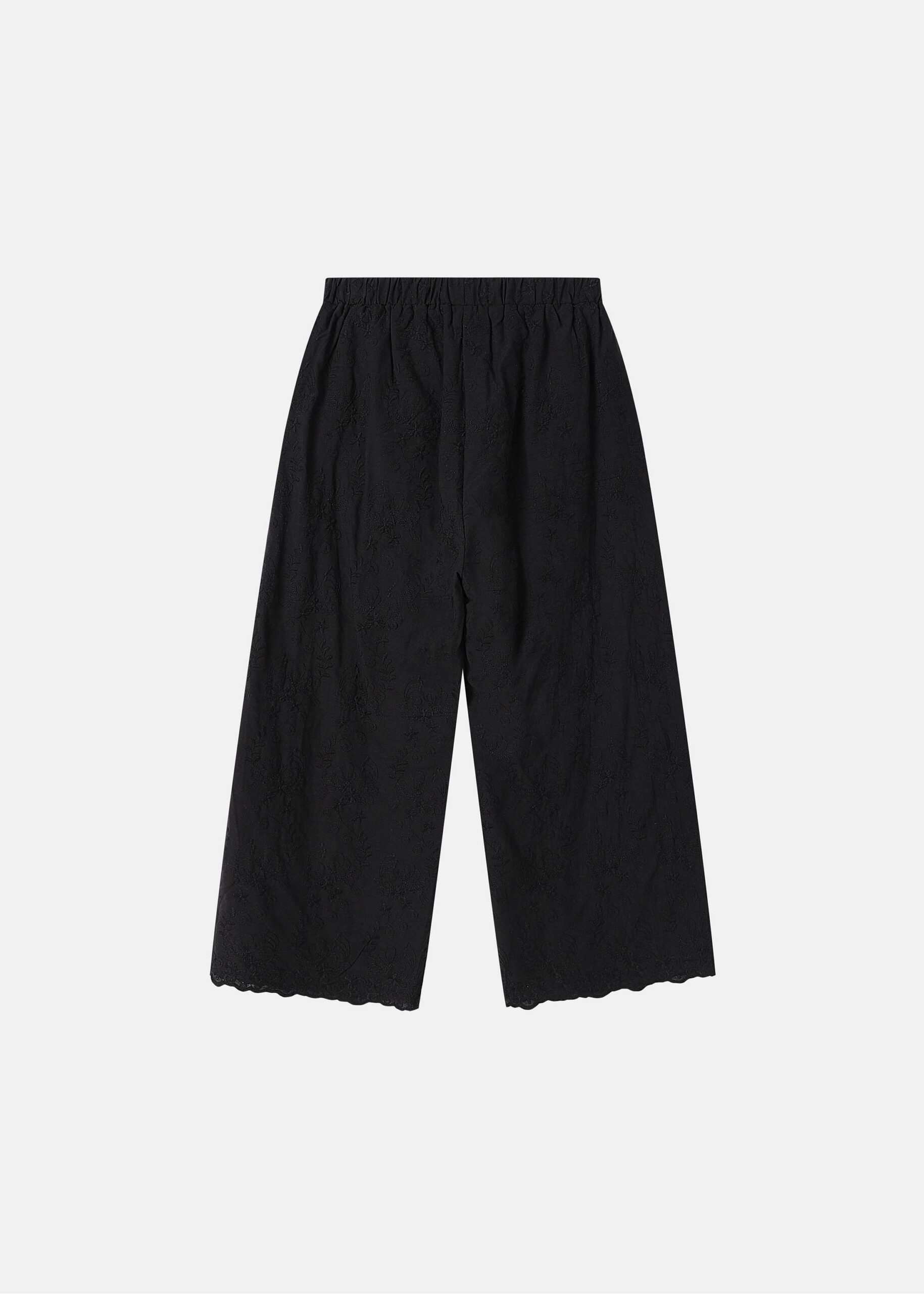 Kids girl trouser, wide-leg, embroidered, elastic waist, front pockets, comfortable and practical