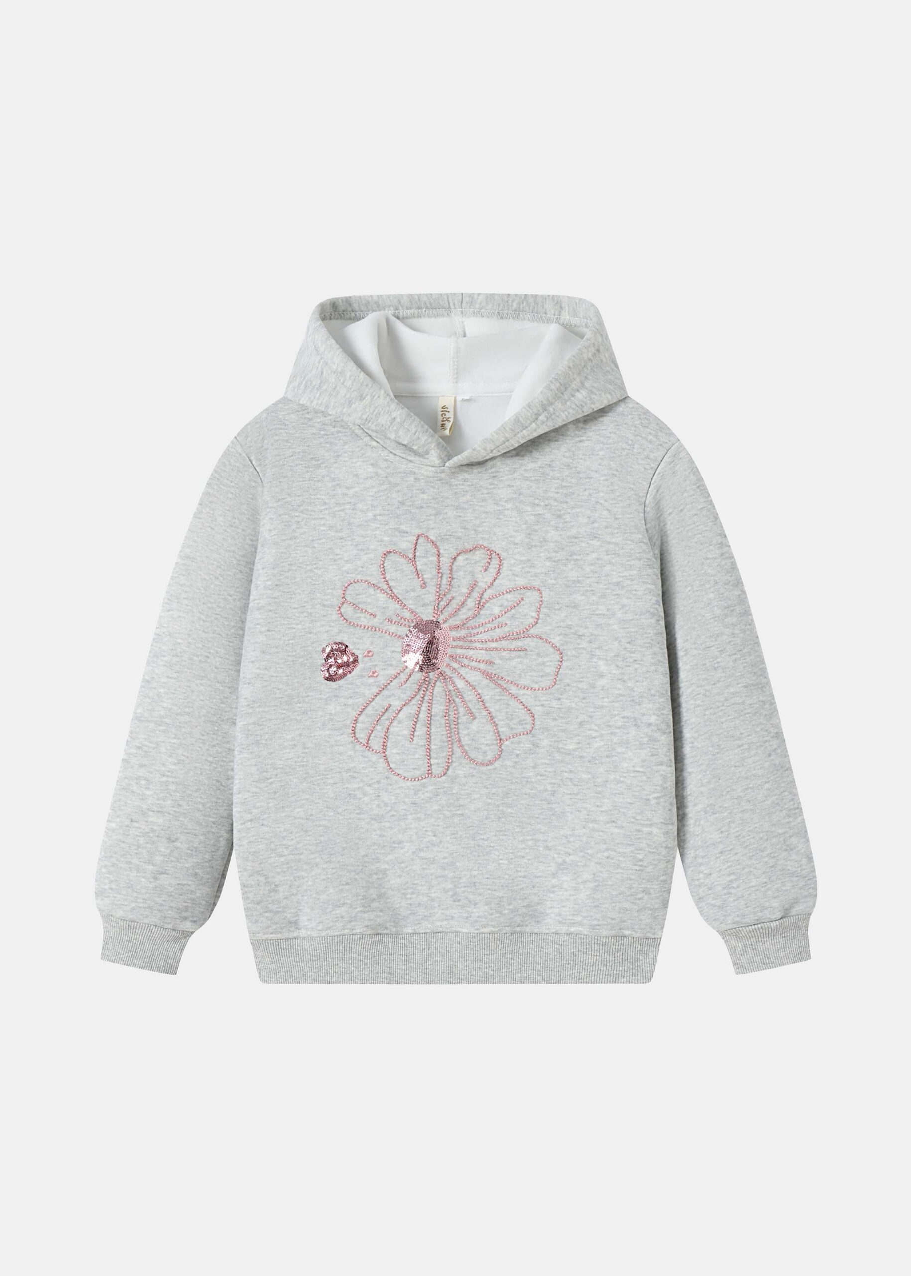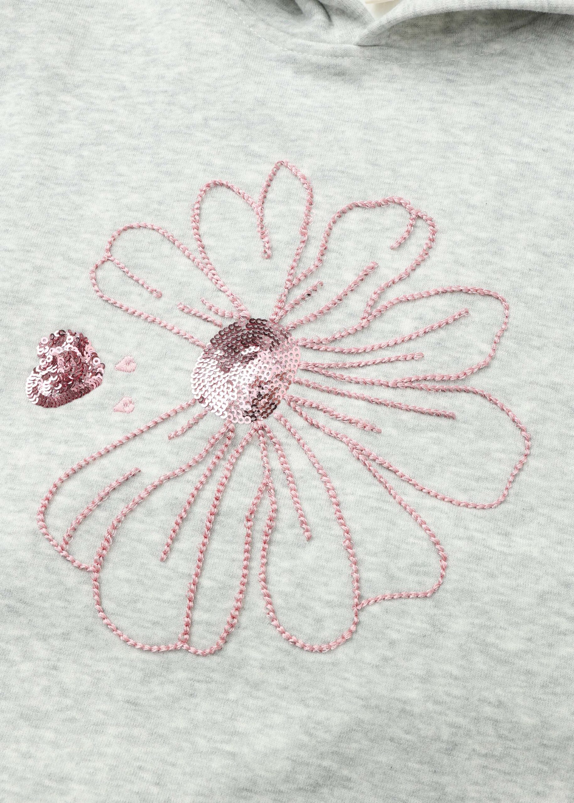 Kids girl hoodie, flower printed from the front with beads decor, hood, long sleeves with tight cuff, comfortable and unique
