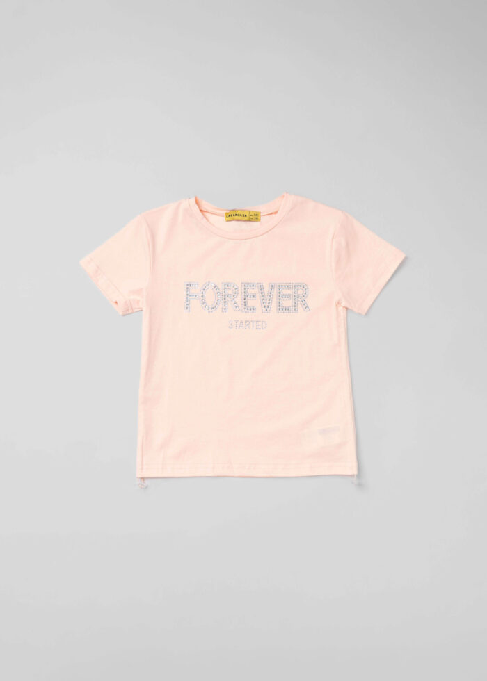 Kids girl t-shirt, “Forever Started” printed from the front with strass, round neck, short sleeves, unique and modern