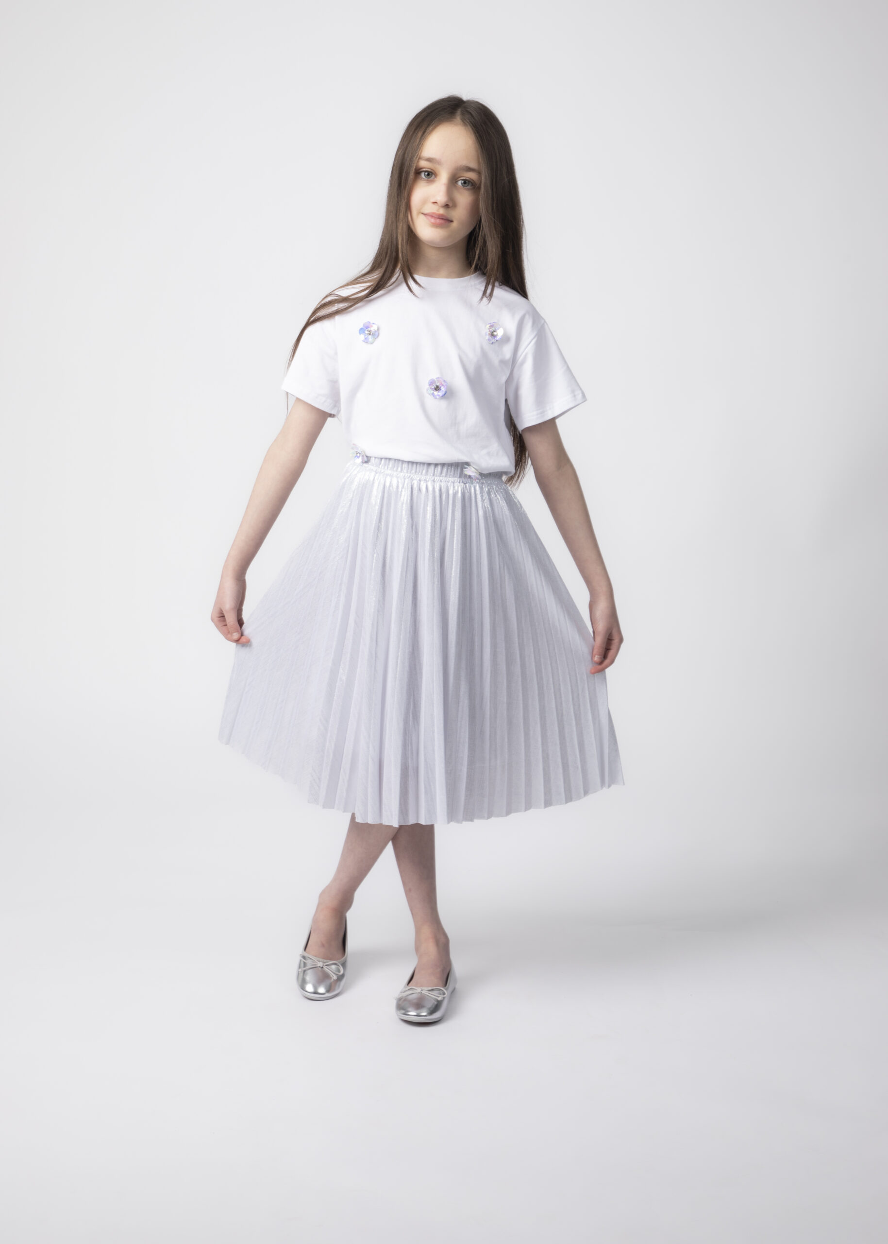 Kids girl skirt, long, glittery fabric, pleated, elastic waist, unique and modern