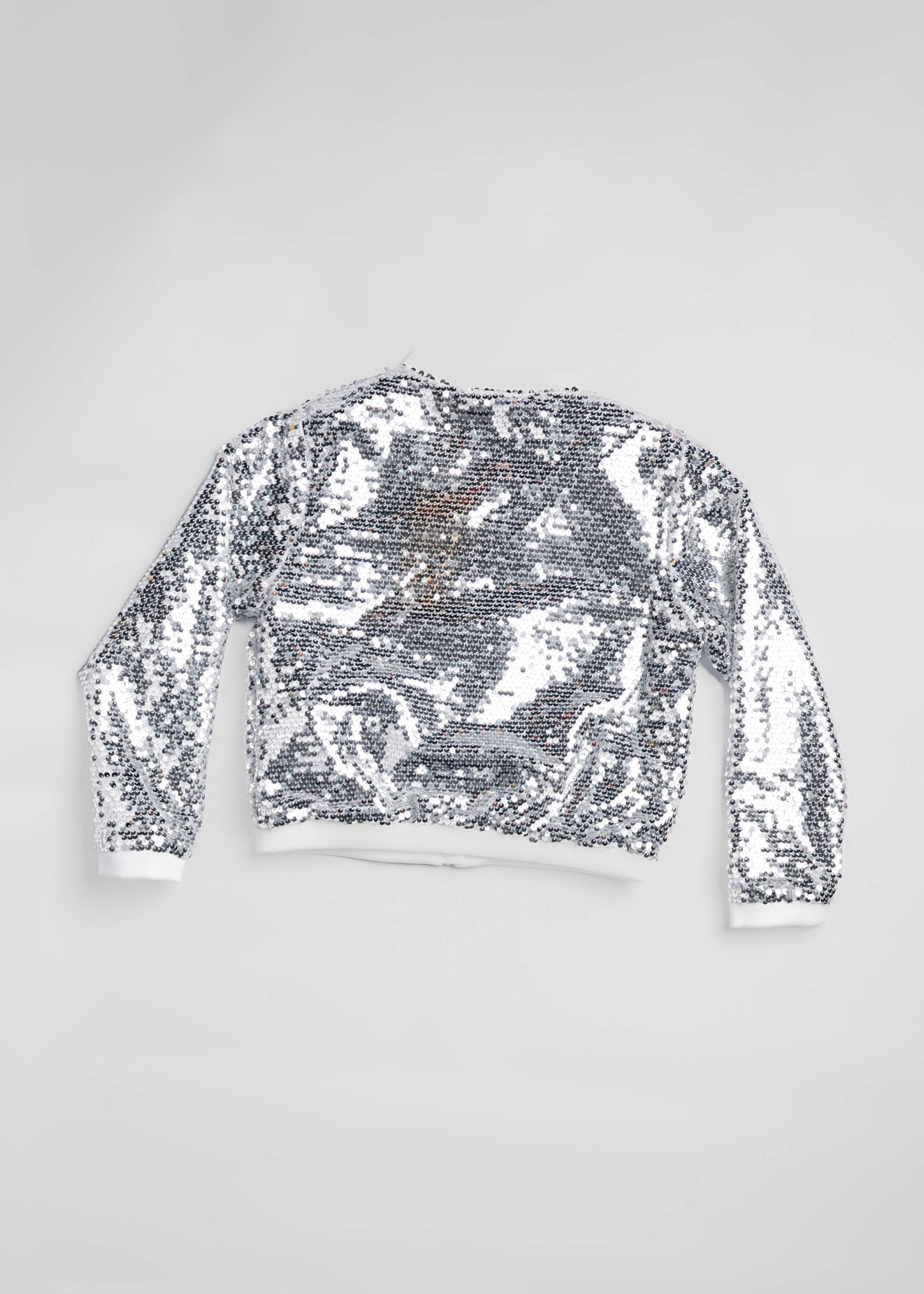 Kids girl sweater, glittery, front zipper closure, long sleeves with tight cuff, unique and modern