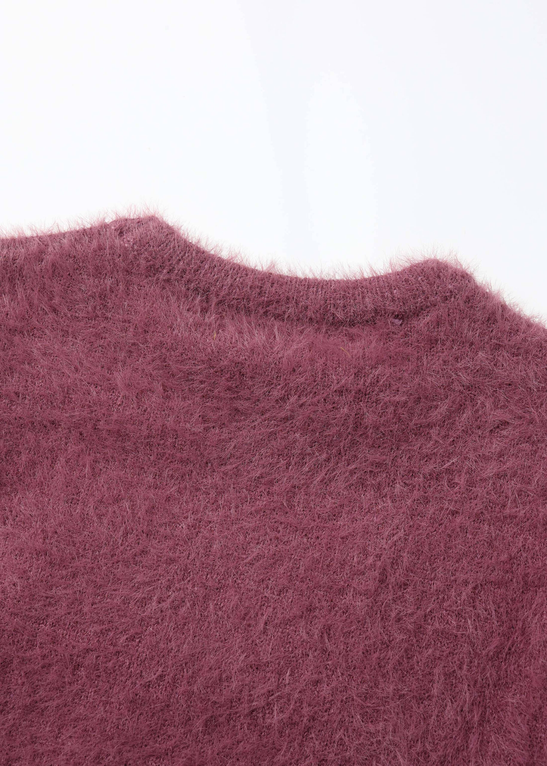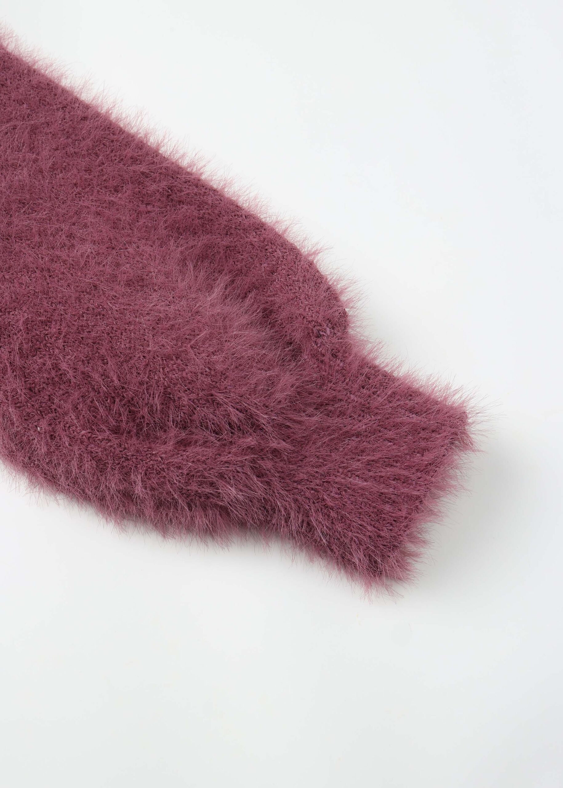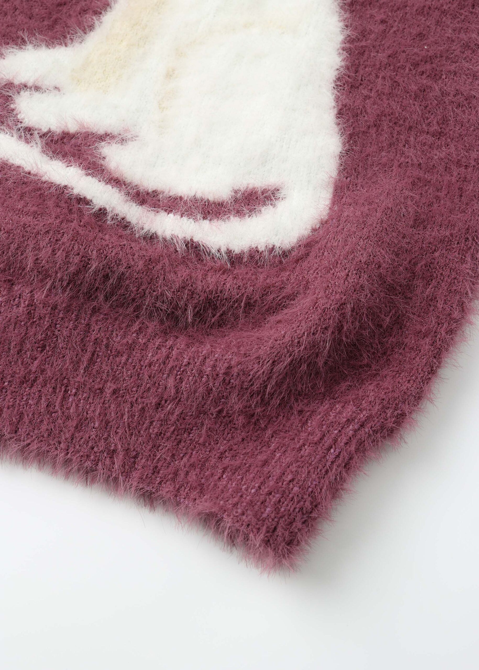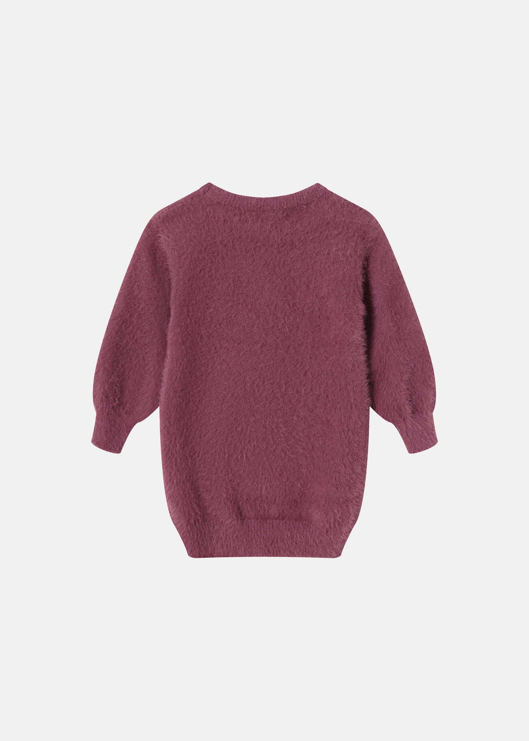 Kids girl dress, short, hairy-knitted fabric, front cat printed, round neck, long sleeves, unique and warm
