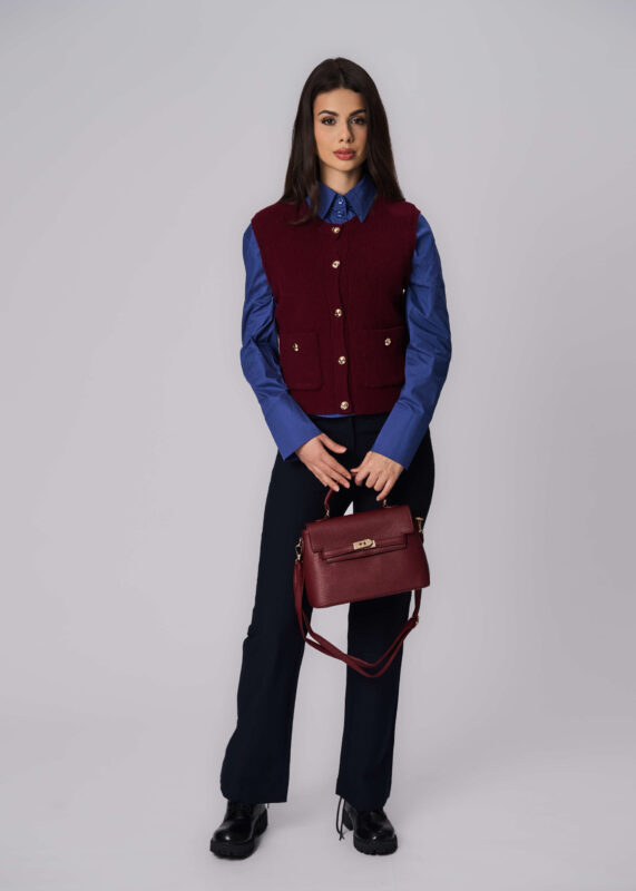 Kids girl dress, knitted fabric, short, round neck with front tie, front buttons decor, elastic waist, long sleeves with tight cuff, unique and modern