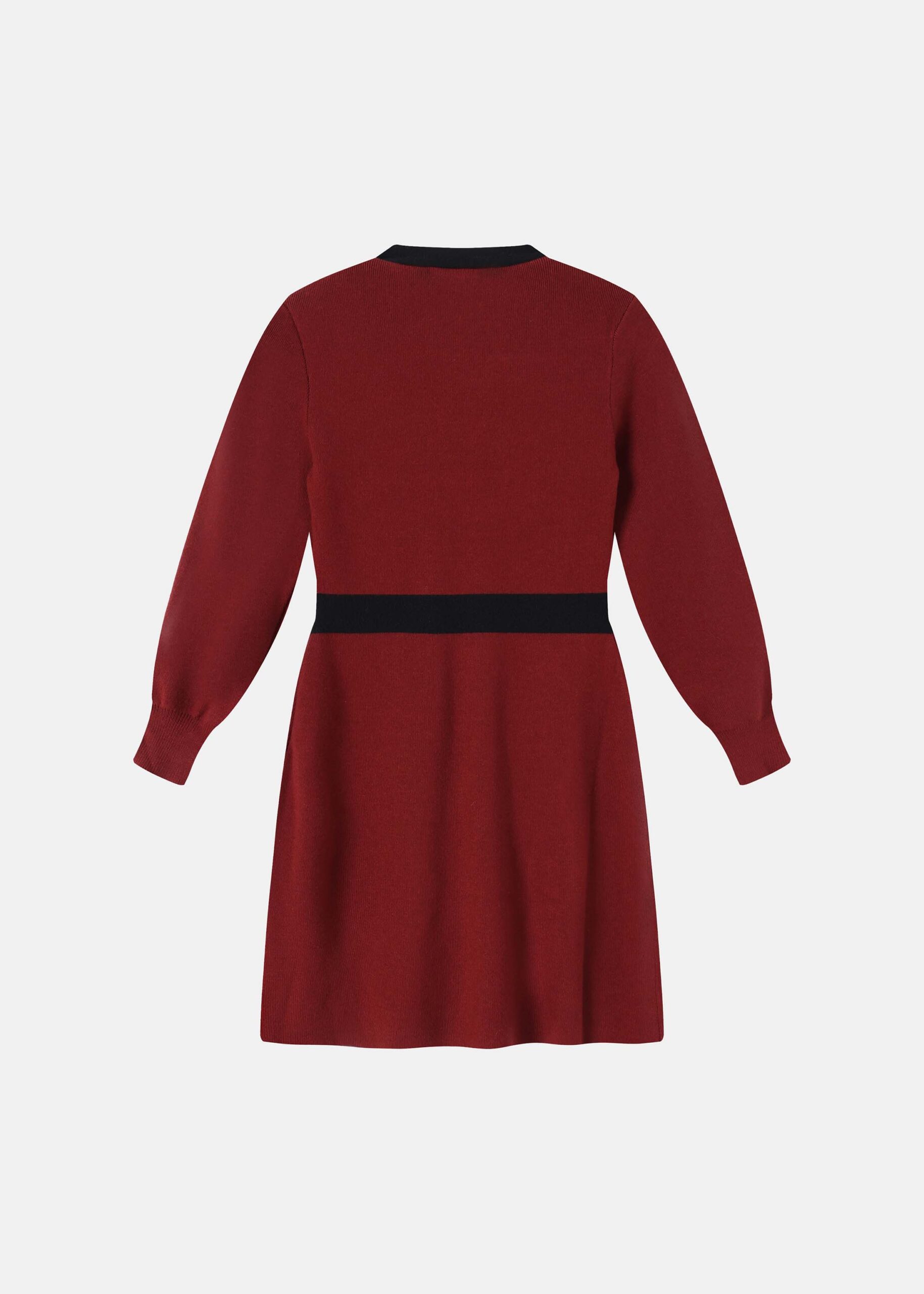 Kids girl dress, knitted fabric, V neck, front fake buttons, elastic waist, long sleeves with tight cuff, fake pockets, unique and modern