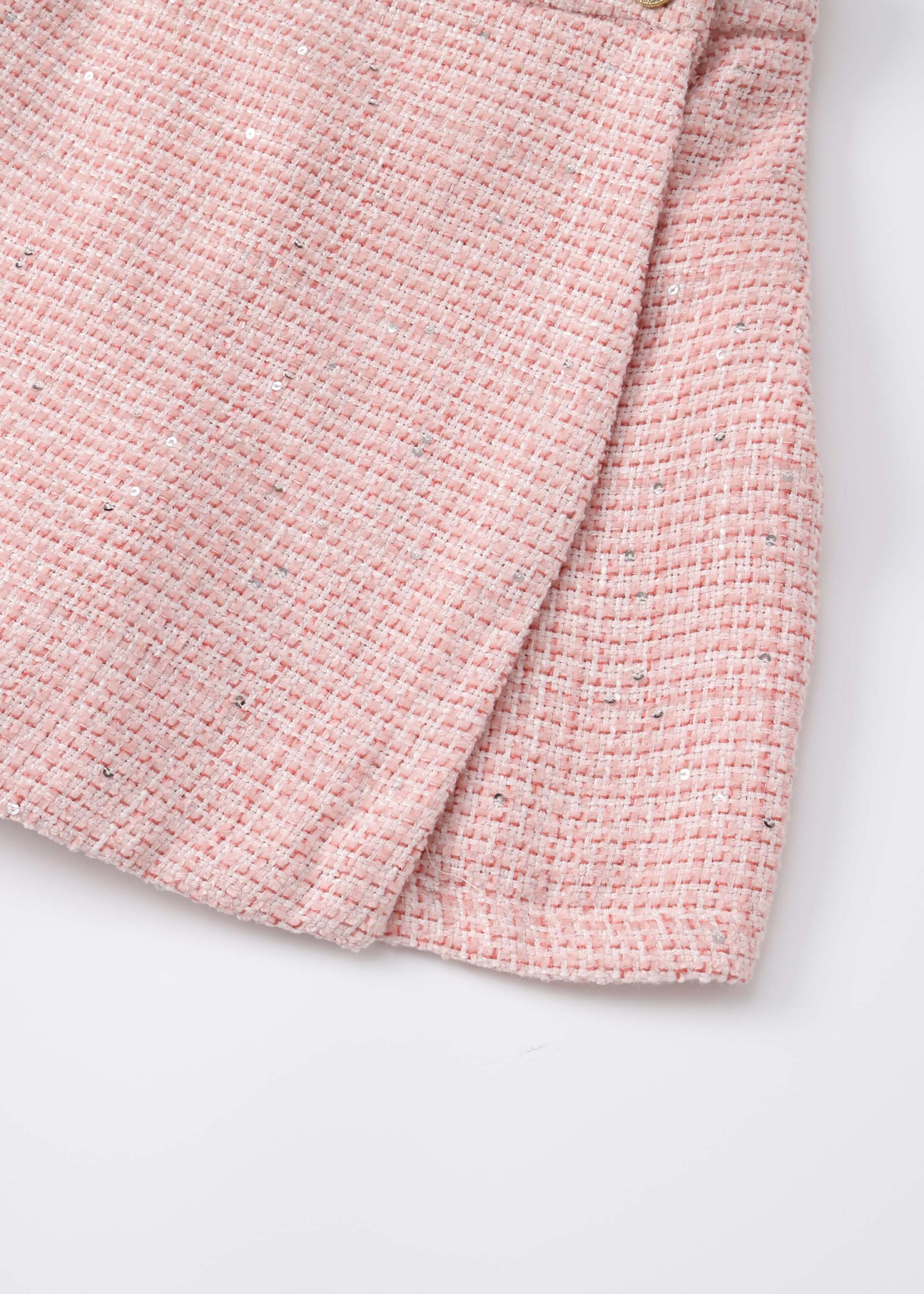 Kids girl skirt-short, knitted fabric, glittery beads decor, elastic waist, wrap design from the front with side button, unique and modern