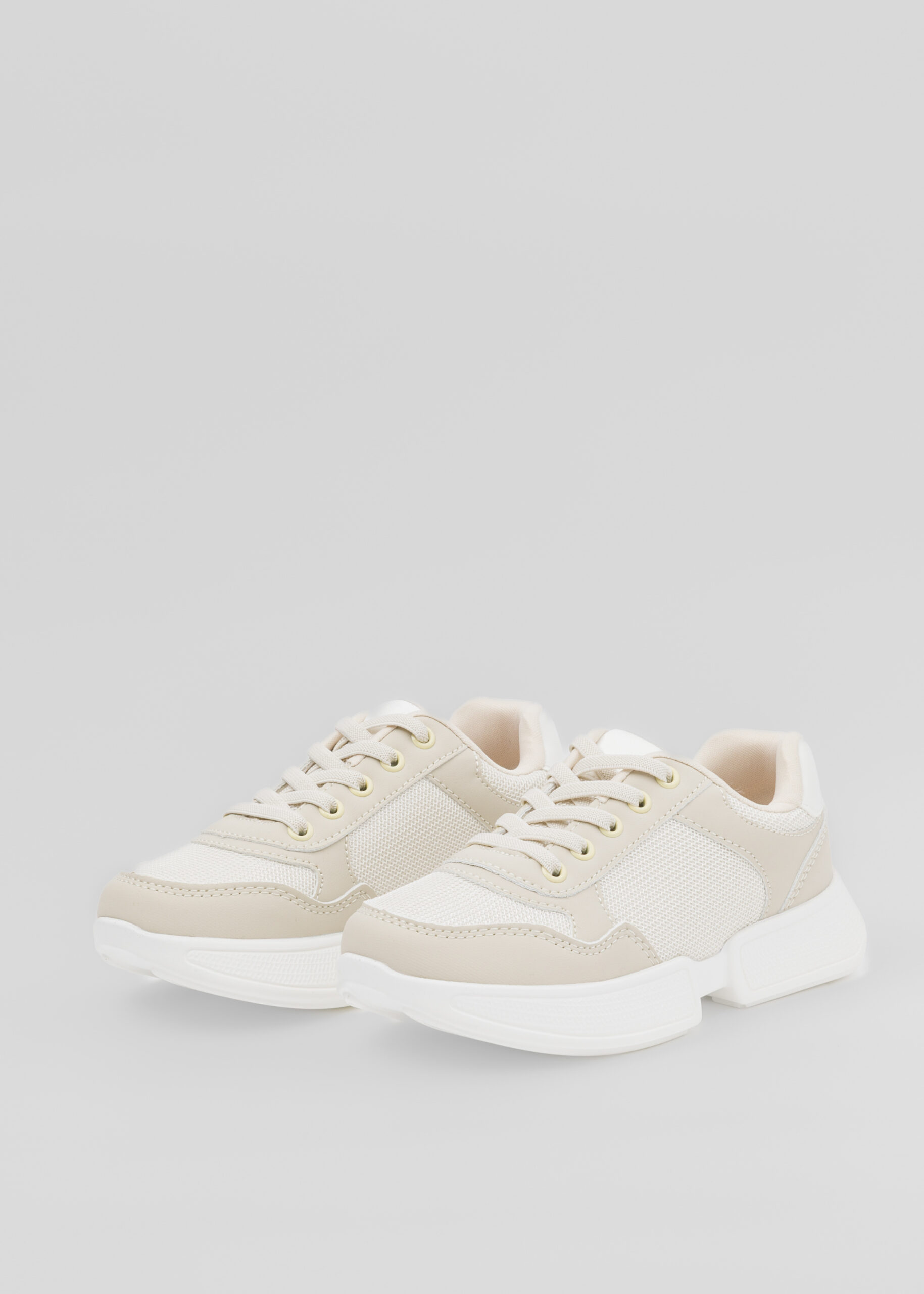 Kids girl shoes, sport, leather and fabric, round toe, rubber sole, elastic lace up, comfortable and practical