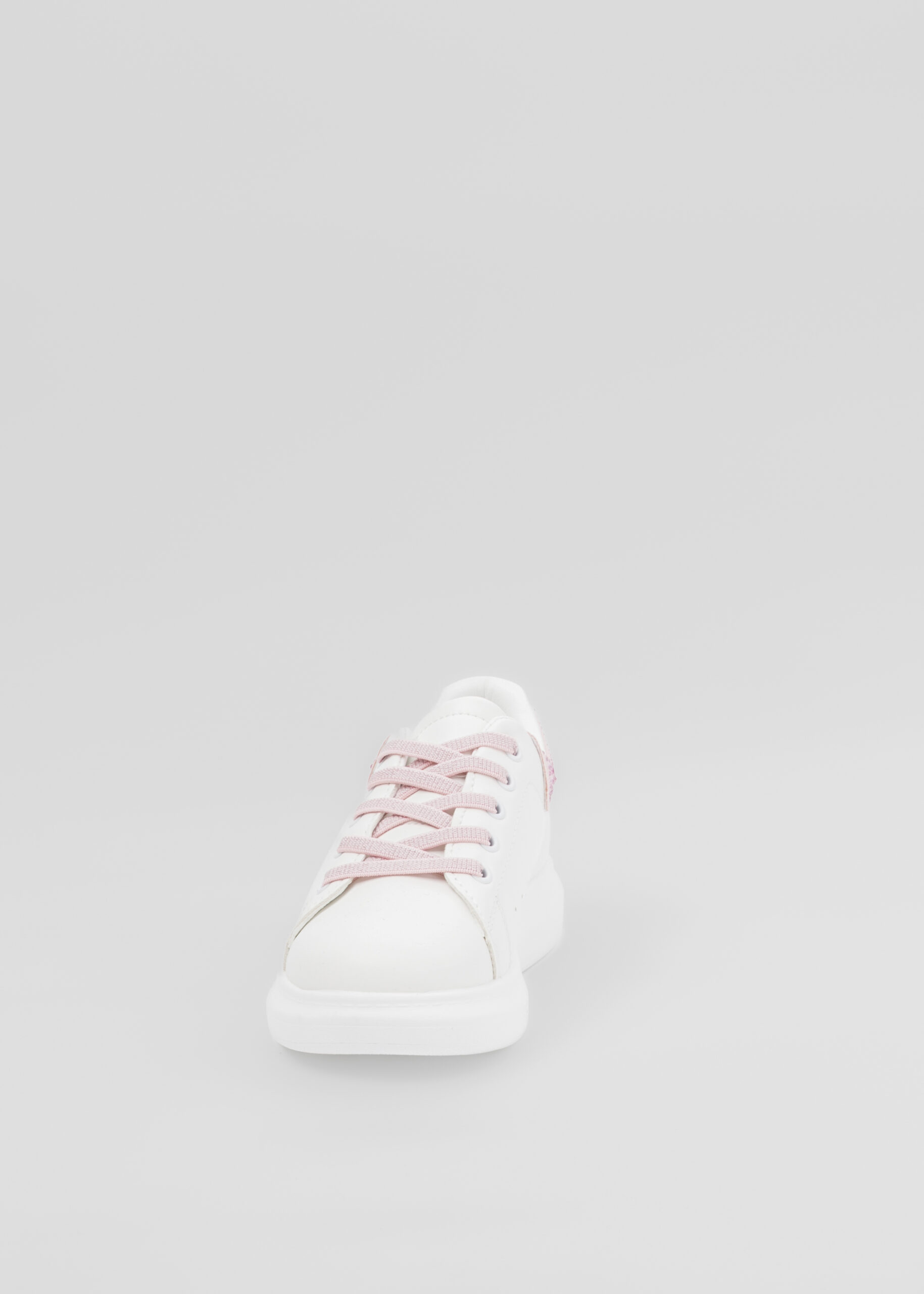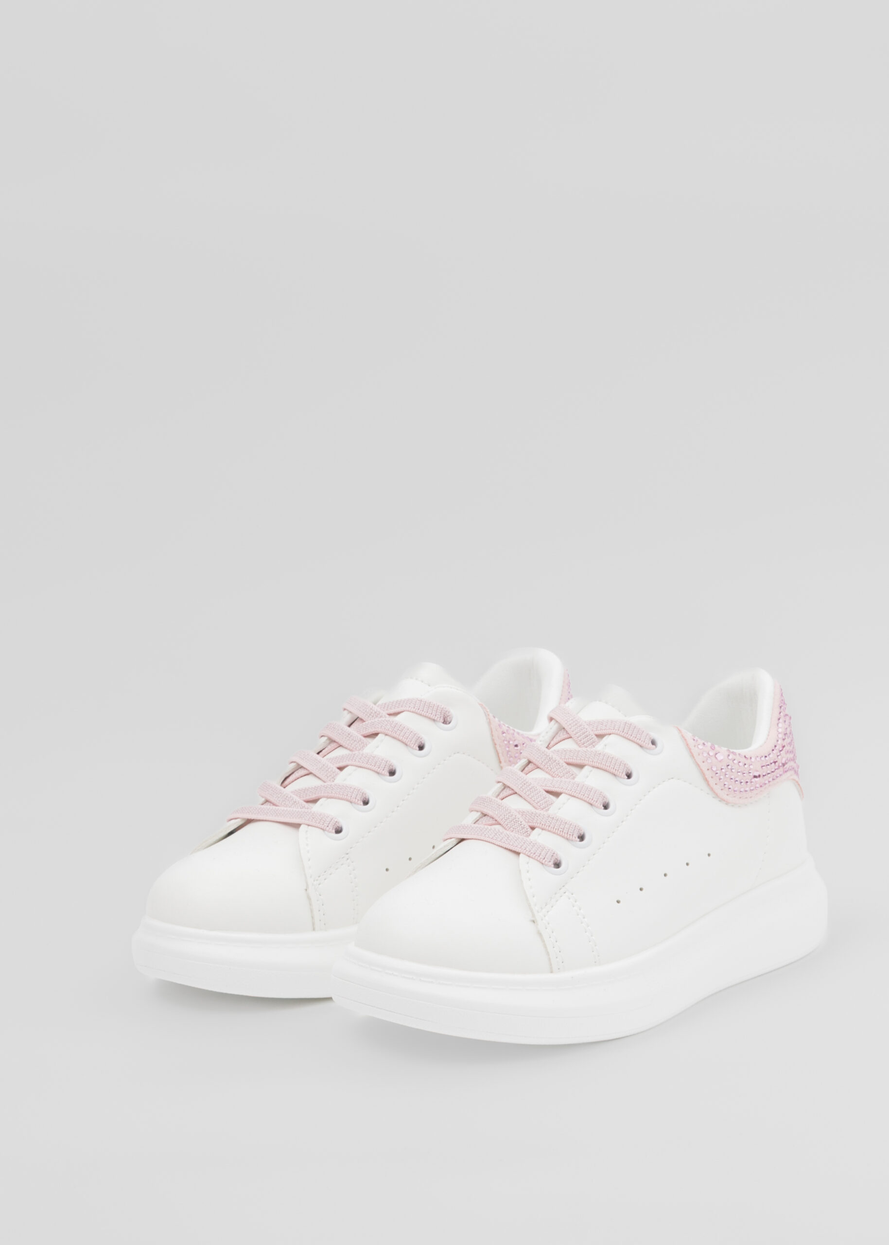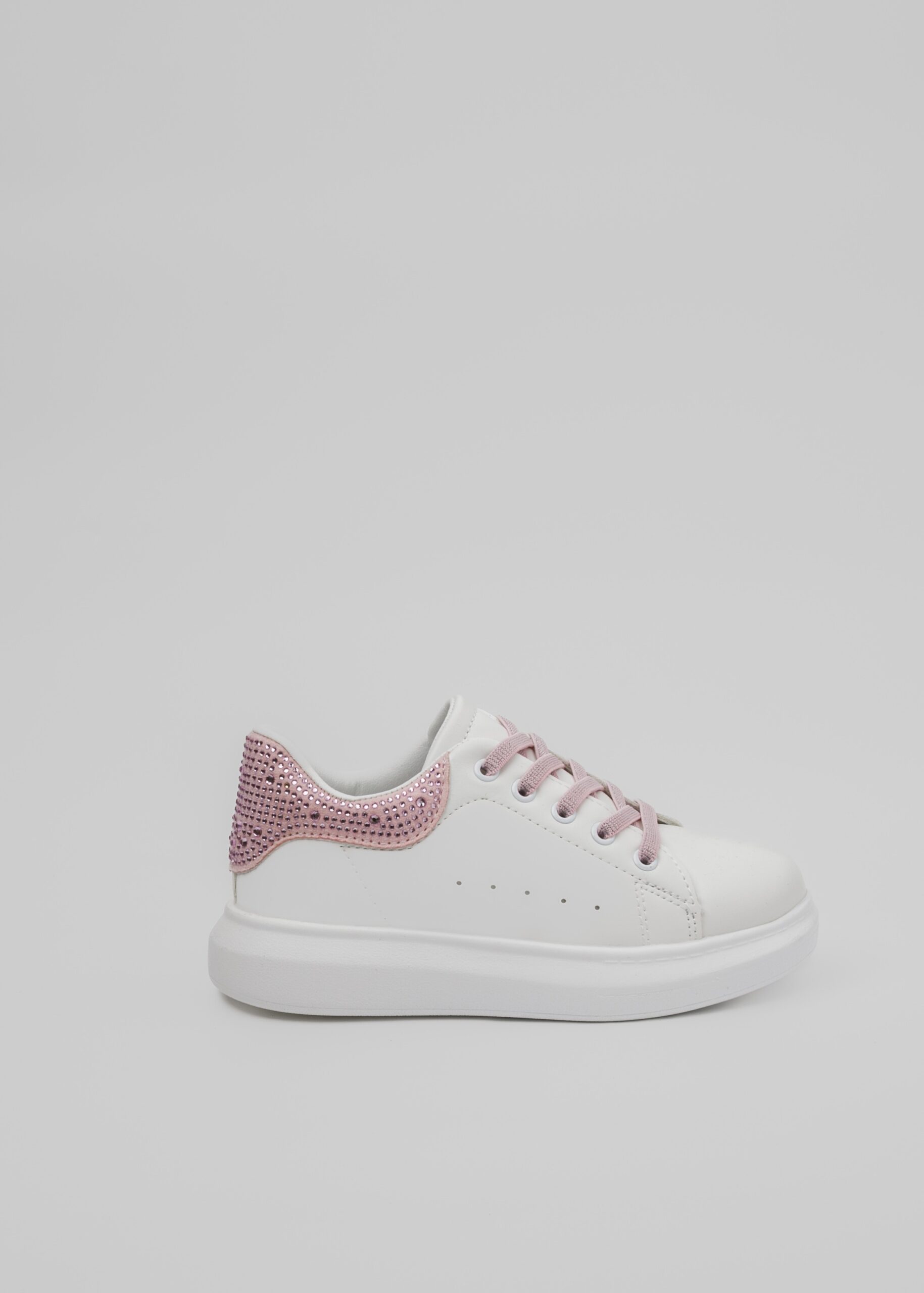 Kids girl shoes, sport, leather, round toe, rubber sole, elastic lace up, strass decor from the back, unique and modern