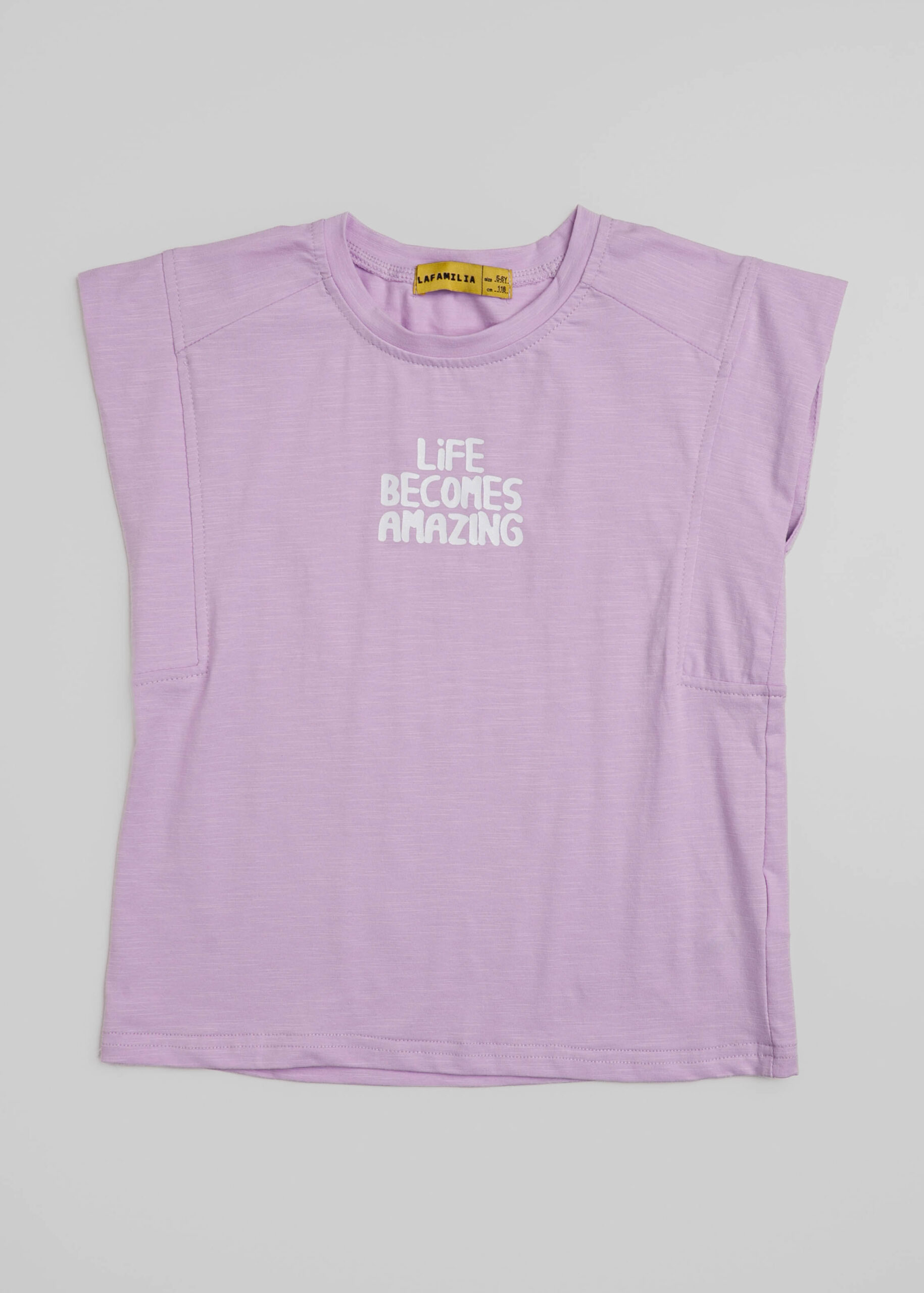 Kids girl t-shirt, “Life Become Amazing” printed from the front, round neck, sleeveless, unique and practical