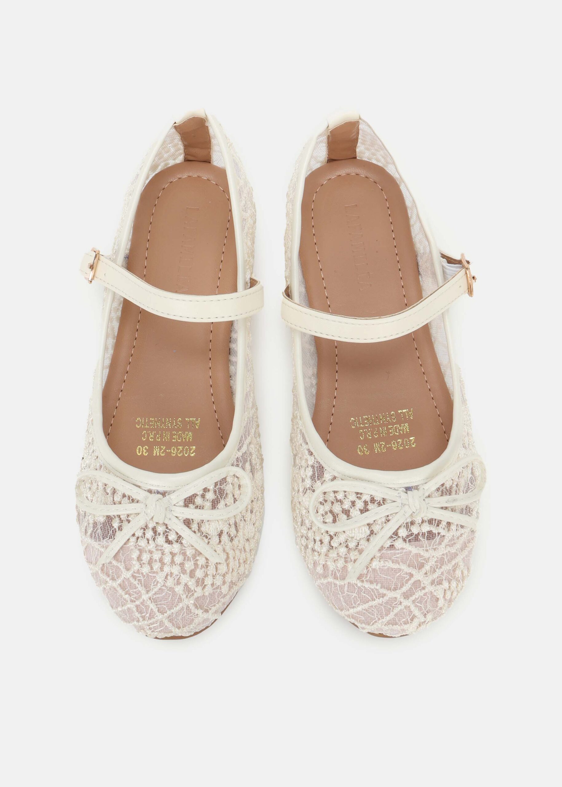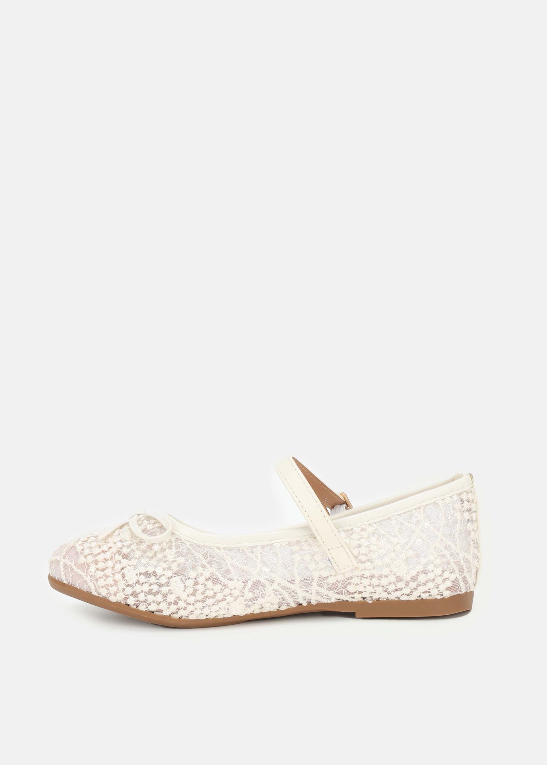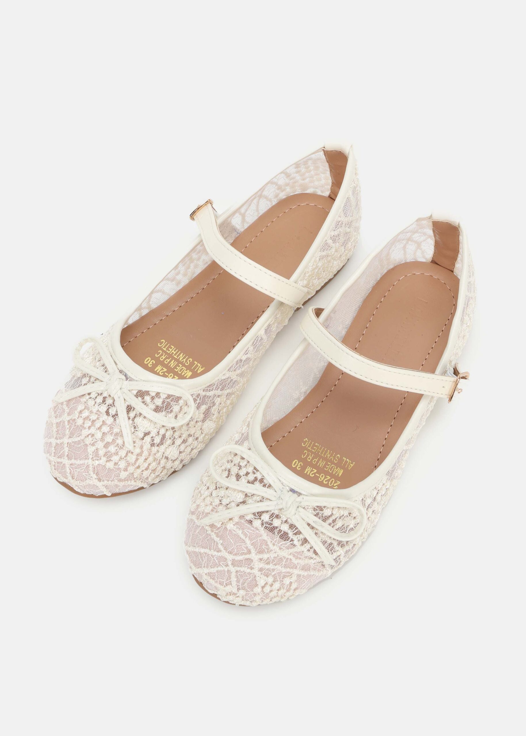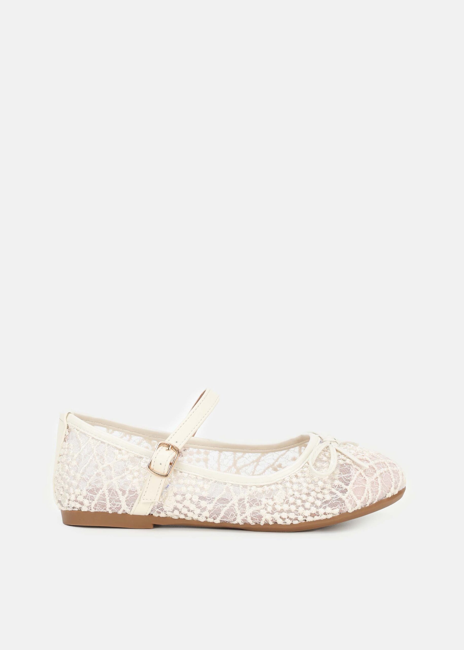 Kids girl ballerina, mesh lace, round toe, upper bow decor, upper strap with side metal buckle, unique and comfortable