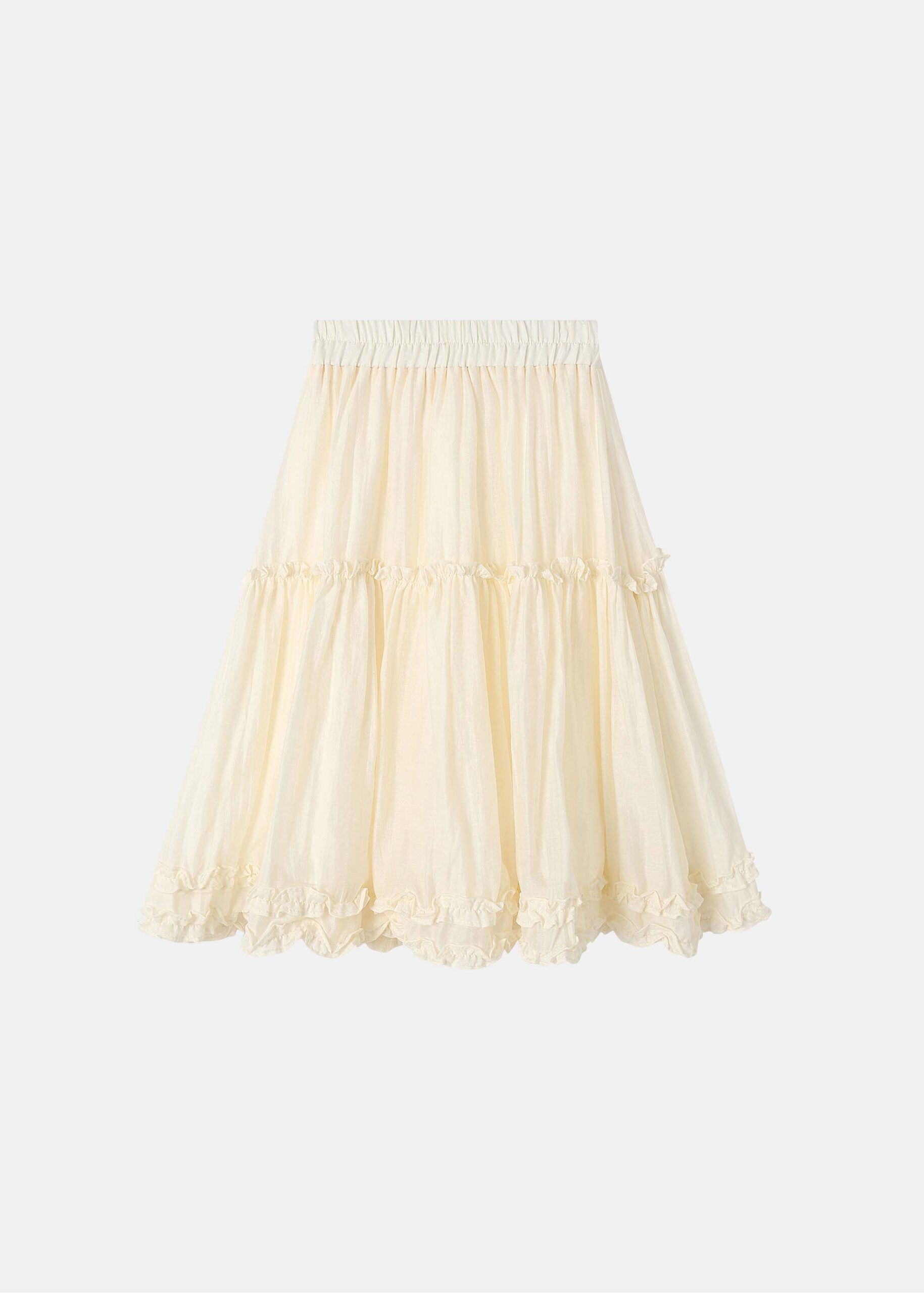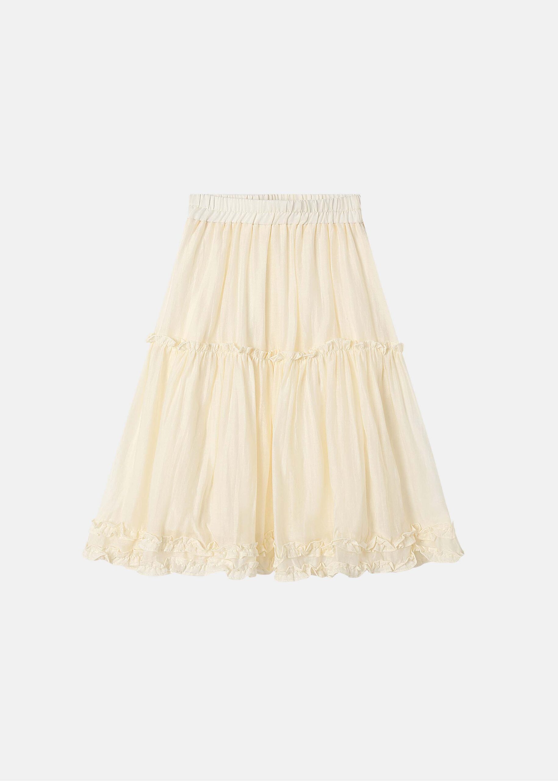 Kids Girl skirt, midi, layers design with ruffles hem, elastic waist, unique and modern