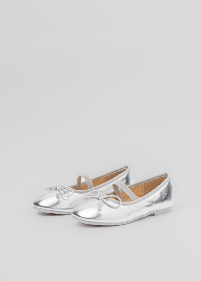 Kids girl shoes, ballerina, round toe, upper bow decor, upper elastic strap, rubber sole, unique and practical