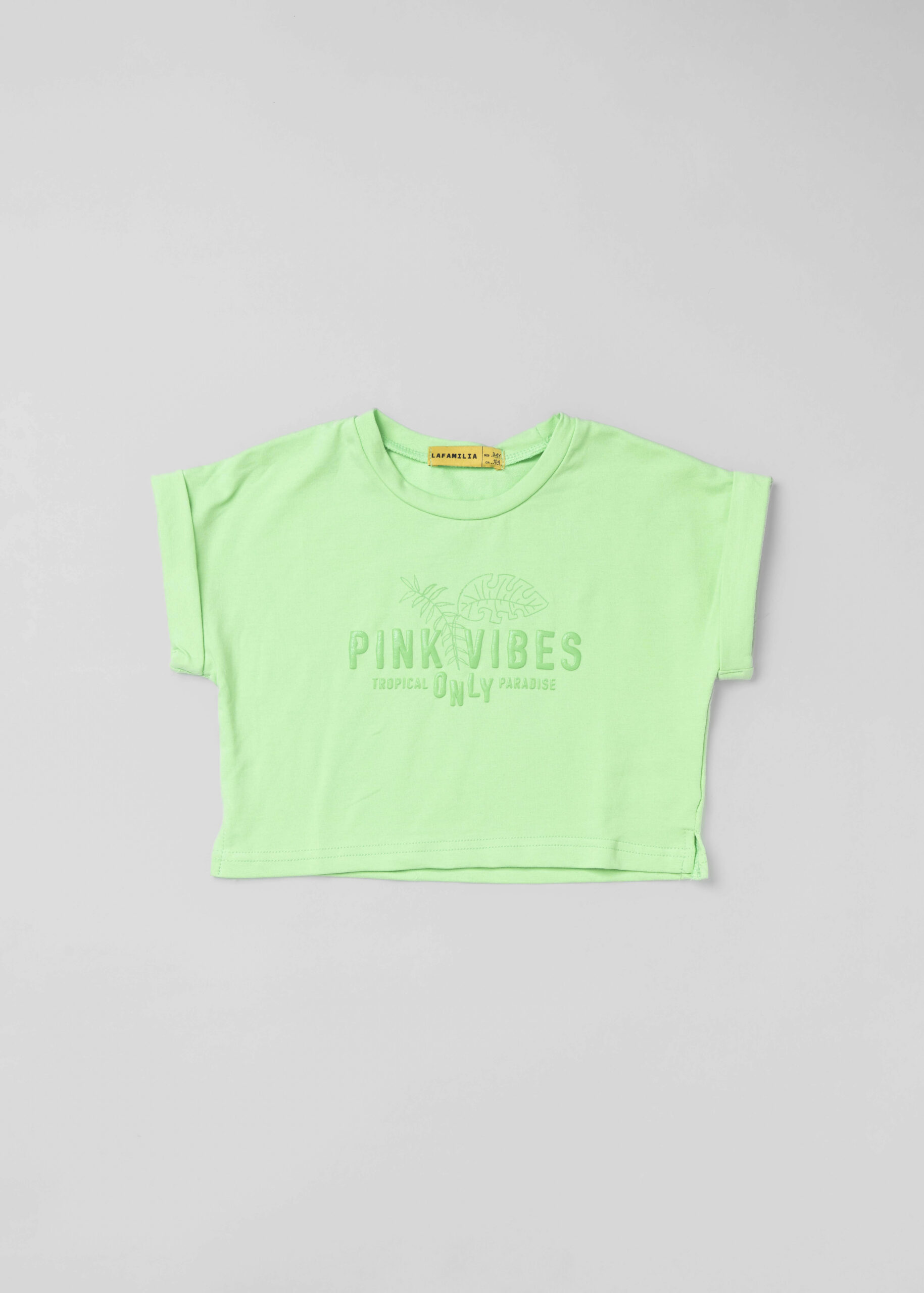 Kids girl t-shirt, “Pink Vibes” printed from the front, cropped, round neck, short sleeves, unique and modern