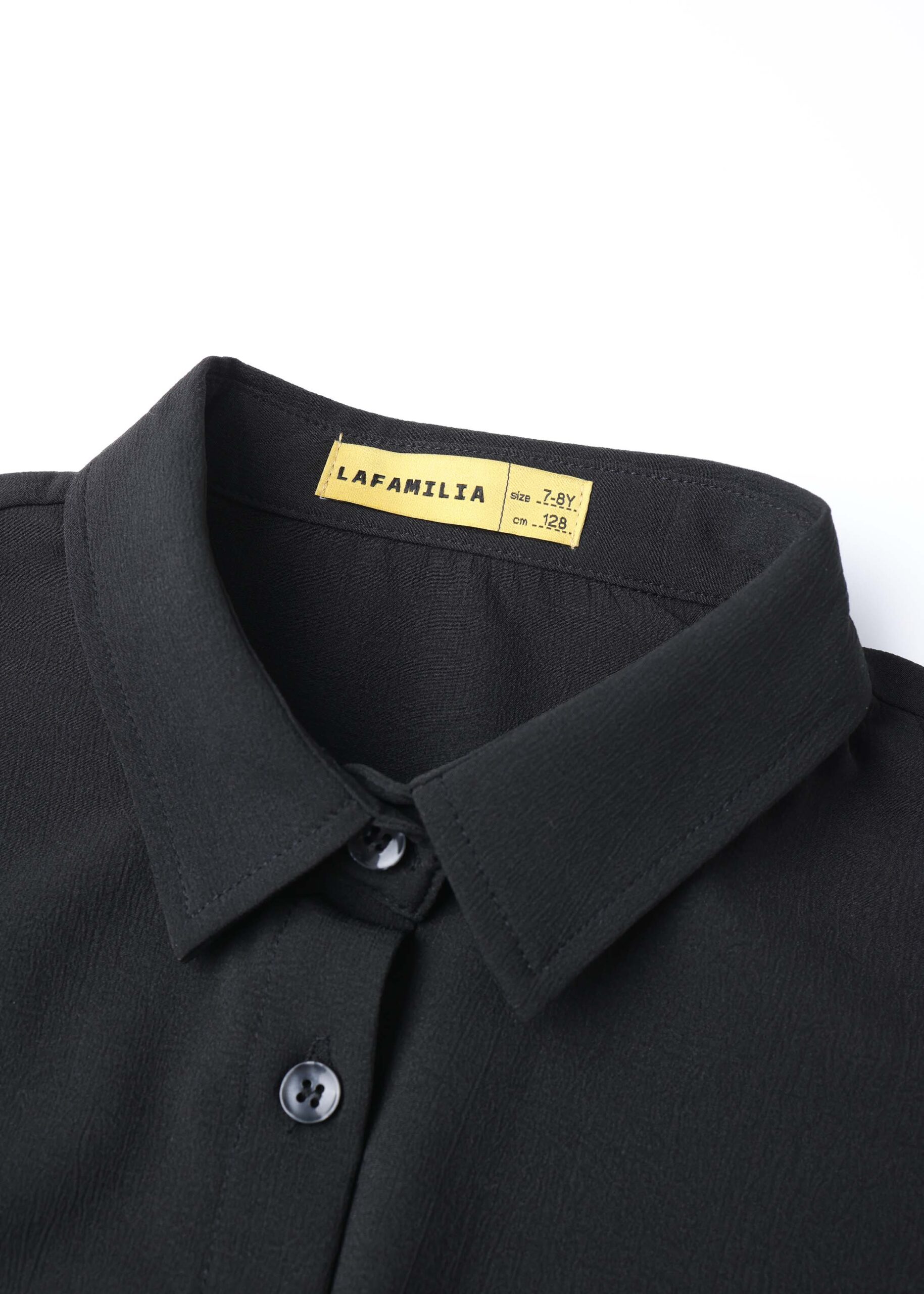 Kids girl shirt, plain, rolled collar, front buttons to close, long sleeves with elastic cuff, front tie, unique and modern