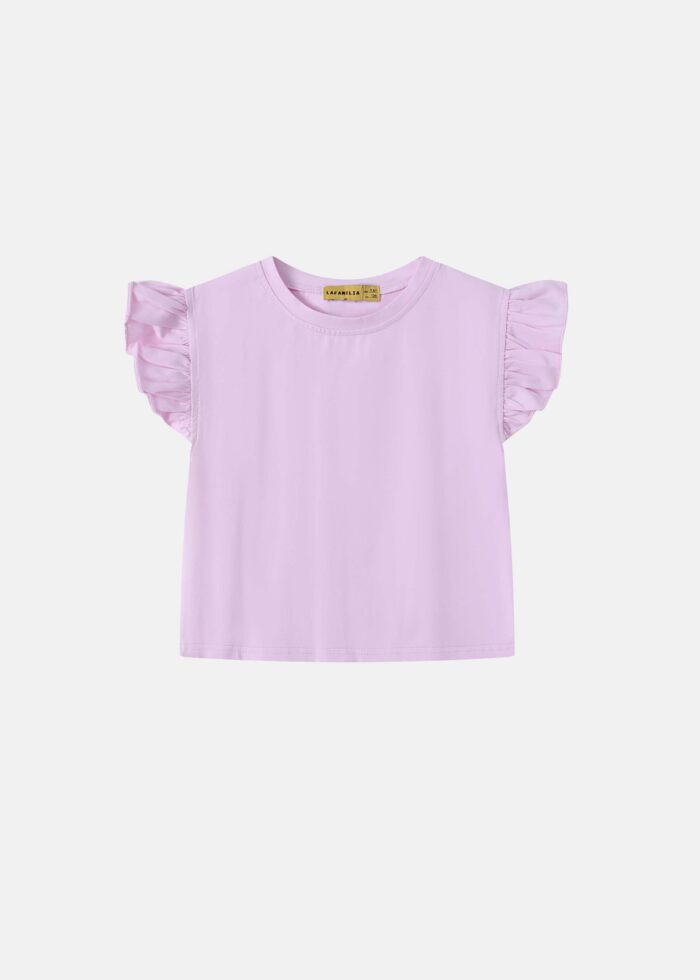 Kids girl t-shirt, plain, round neck, short ruffled sleeves, unique and practical