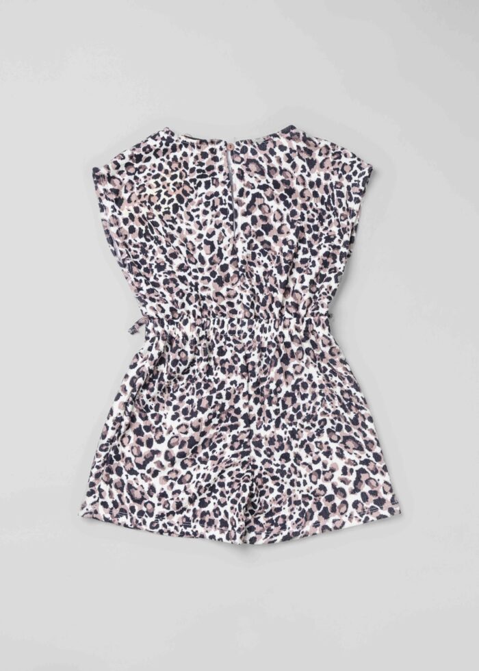 Kids girl overall, short, printed, elastic waist, with side bows decor, round neck with back button, sleeveless, unique and practical