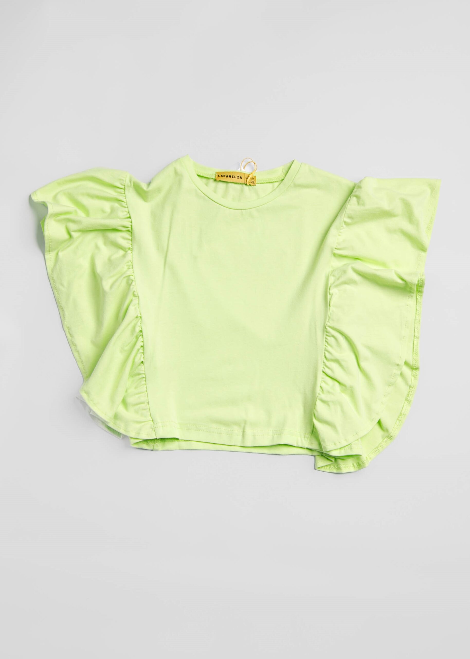 Kids girl t-shirt, plain, round neck, sleeveless with ruffled decor, unique and modern