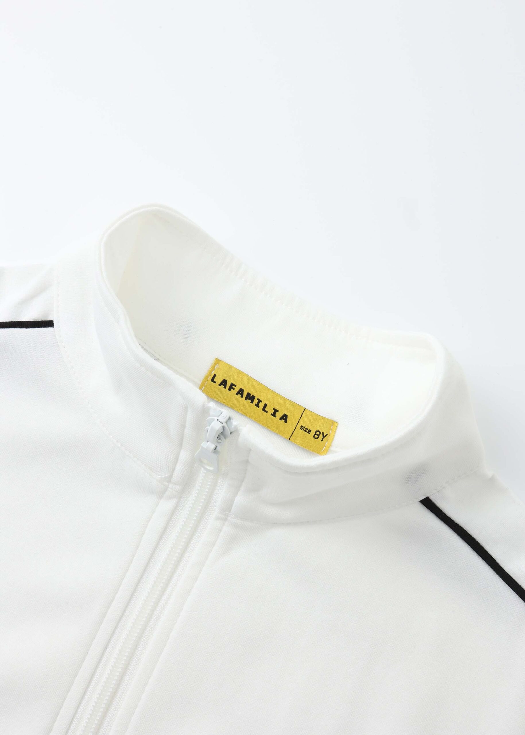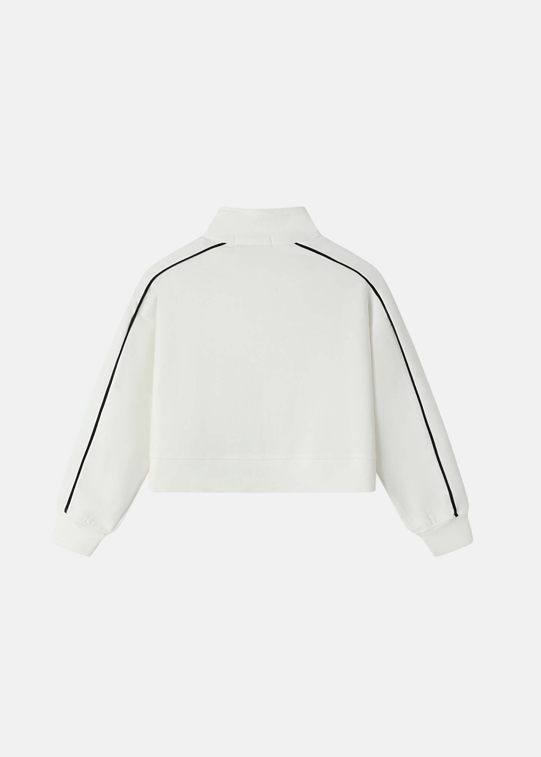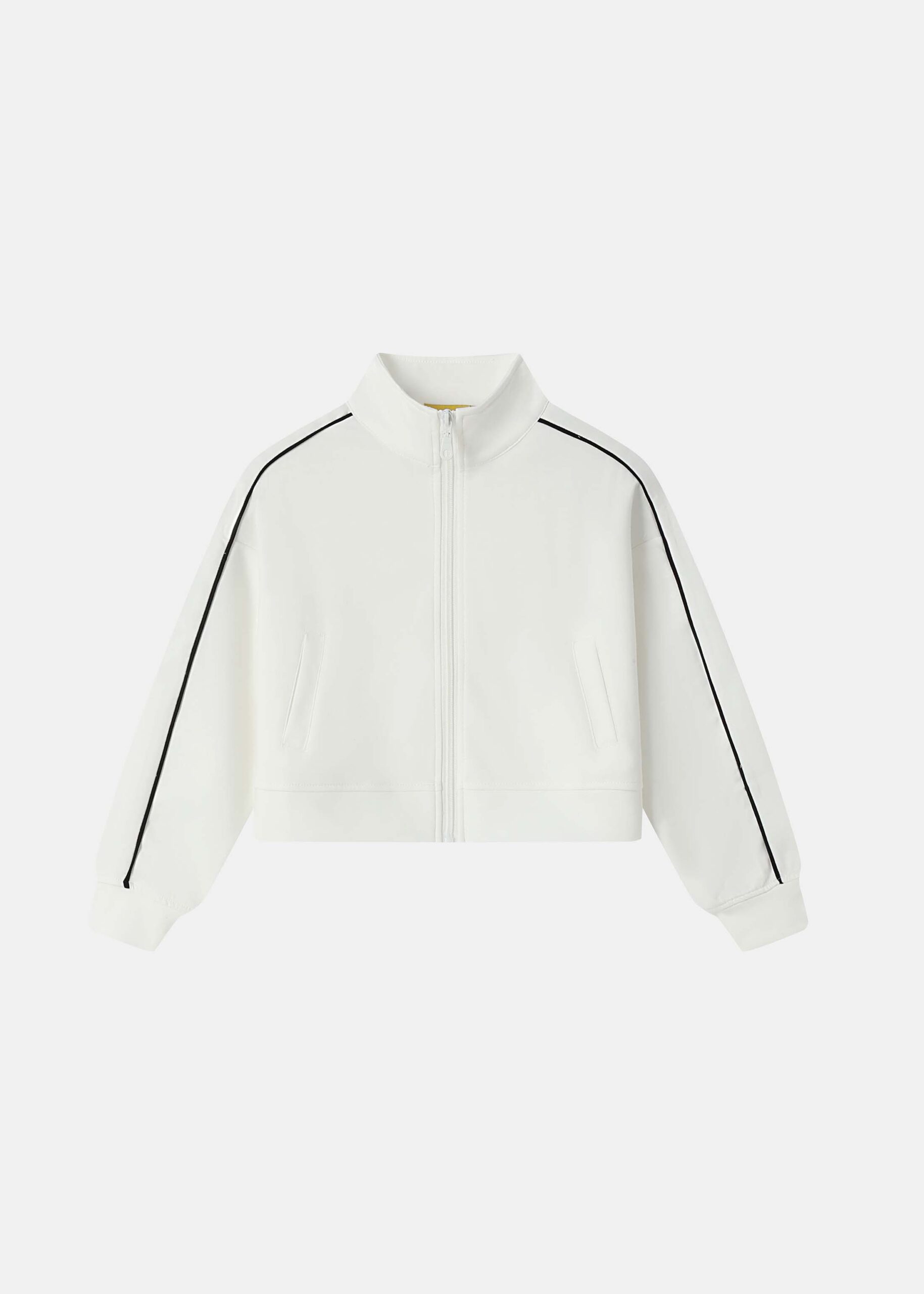 Kids girl jacket, scuba fabric, cropped, stand collar, zip closure, long sleeves with tight cuff, front pockets, comfortable and practical