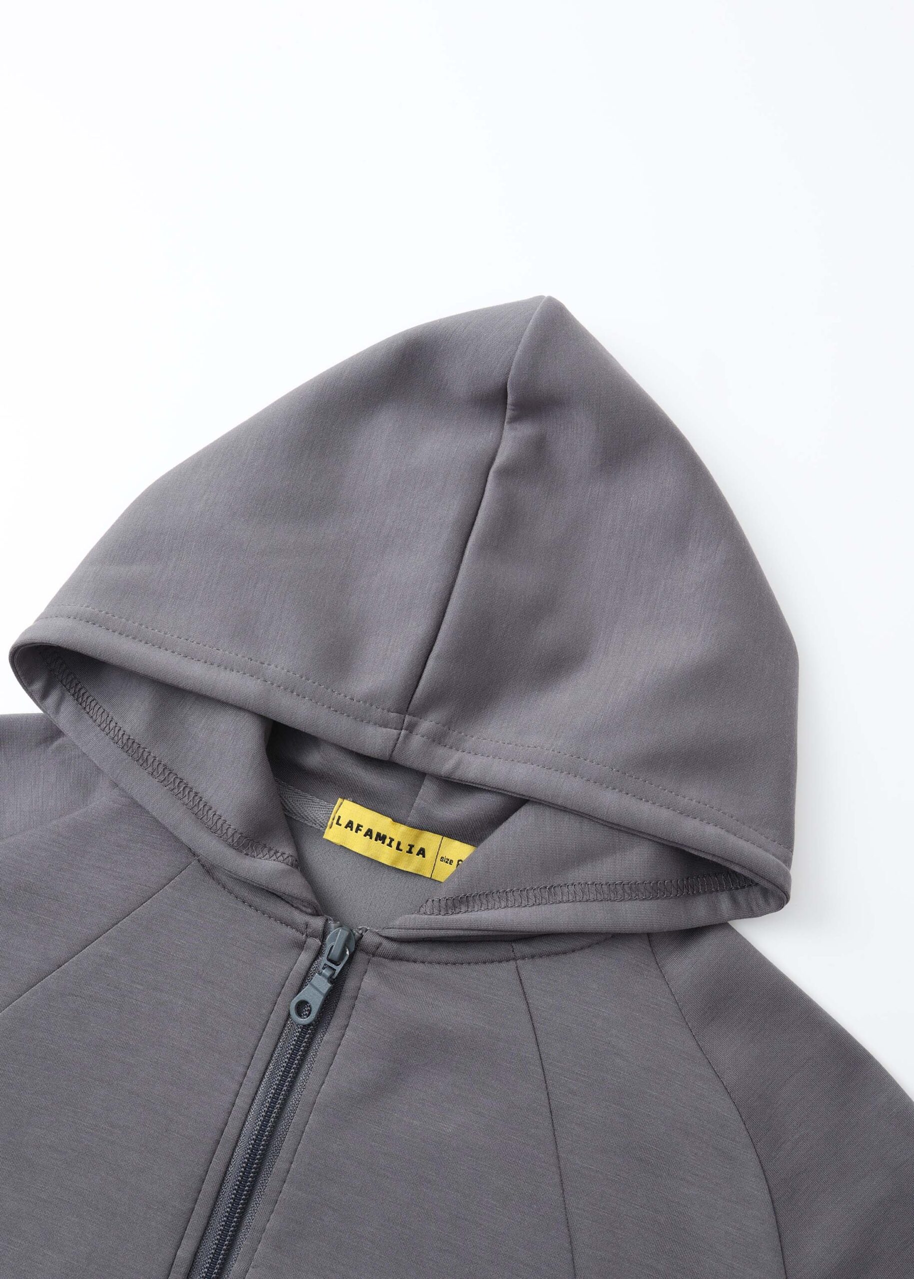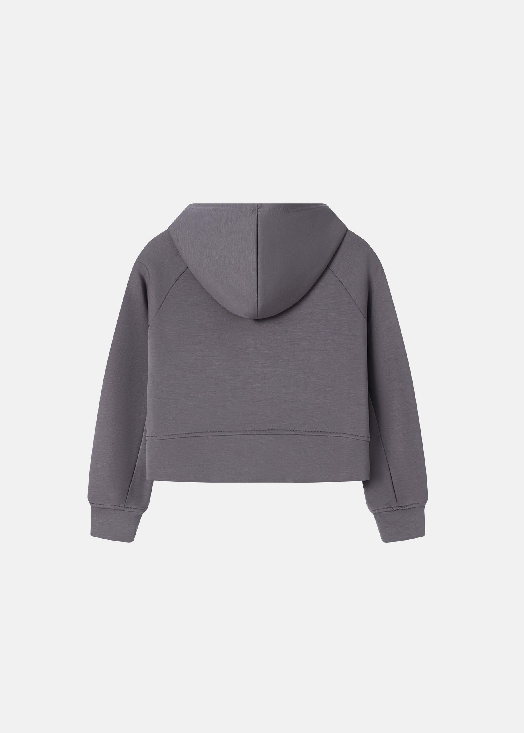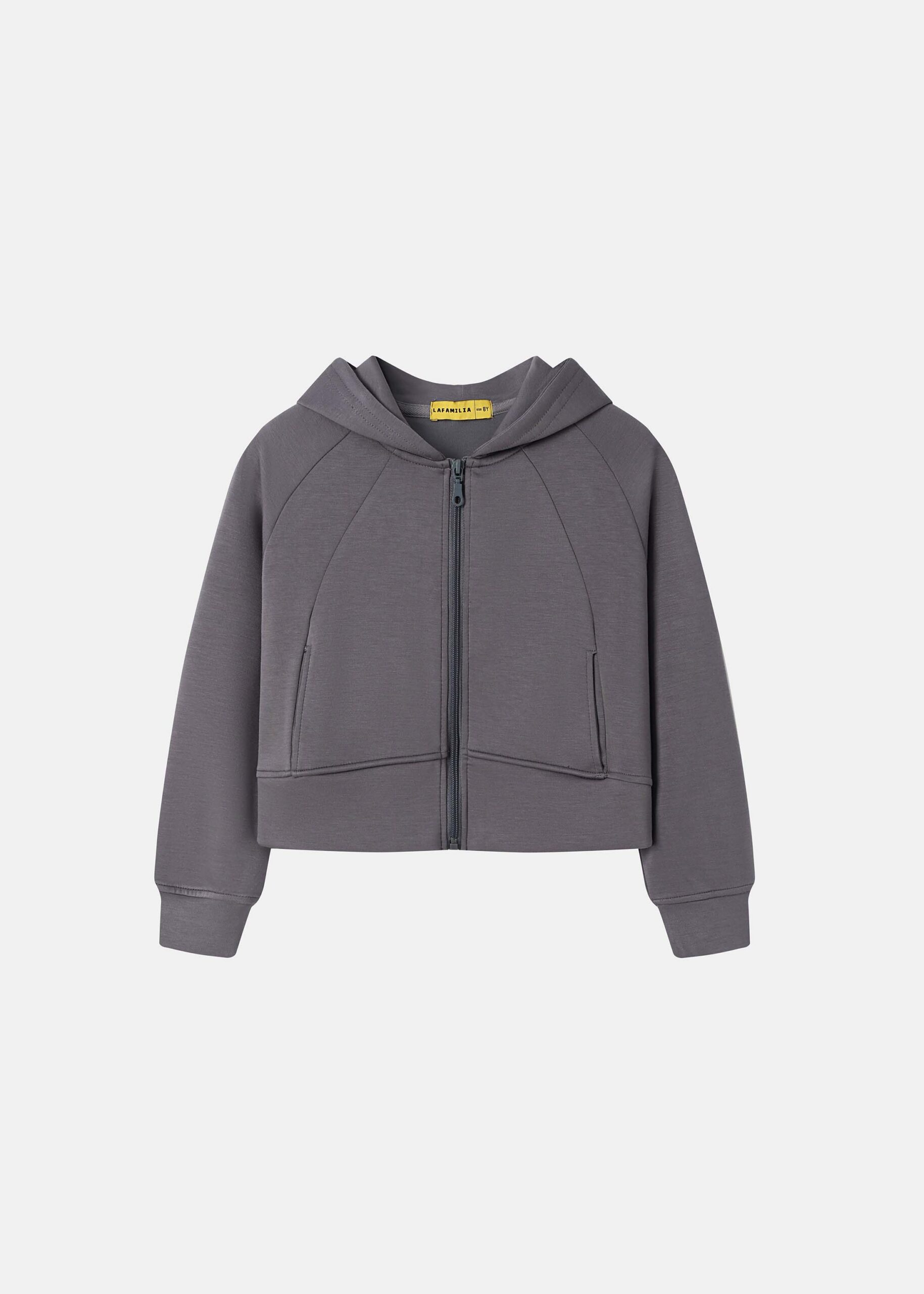 Kids girl hoodie, plain, scuba fabric,cropped, hood, front zip closure, long sleeves with tight cuff, front pockets, practical and unique