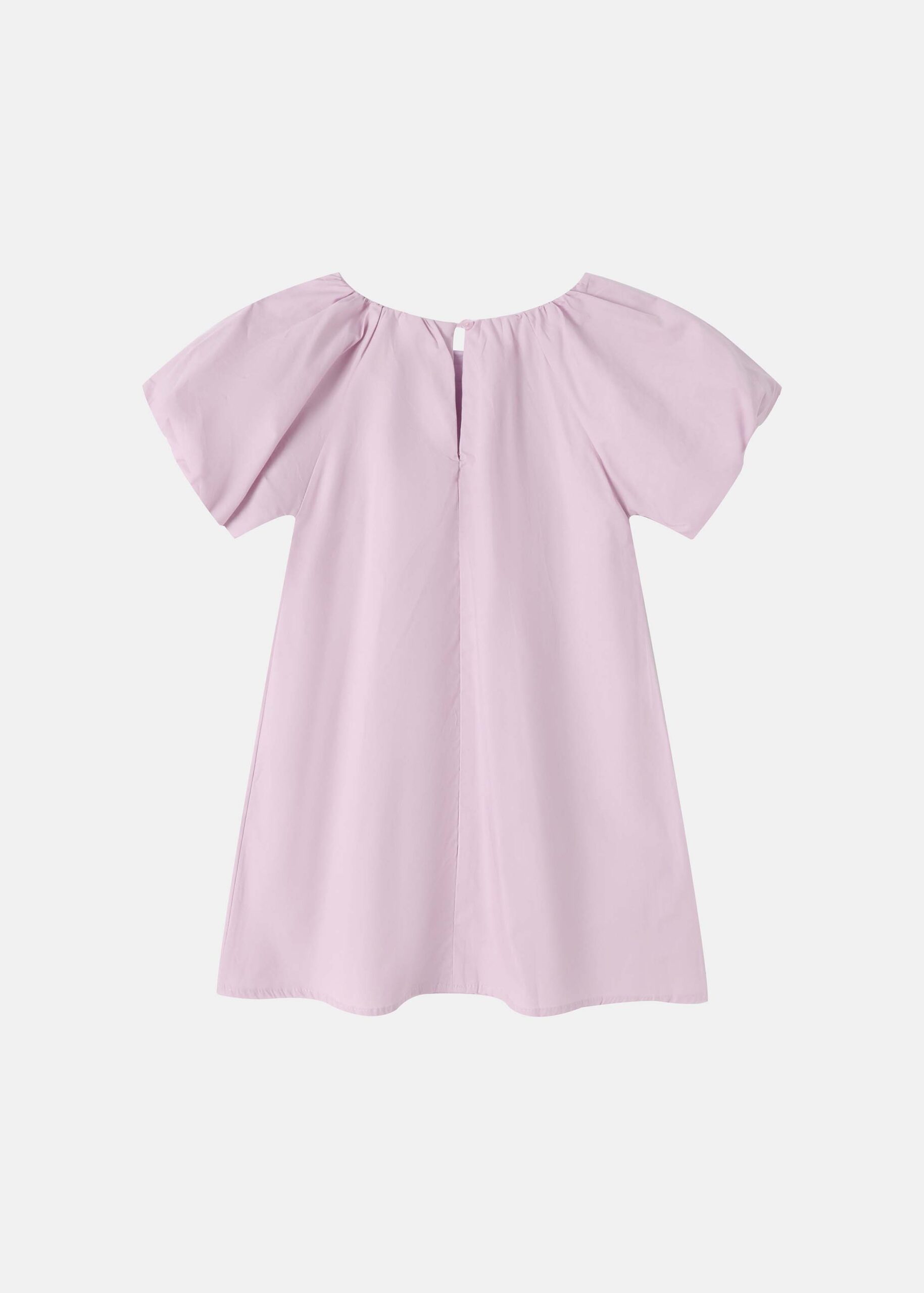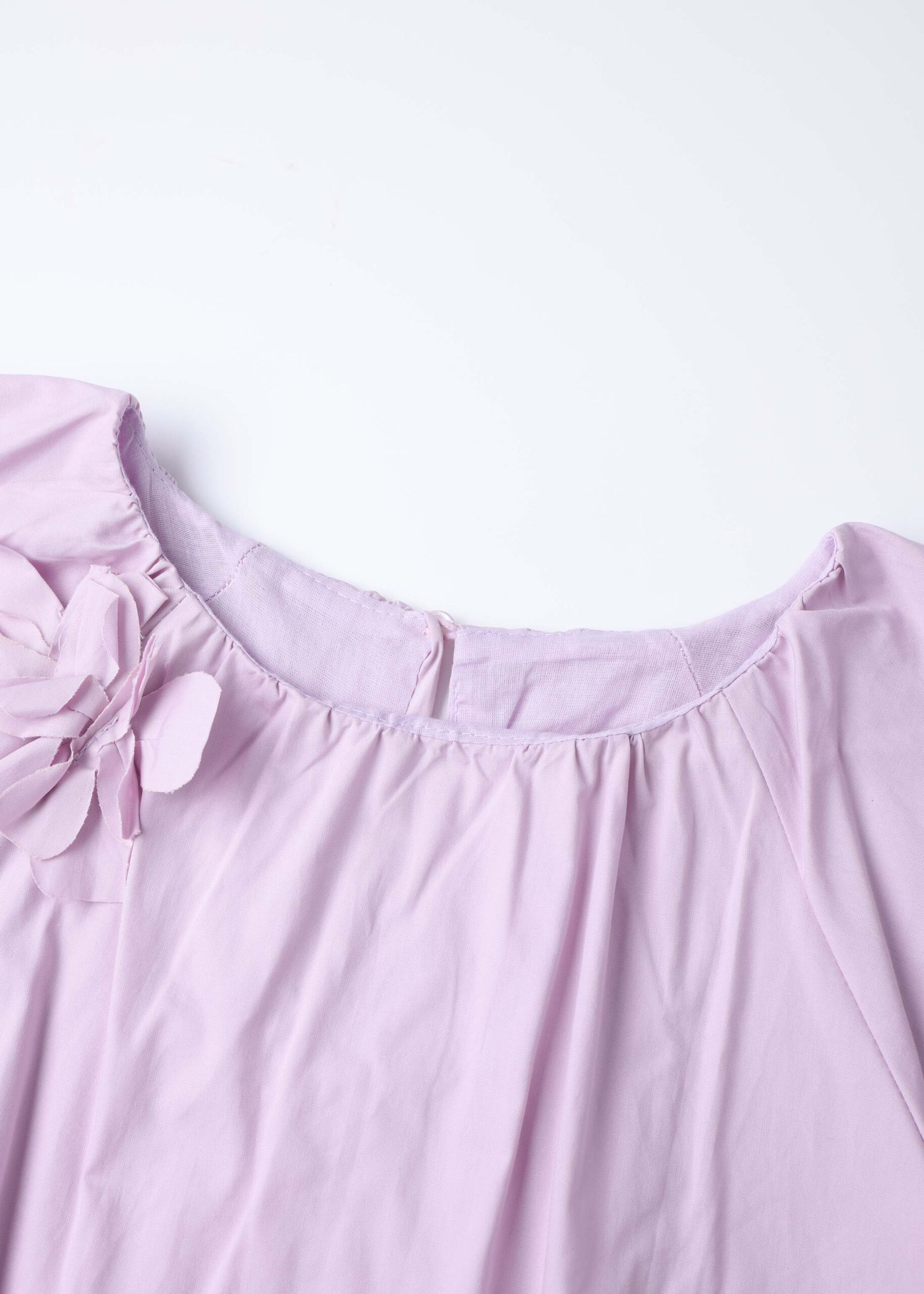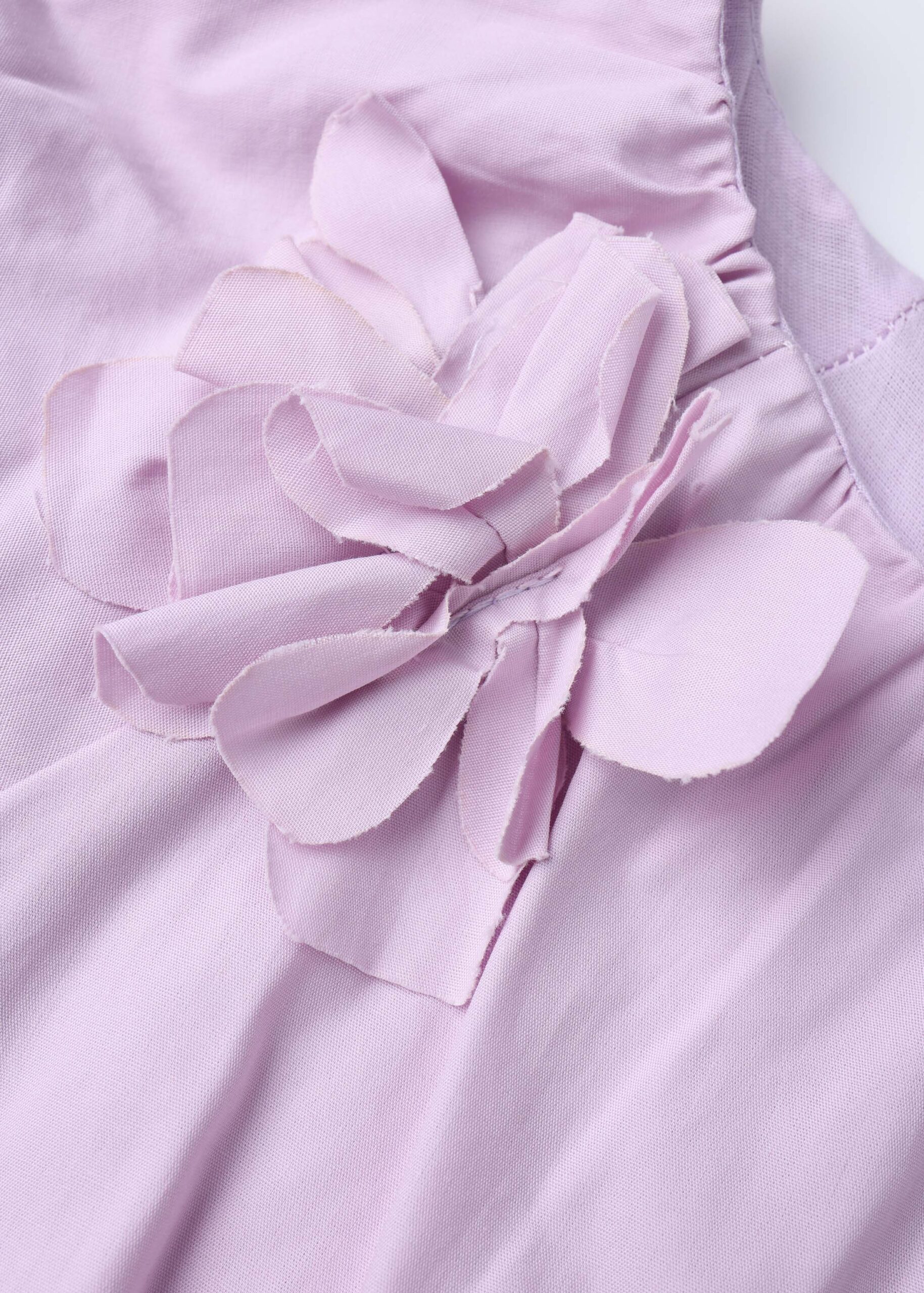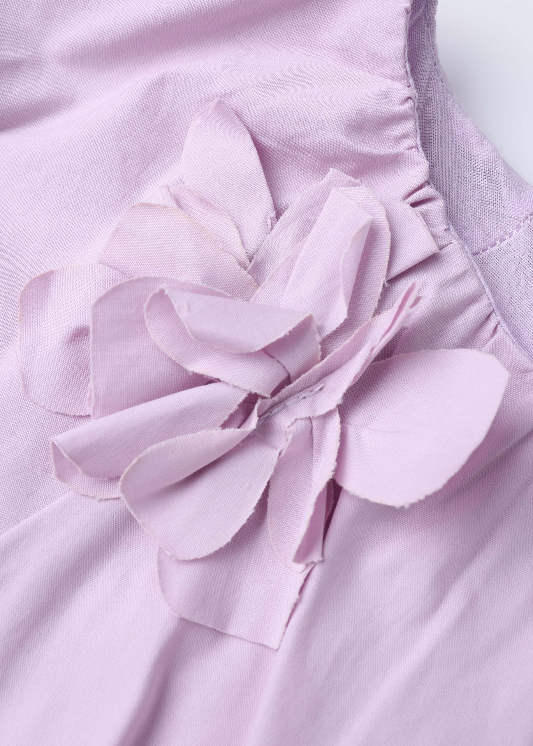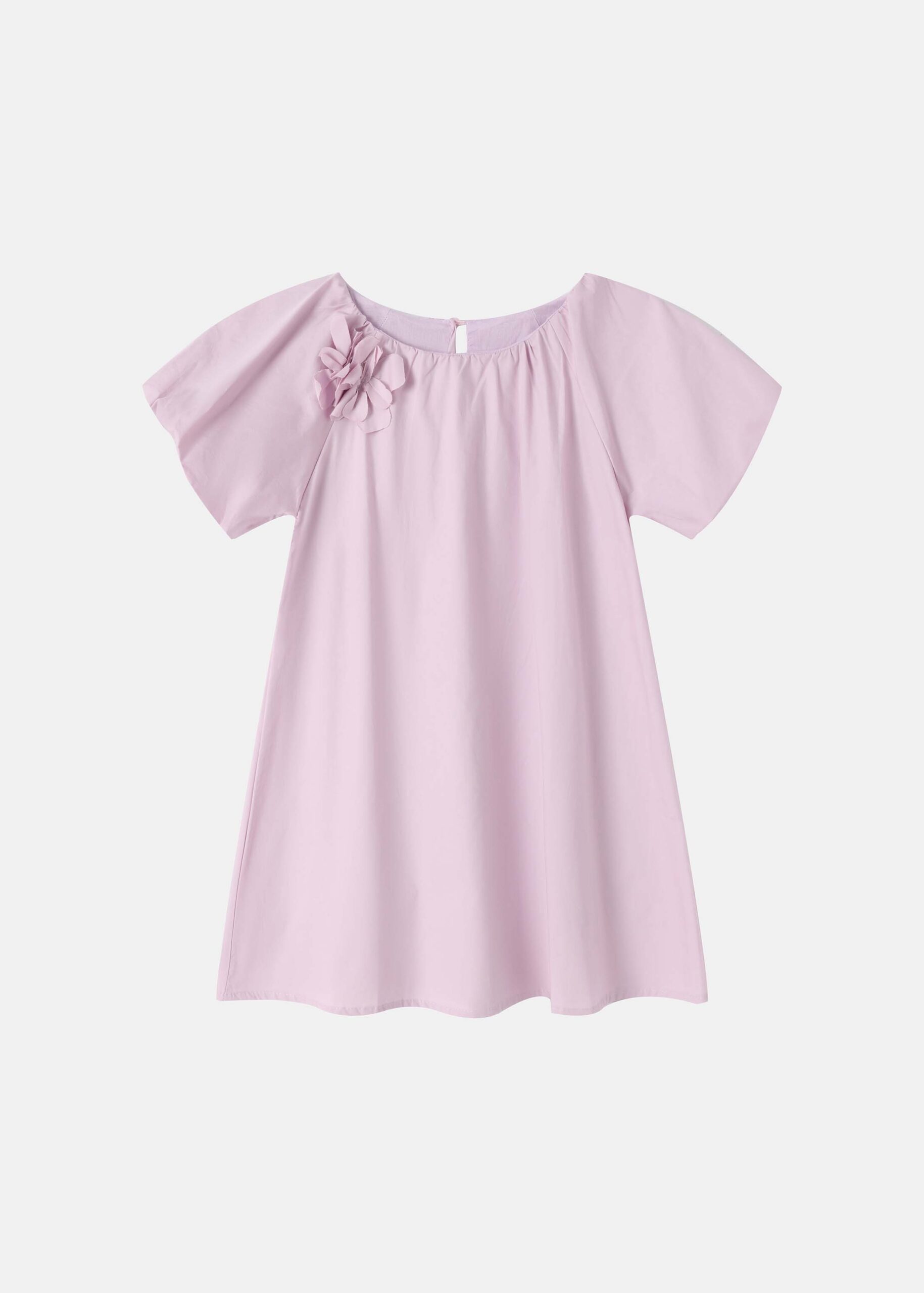 Kids girl dress, short, short sleeves, round neck with back button to close, flowers decor, unique and modern