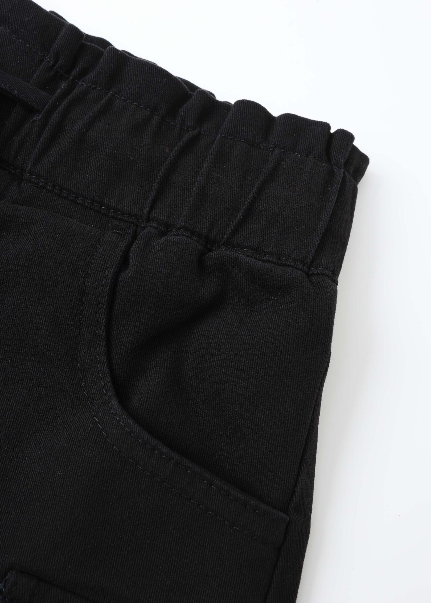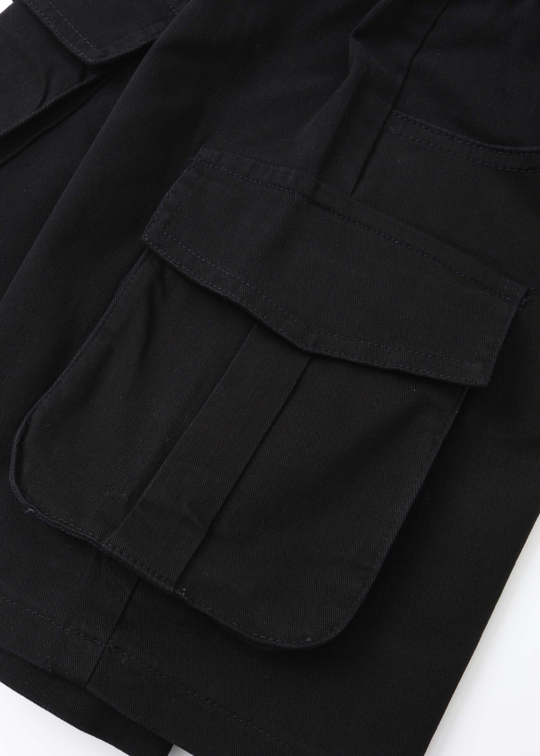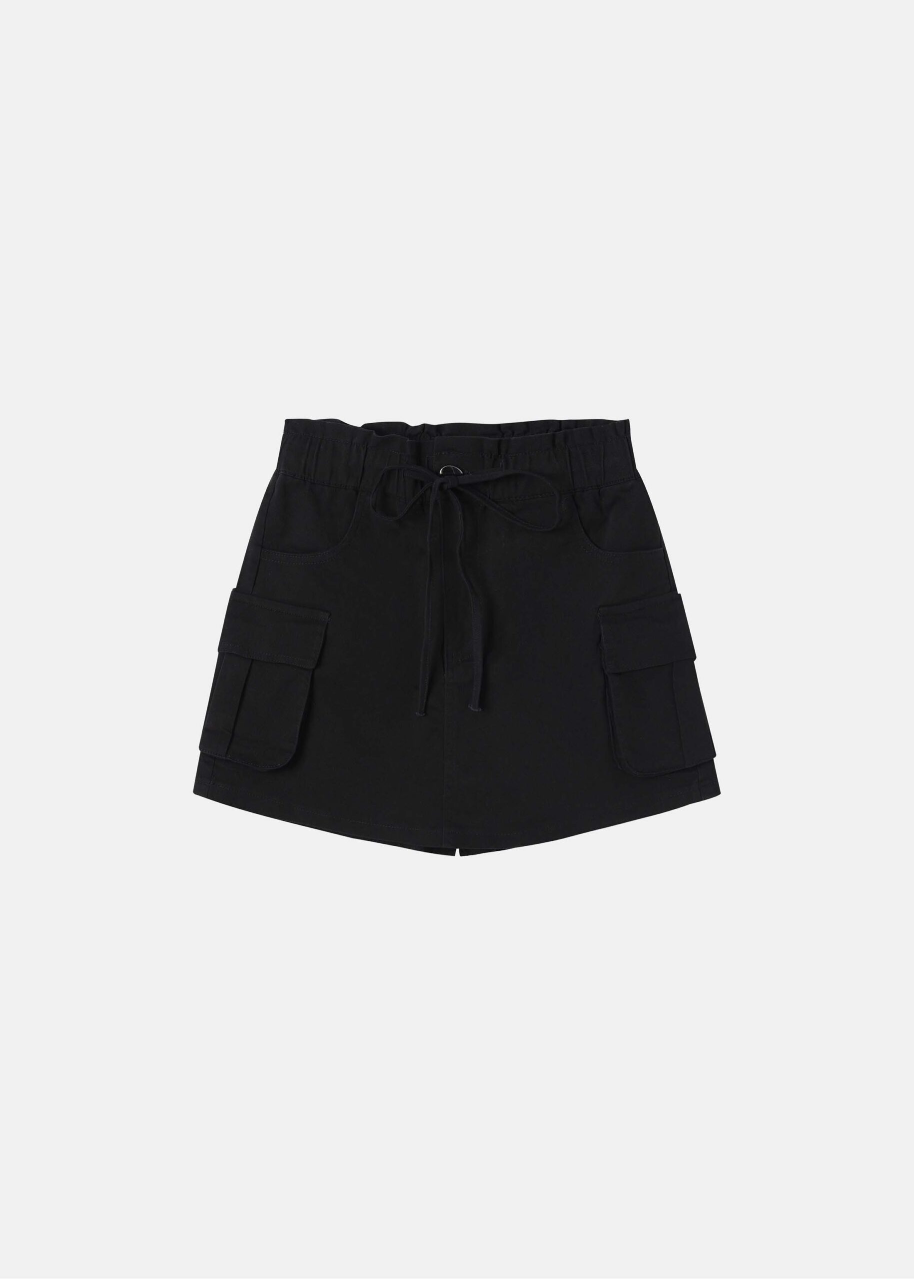 Kids girl skort, elastic waist with front tie, front button and zipper closure, front and side pockets, unique and modern