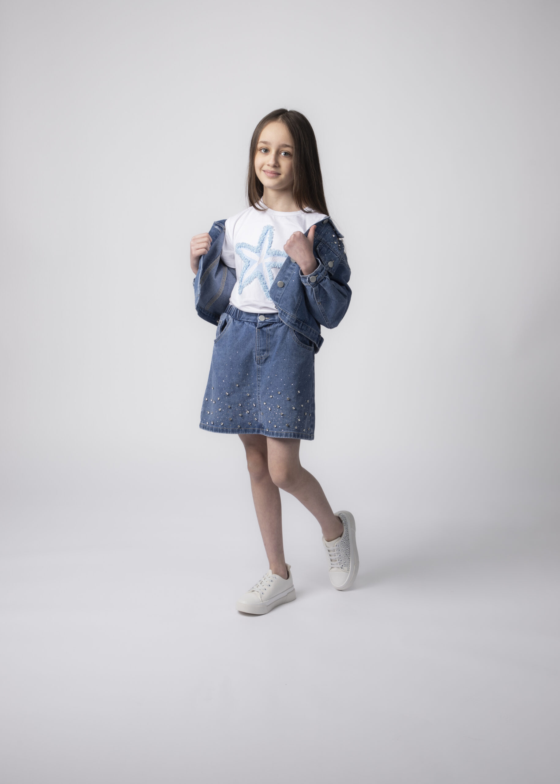 Kids girl t-shirt,star decor from the front, round neck, short sleeves, unique and modern