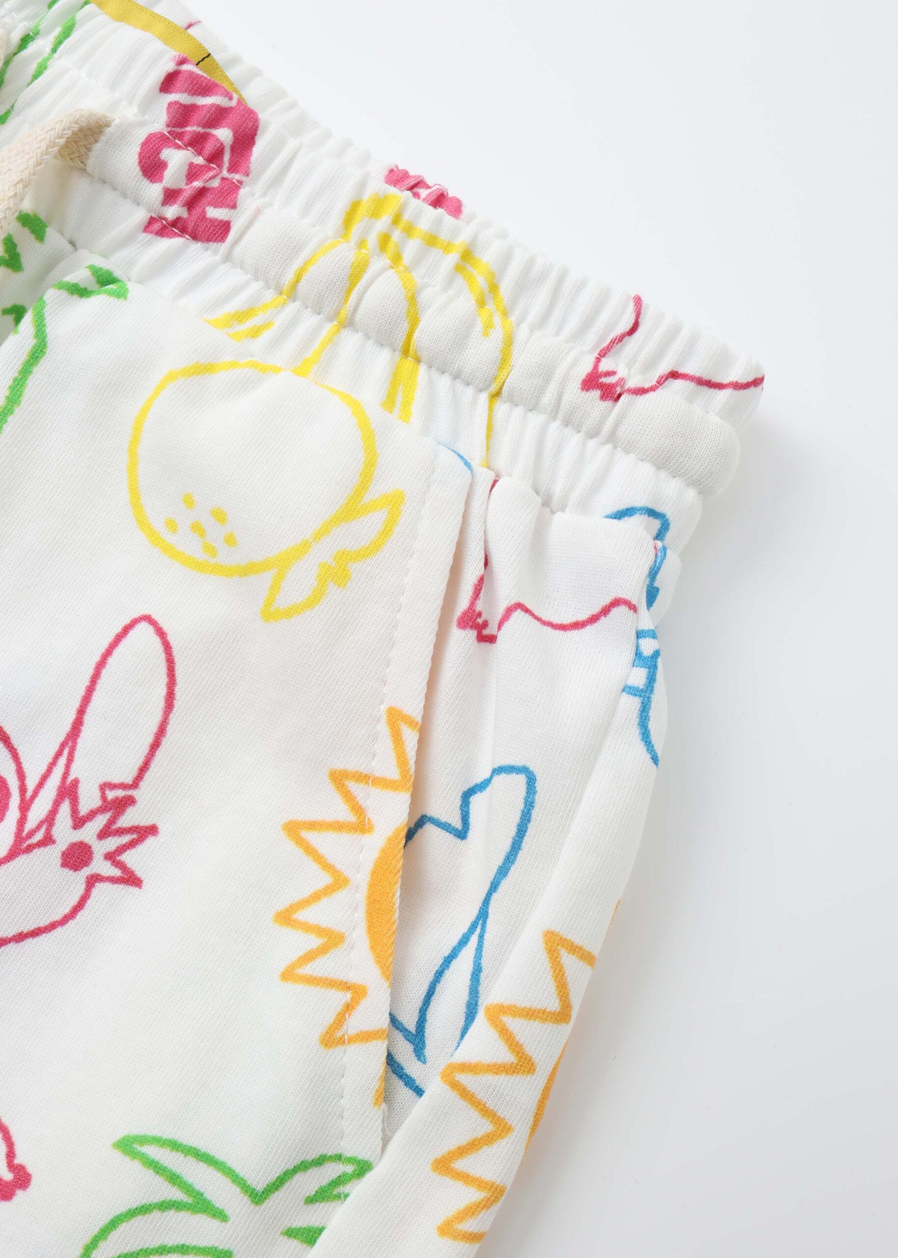 Kids girl short, stitch printed, elastic waist with front tie, front pockets, comfortable and colorful