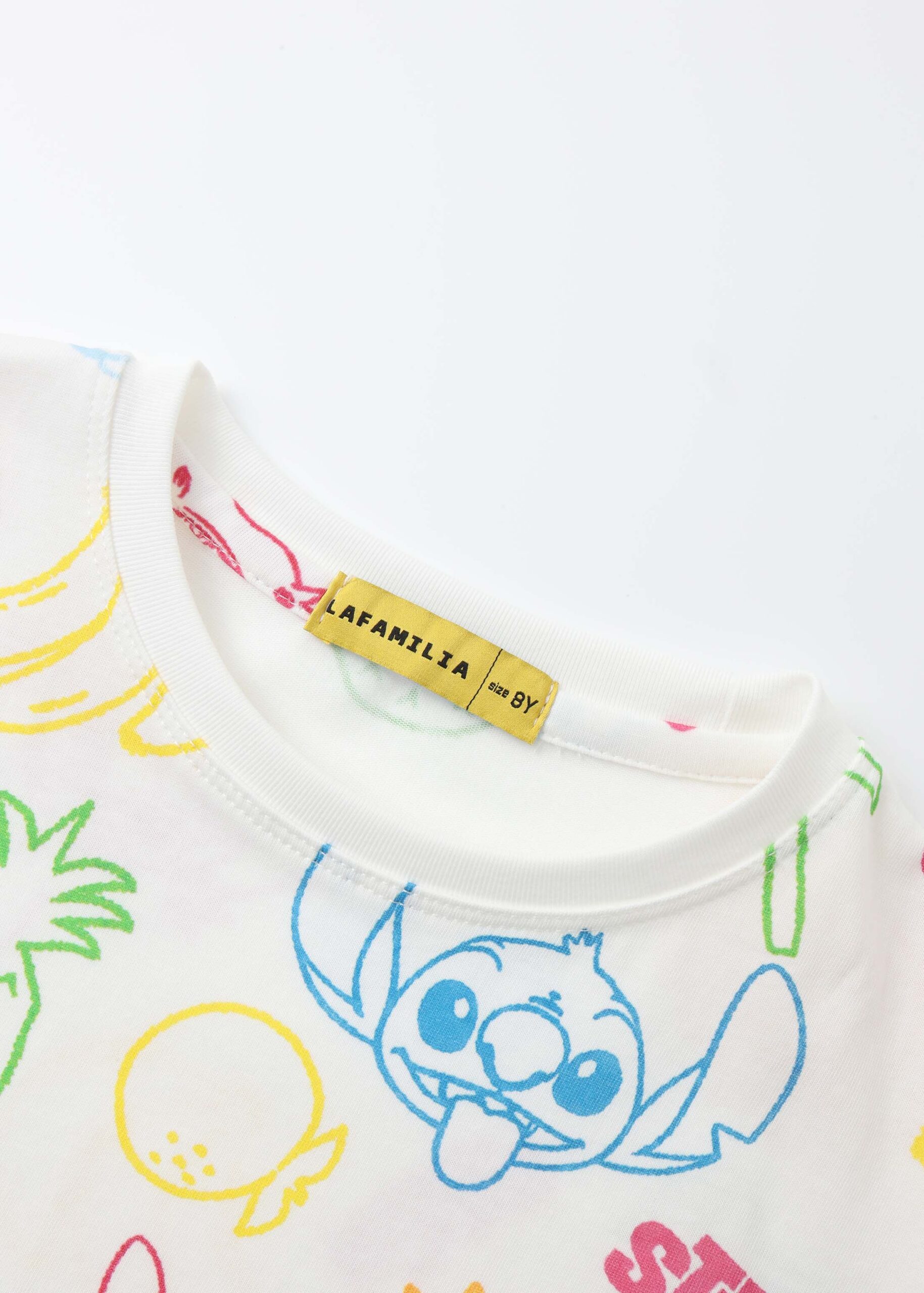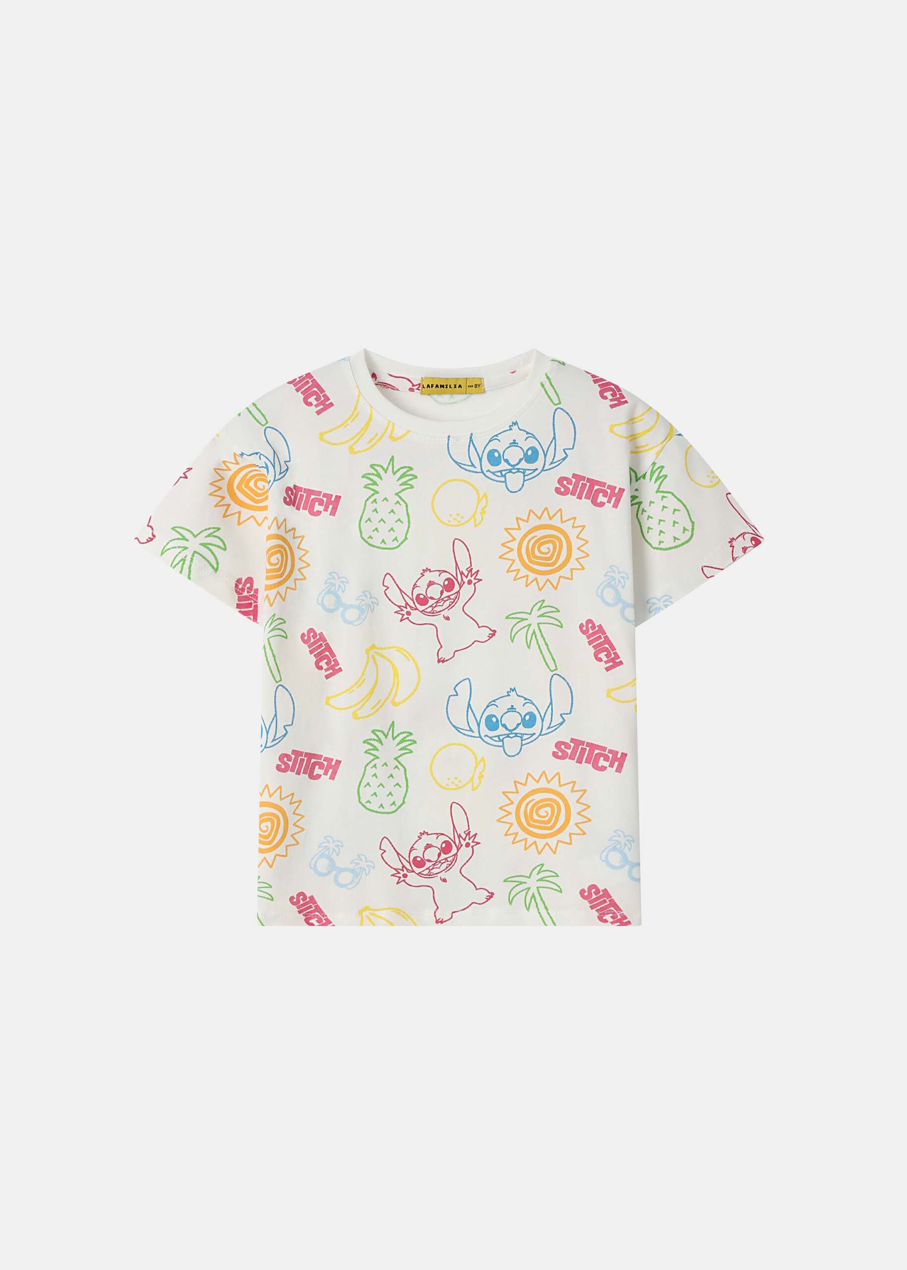 Kids girl t-shirt, “Stitch” drawings printed, round neck, short sleeves, practical and modern