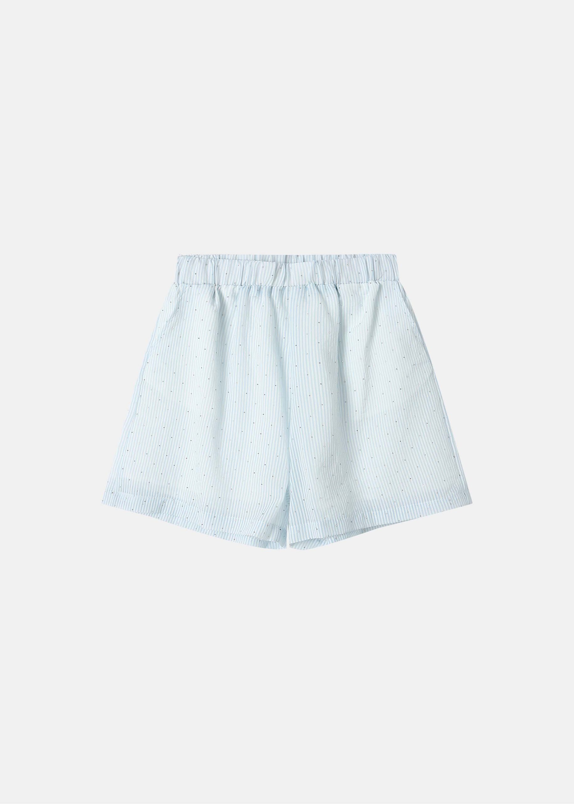 Kids girl short, striped, beads decor, elastic waist, front pockets, unique and modern