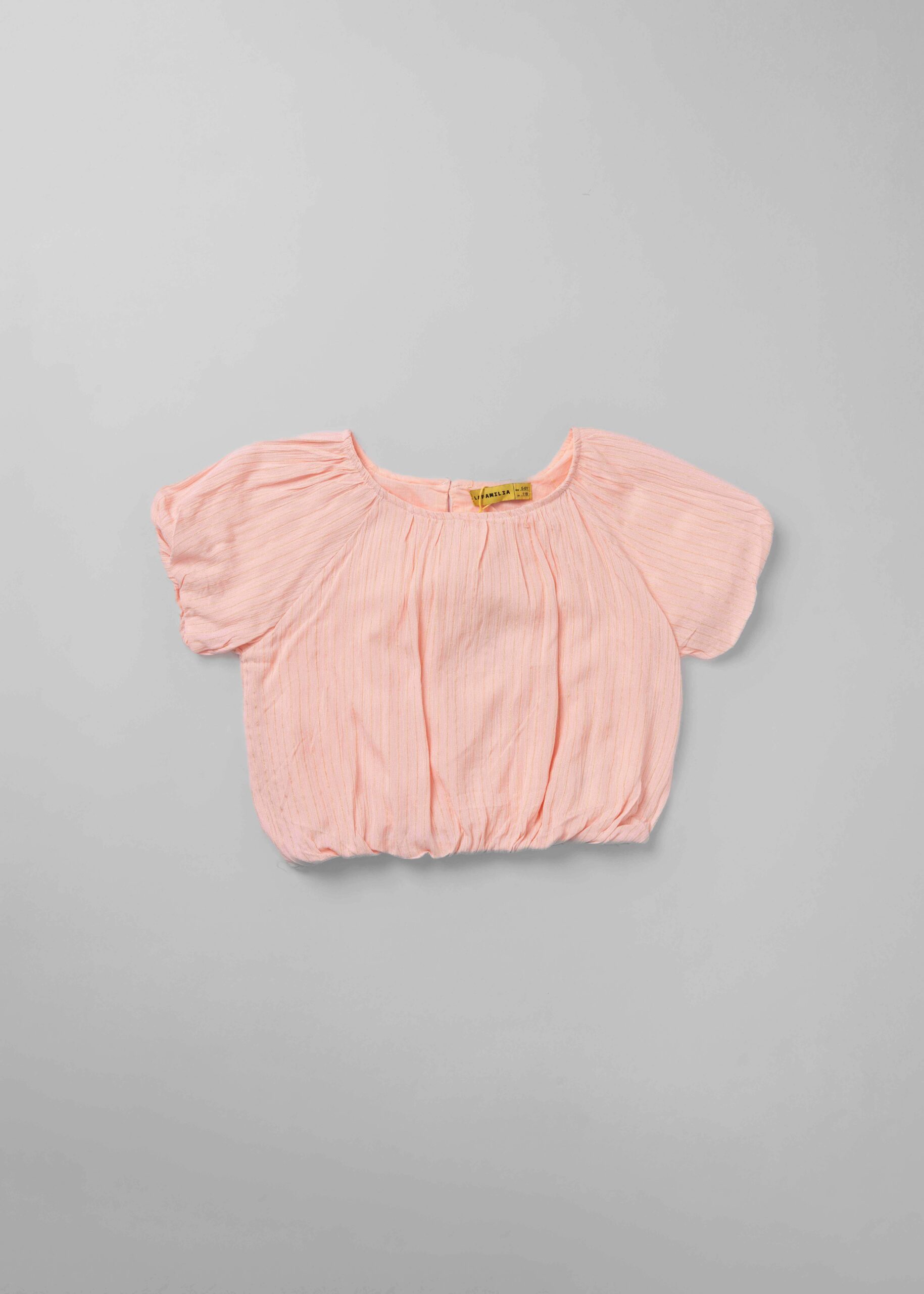 Kids girl t-shirt, striped, round neck with back button, short sleeves, unique and modern