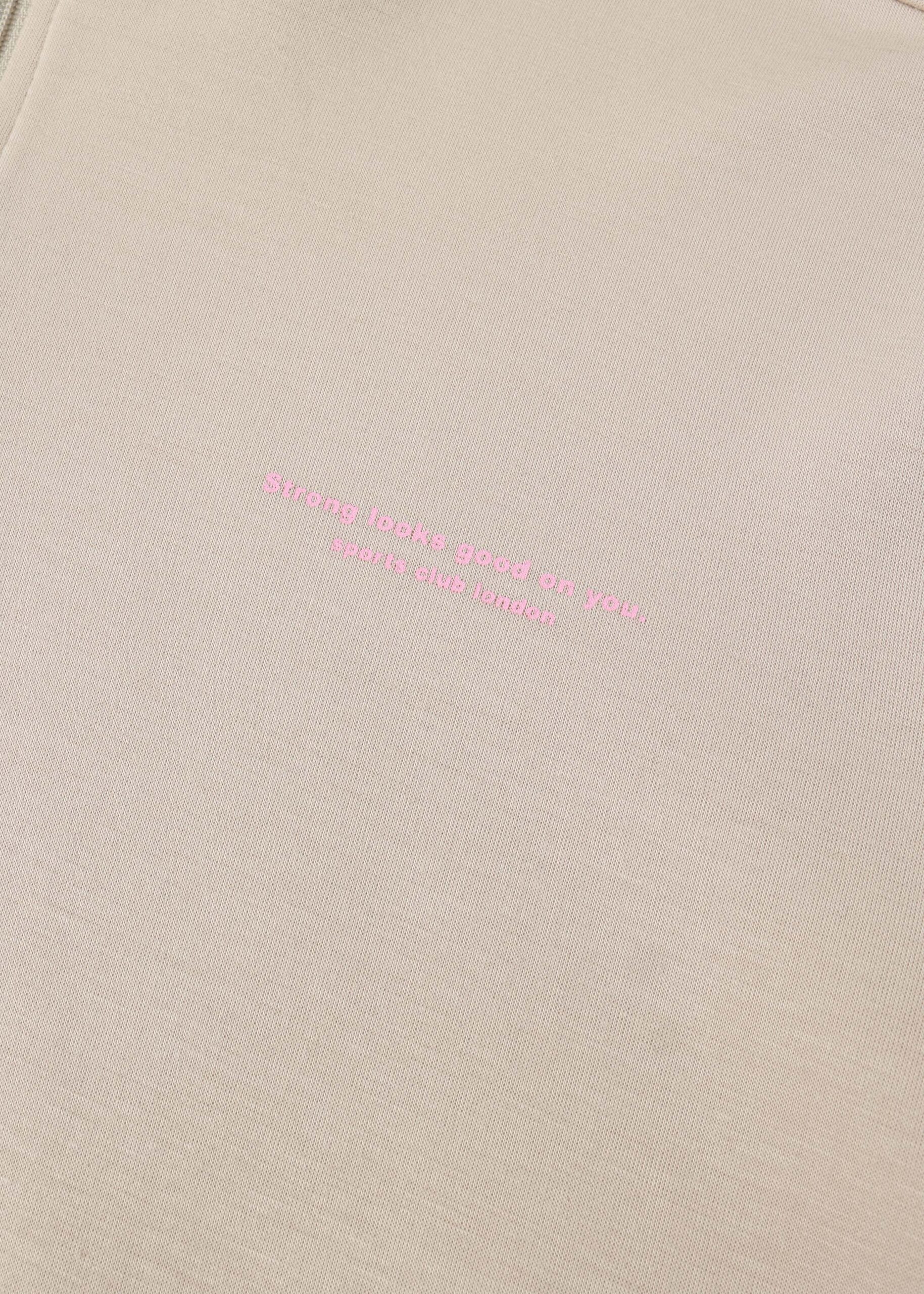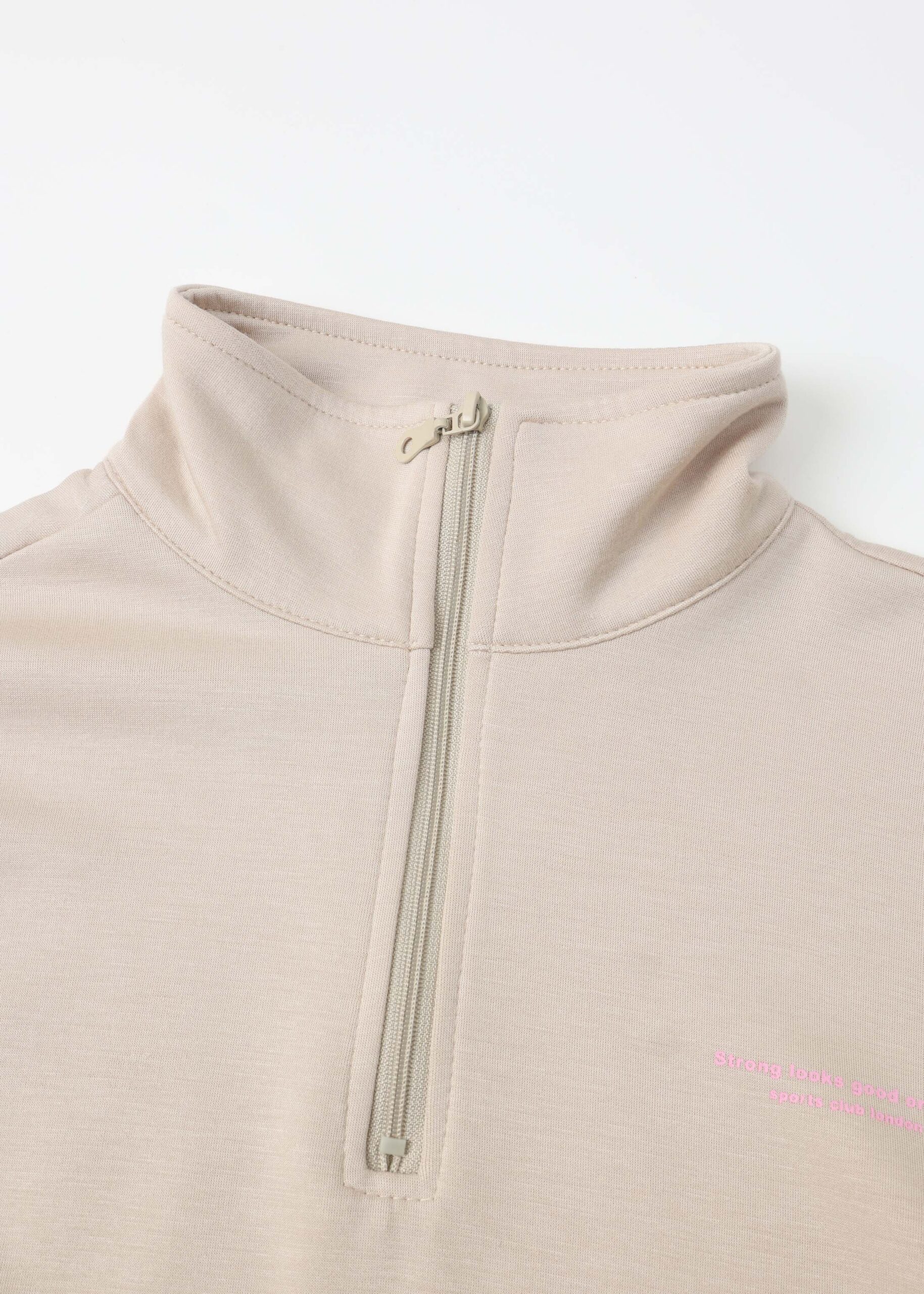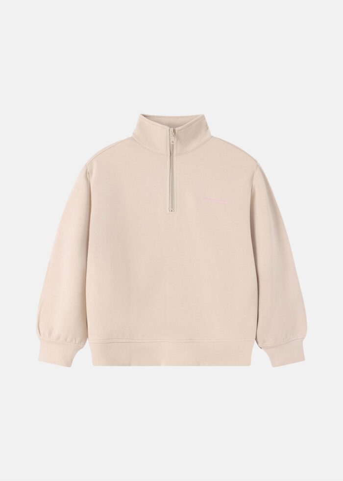 Kids girl blouse, “Strong Looks Good on You” printed from the front, high-neck with front zipper closure, long sleeves with tight cuff, unique and warm