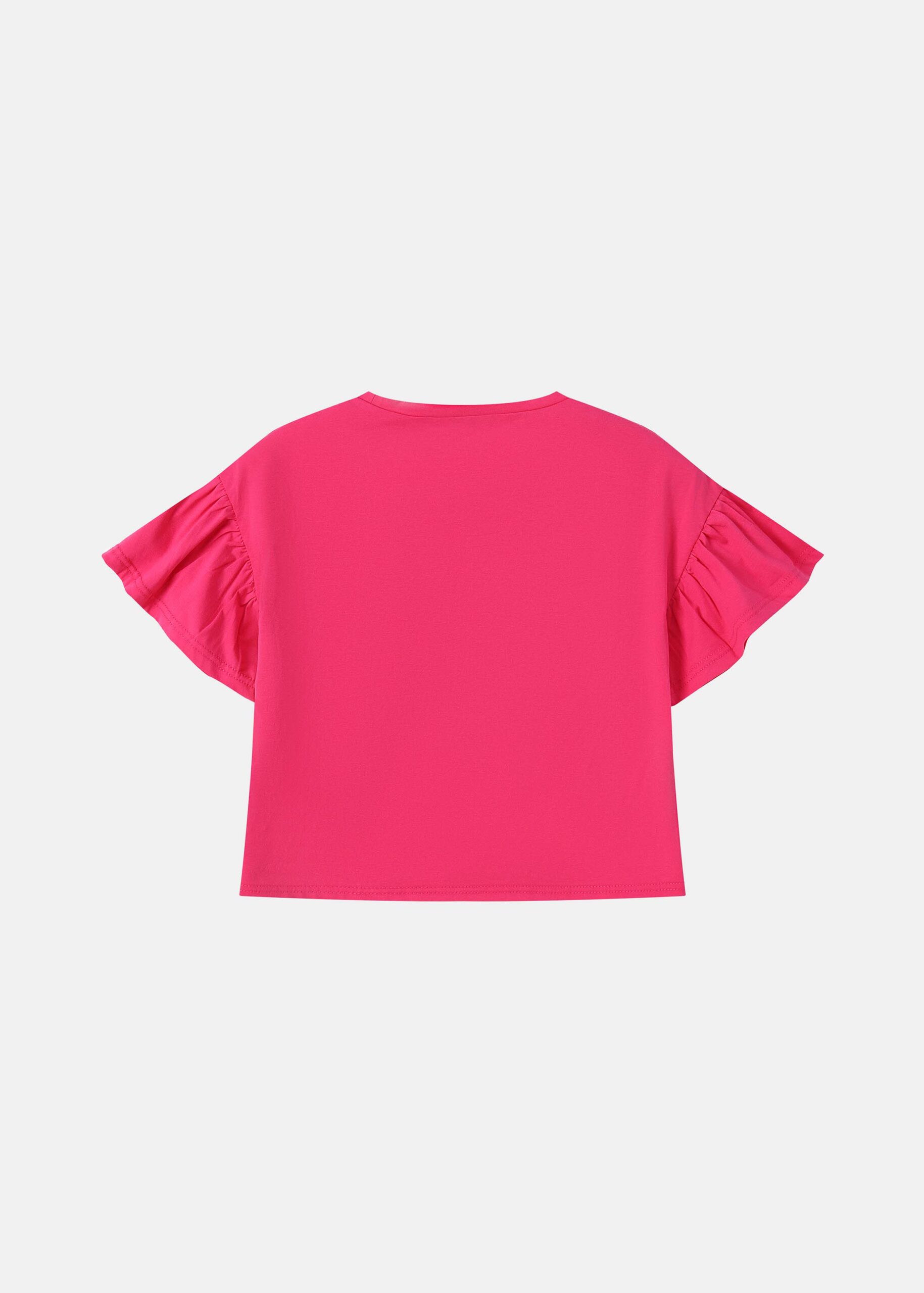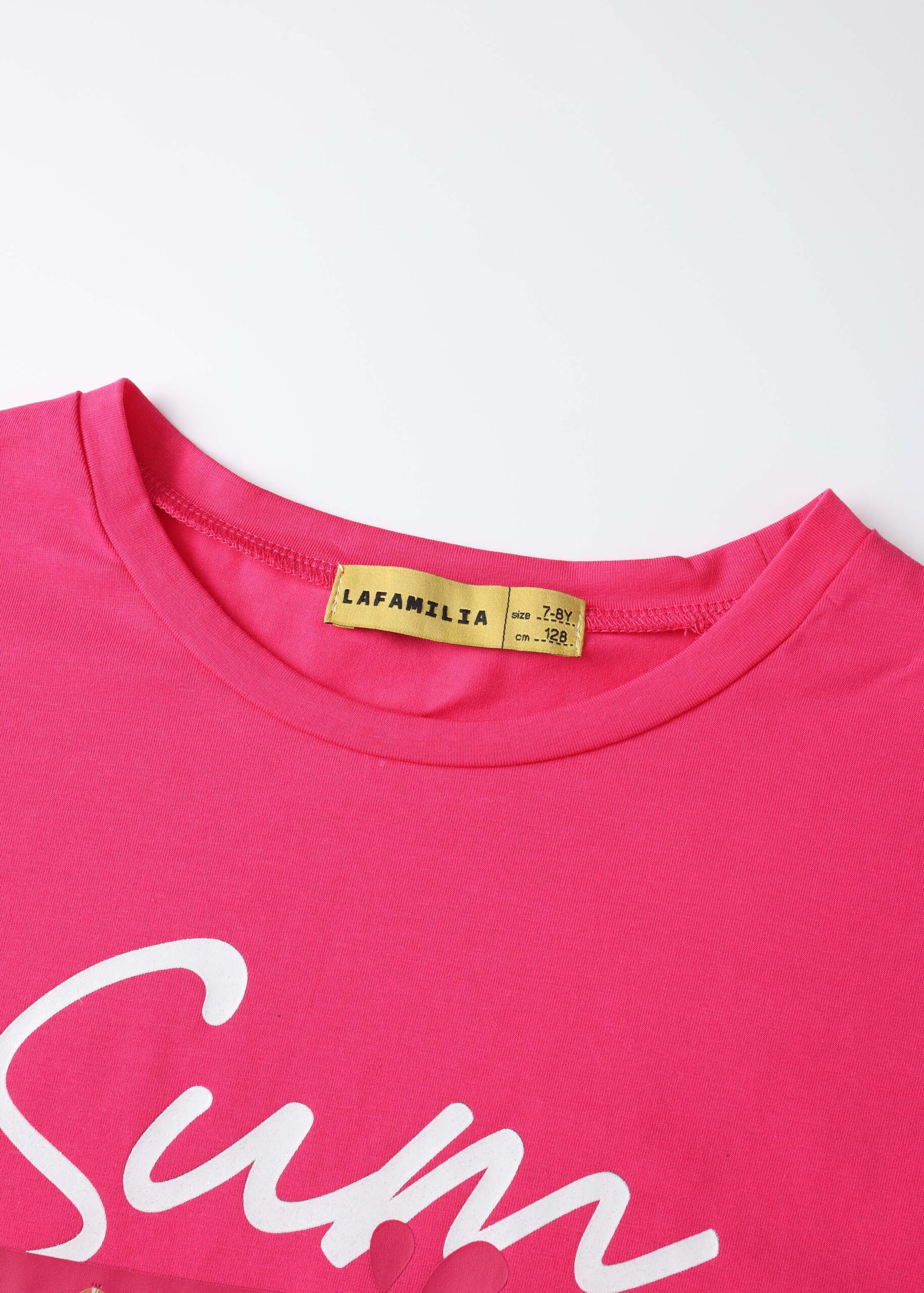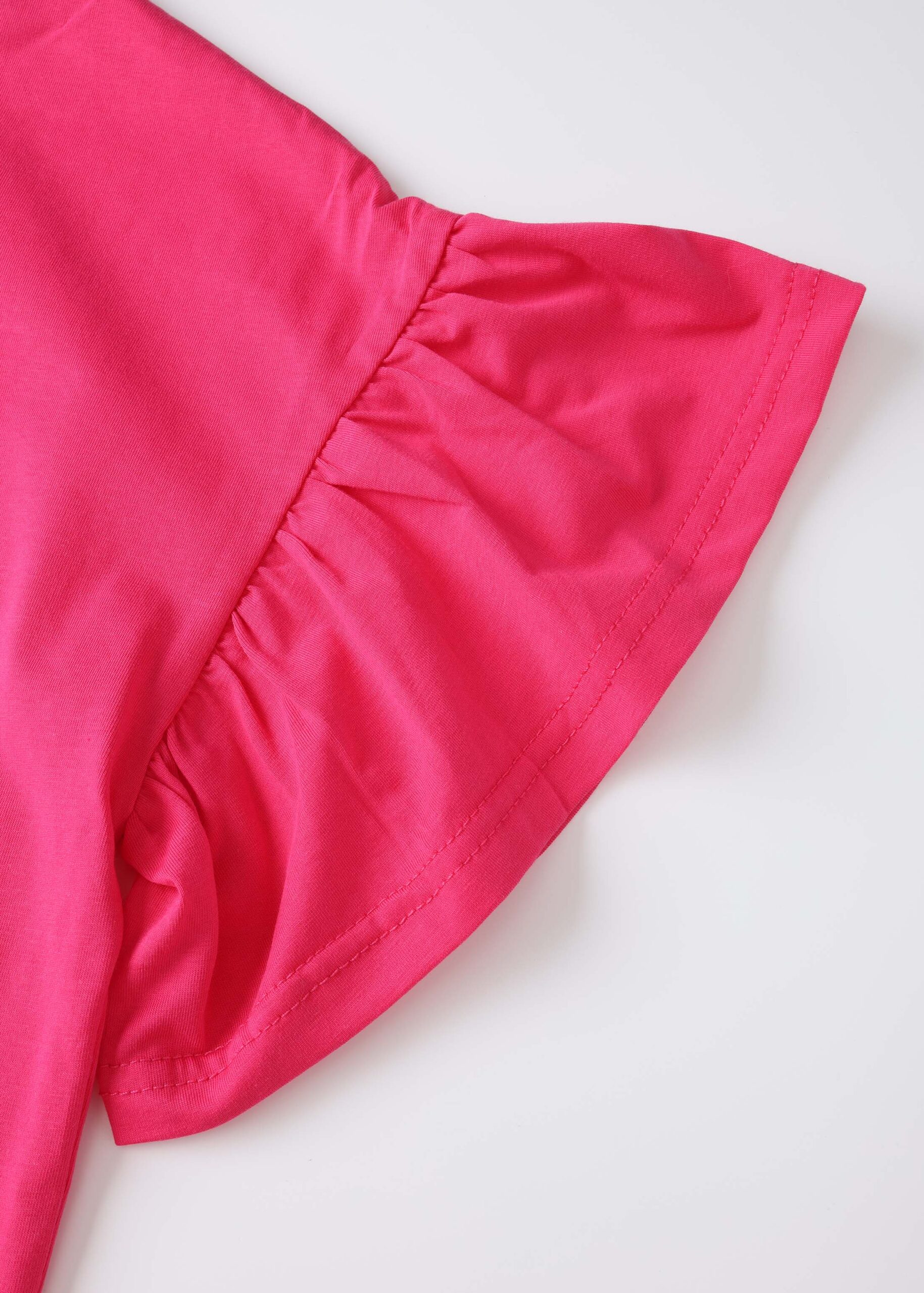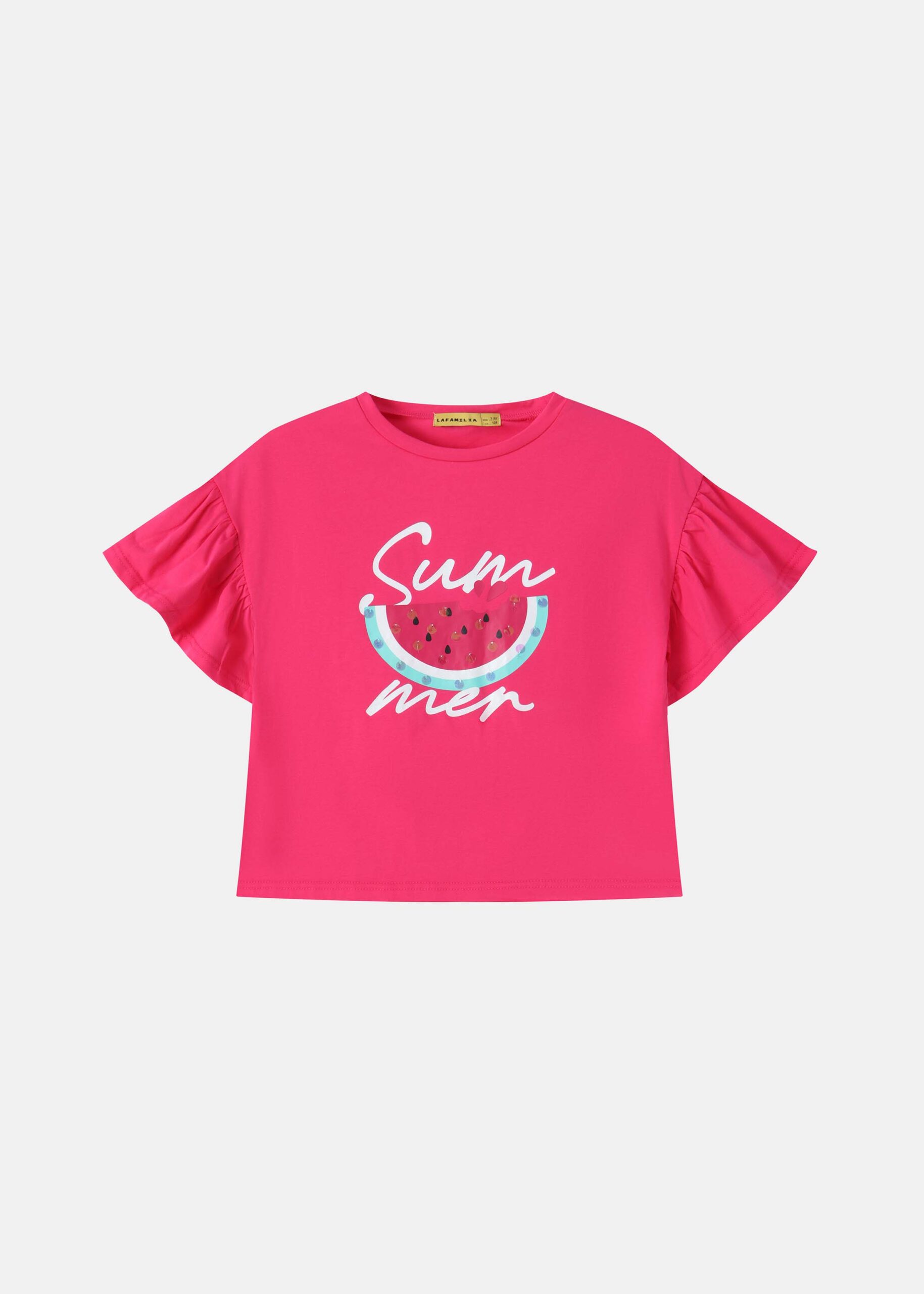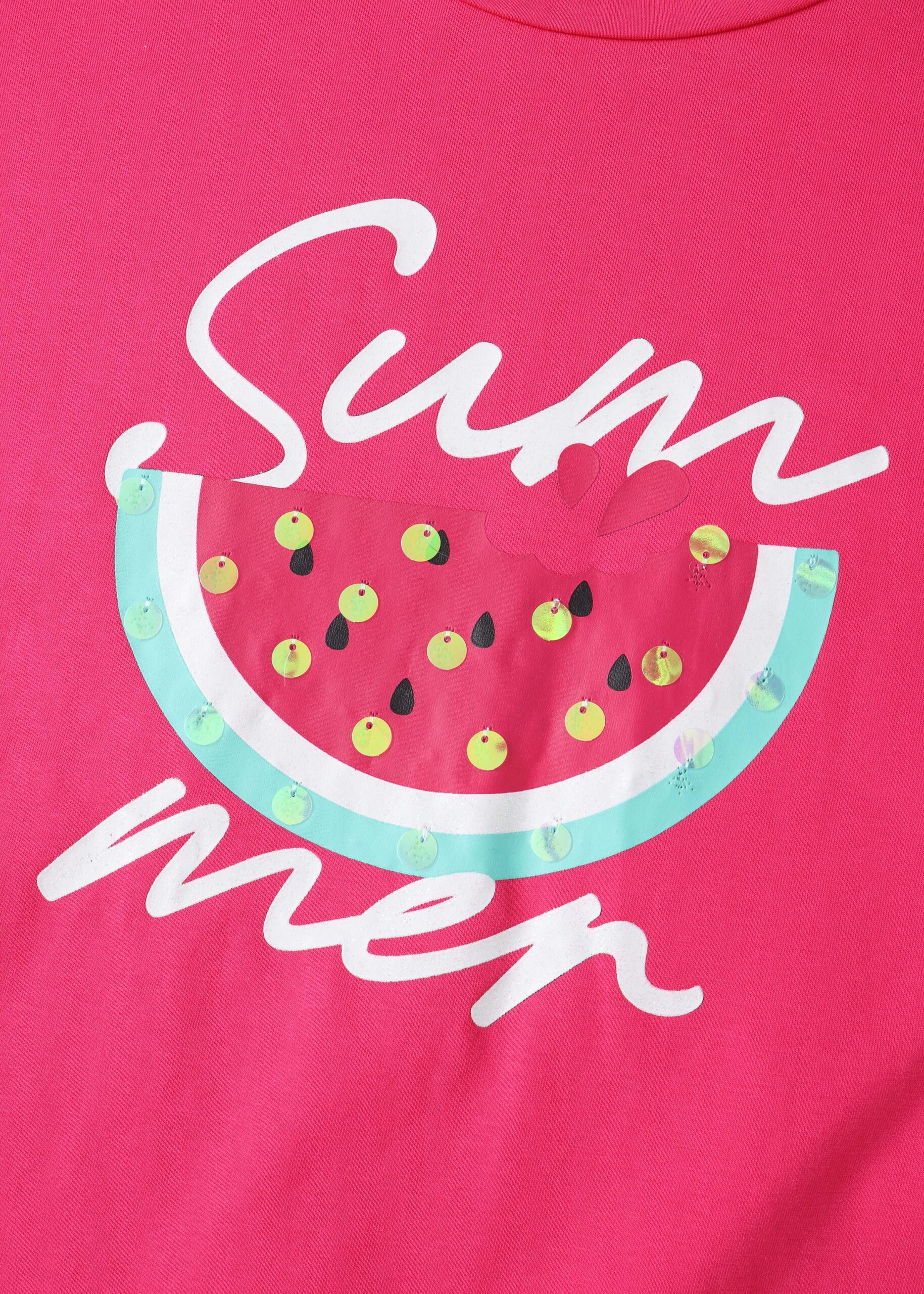 Kids girl blouse, front “Summer” with Watermelon printed, round neck, short ruffled sleeves, unique and practical