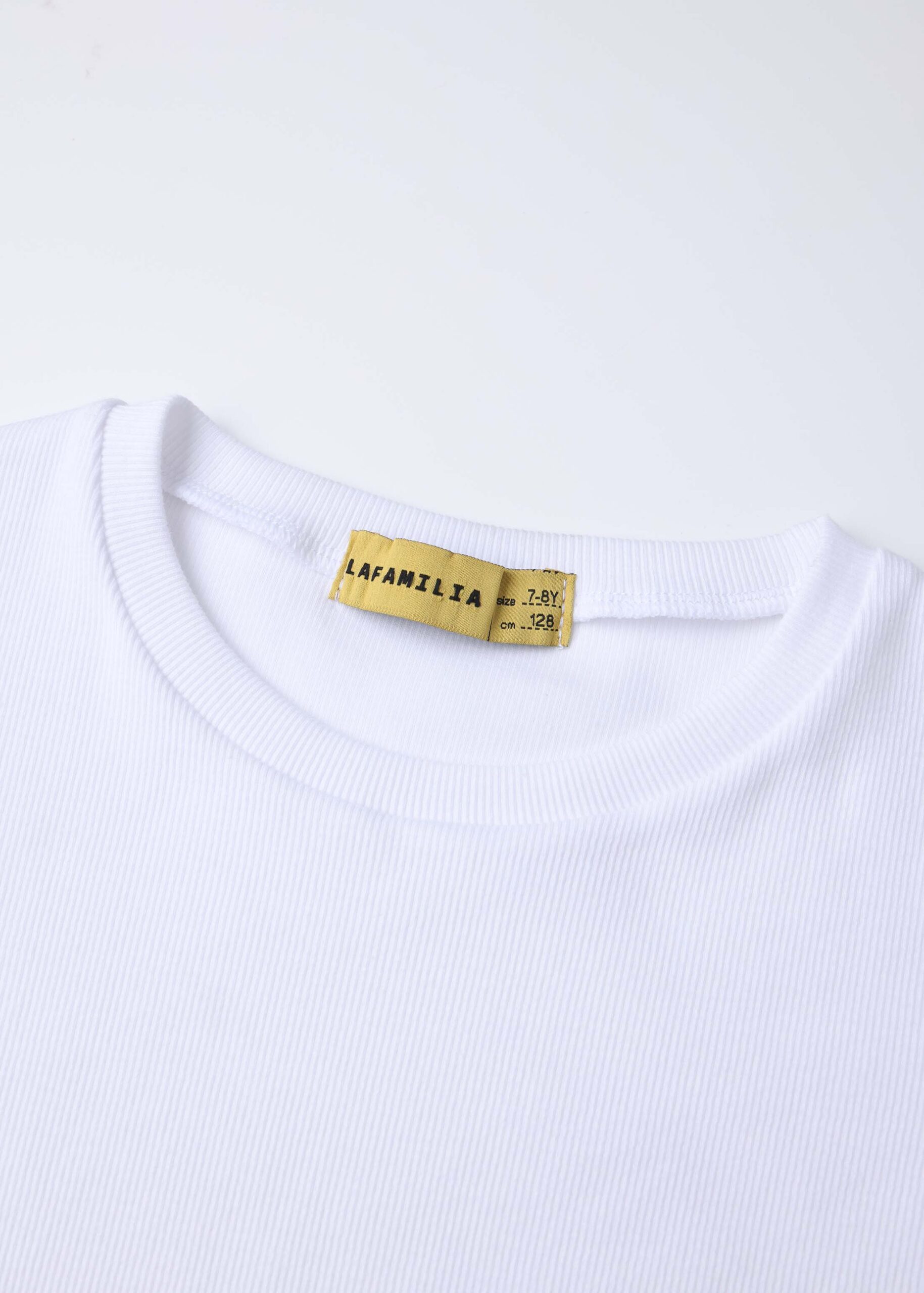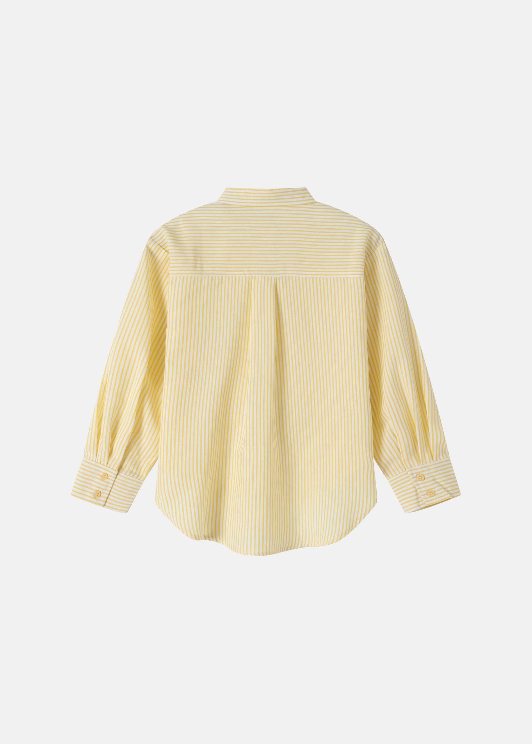 Kids girl set, two-pieces, shirt, striped, rolled collar, front buttons to close, long sleeves with tight cuff, basic t-shirt, striped fabric, round neck, short sleeves, unique and modern