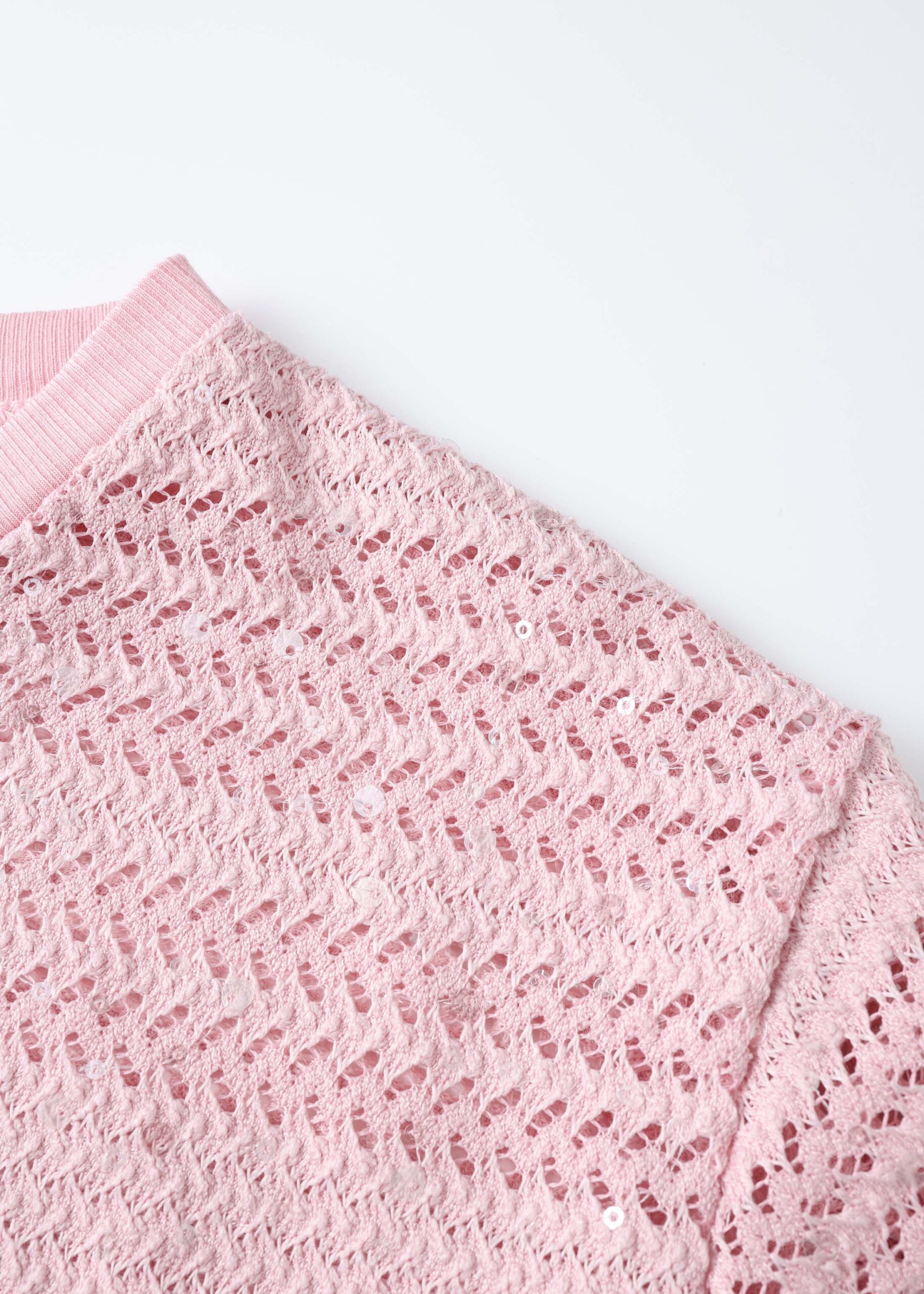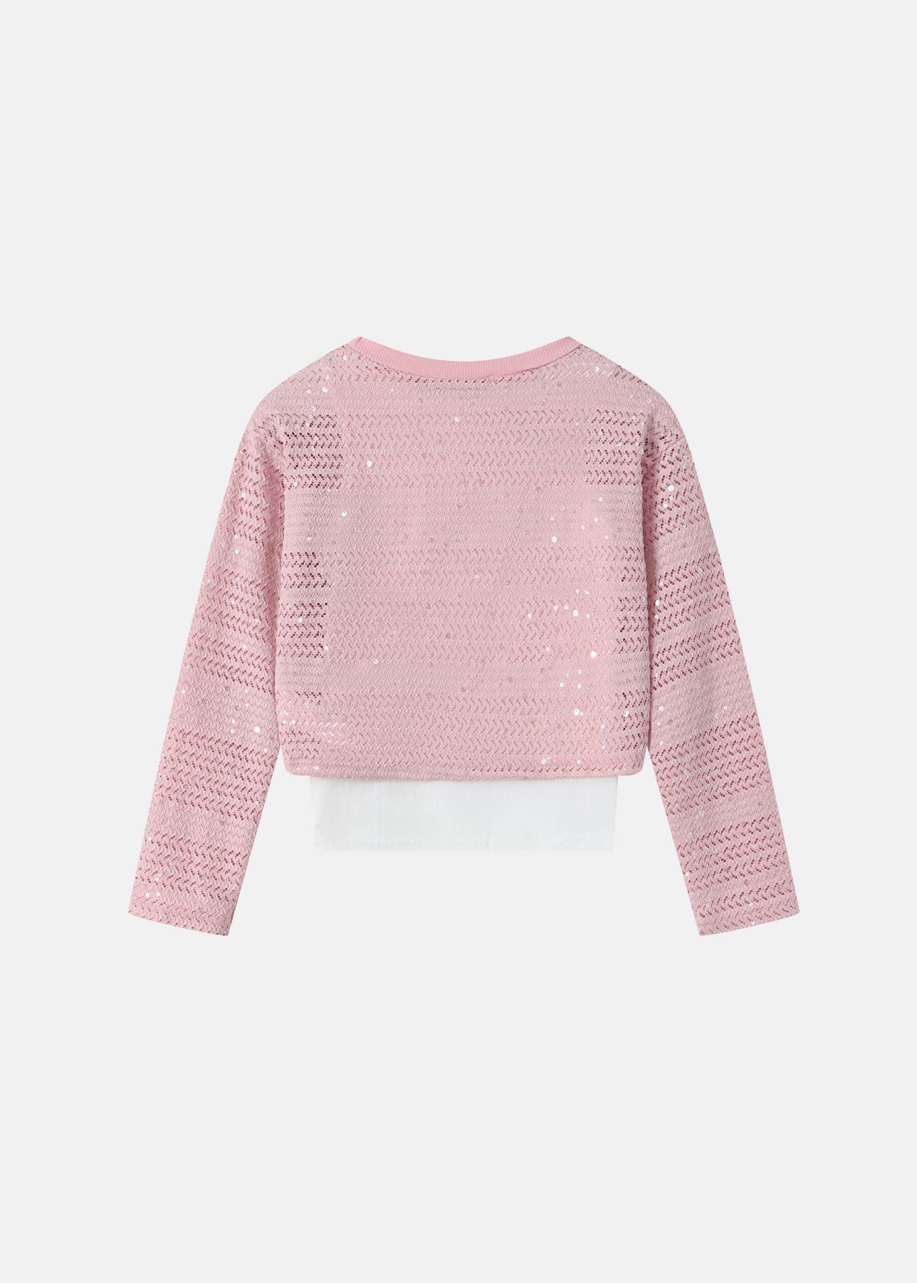 Kids girl set, two-pieces, basic top, sleeveless, round neck, knitted blouse with sequin decor, round neck, long sleeves, unique and modern