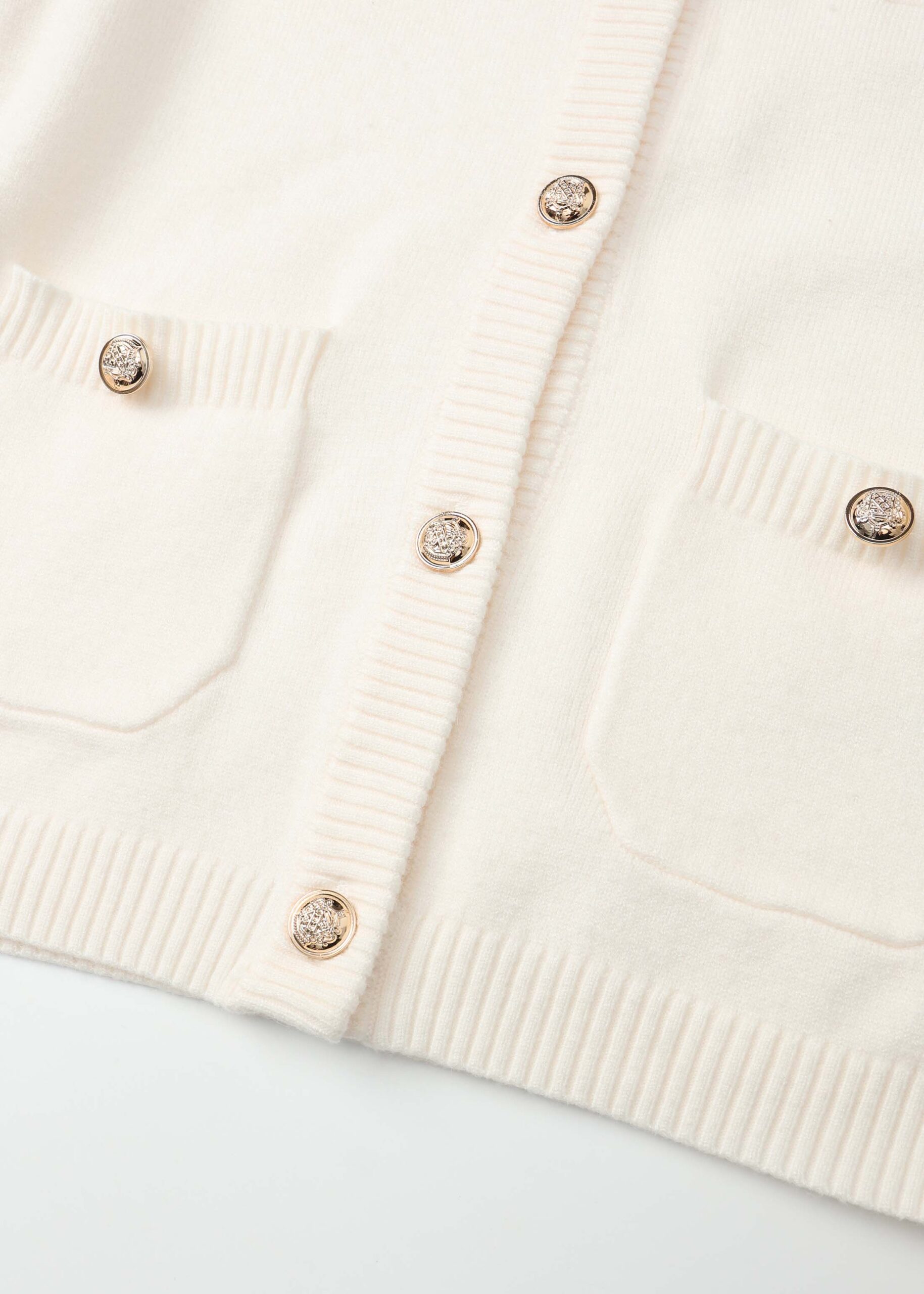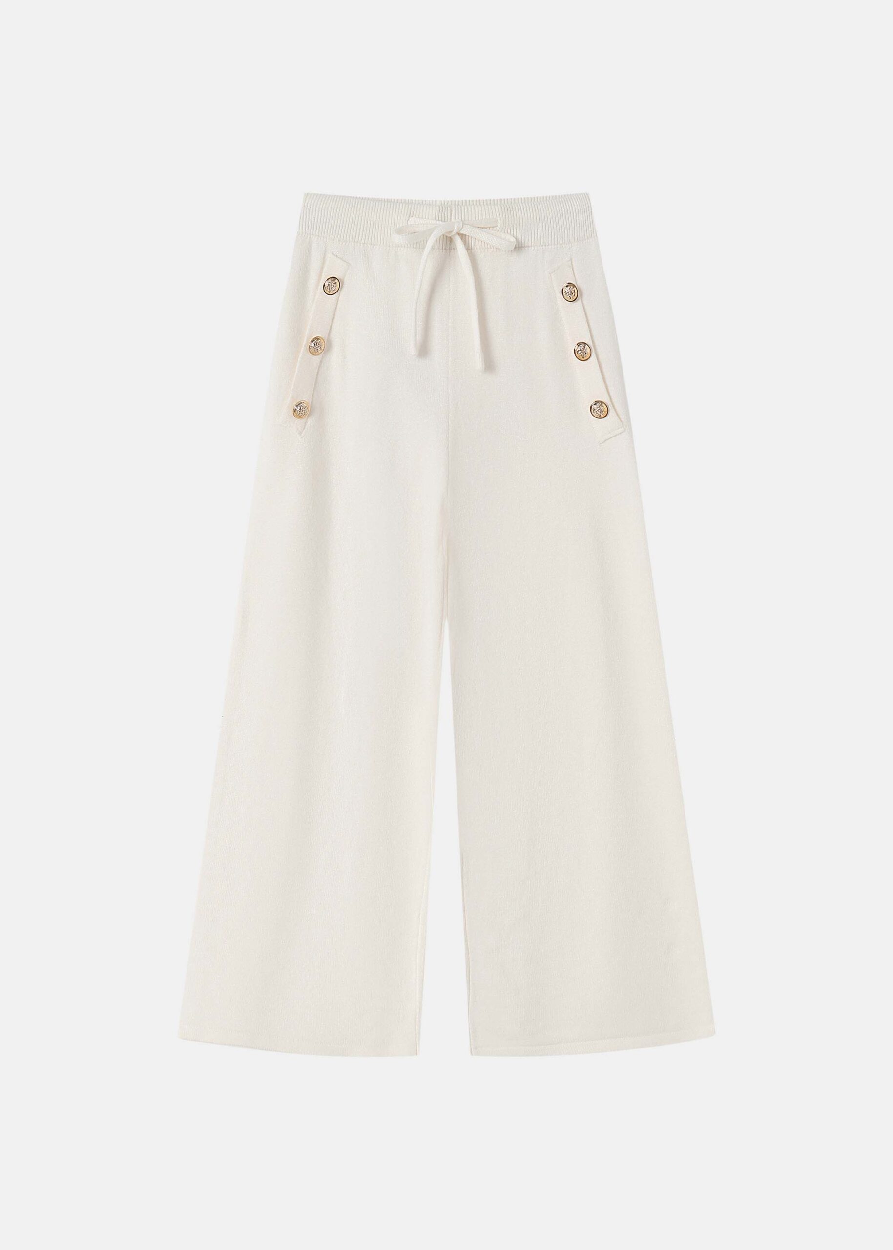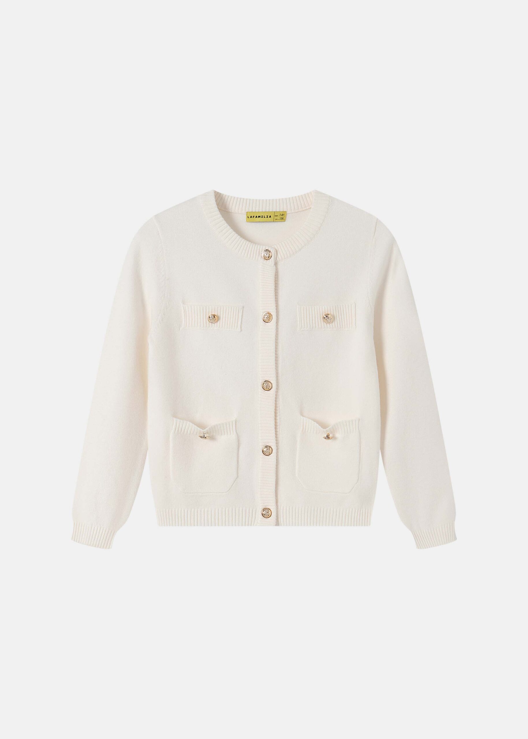 Kids girl suit, two-pieces, knitted fabric, jacket, plain, round neck, front buttons to close, long sleeves, front pockets, trouser, flow, elastic waist with front tie, front pockets with buttons decor, unique and modern