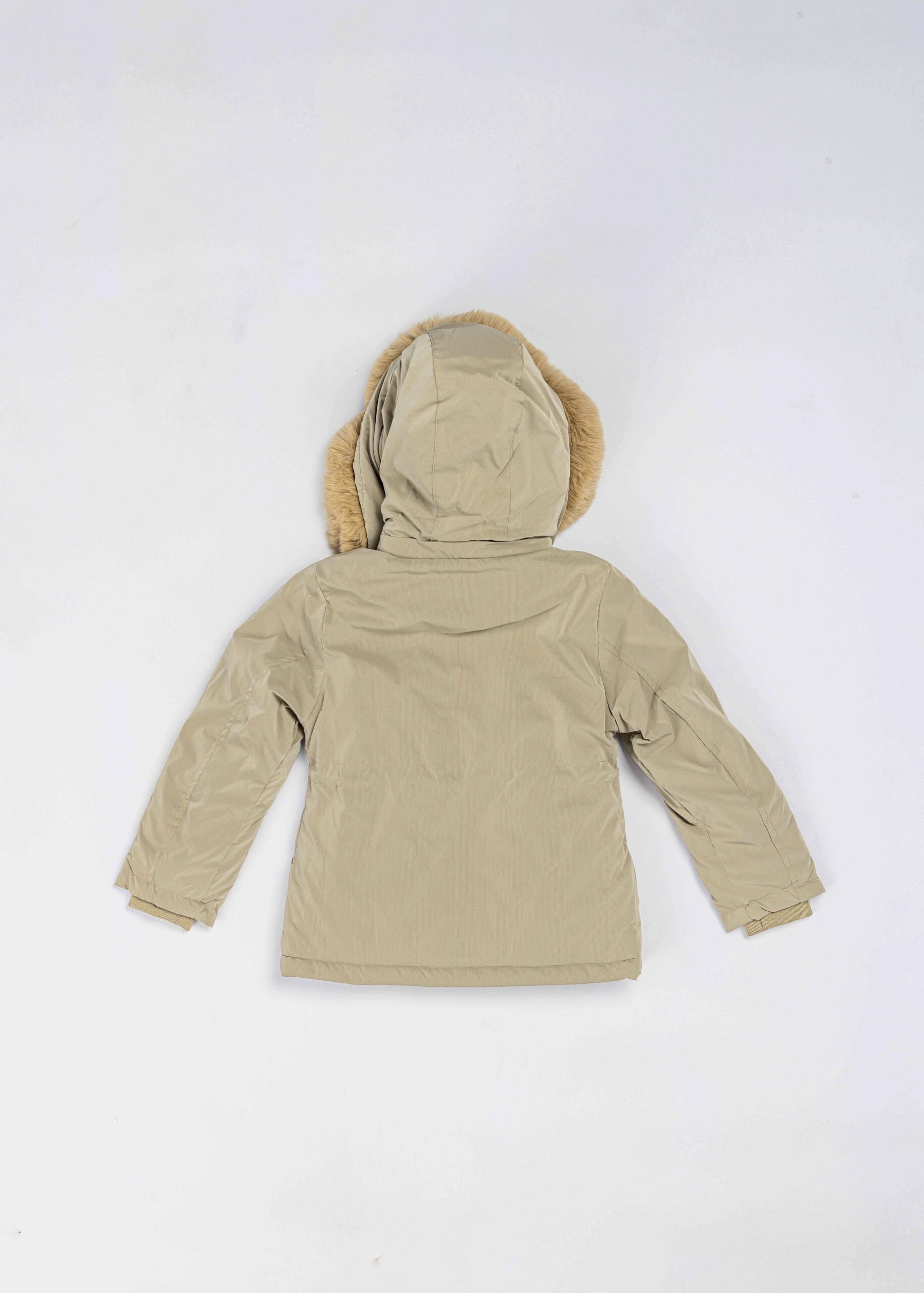 Kids girl jacket, waterproof, elastic waist, hood with fur lined, front zipper closure and buttons, long sleeves with elastic cuff, front pockets, unique and warm