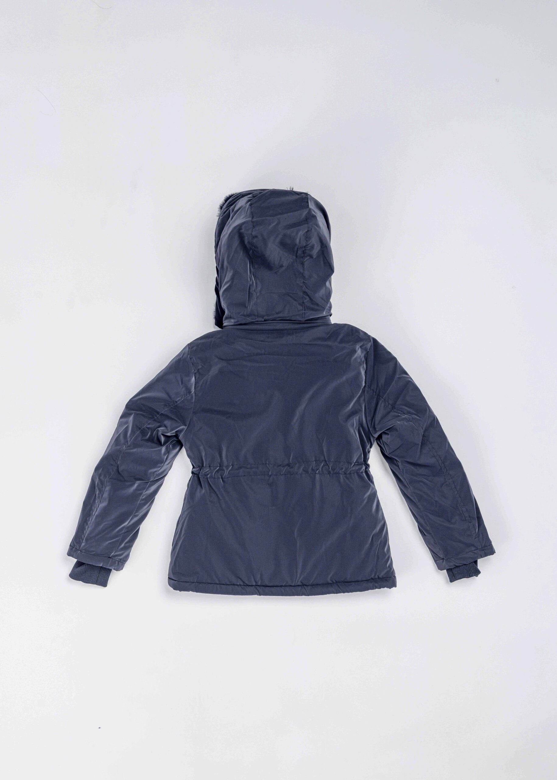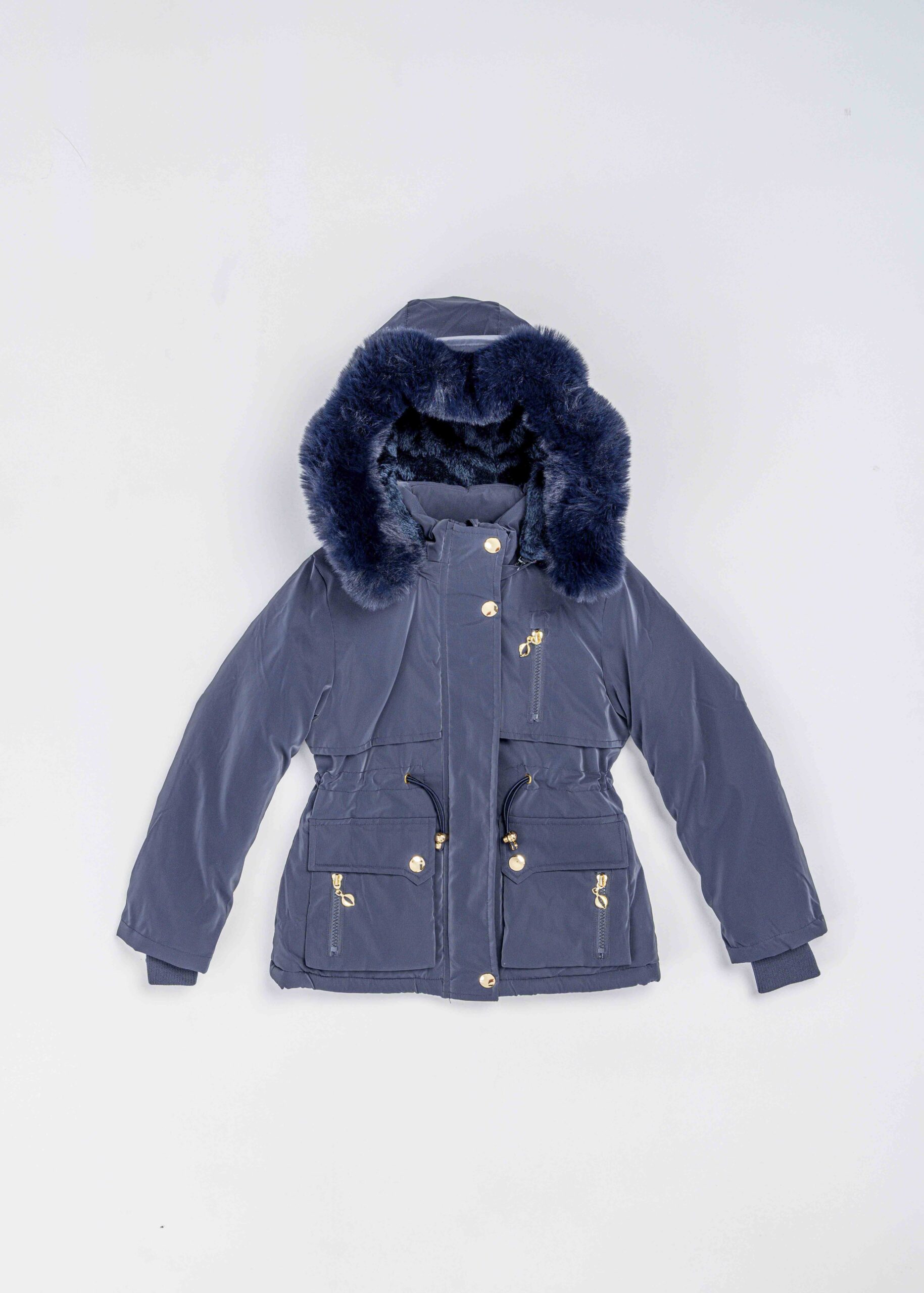 Kids girl jacket, waterproof, elastic waist, hood with fur lined, front zipper closure and buttons, long sleeves with elastic cuff, front pockets, unique and warm