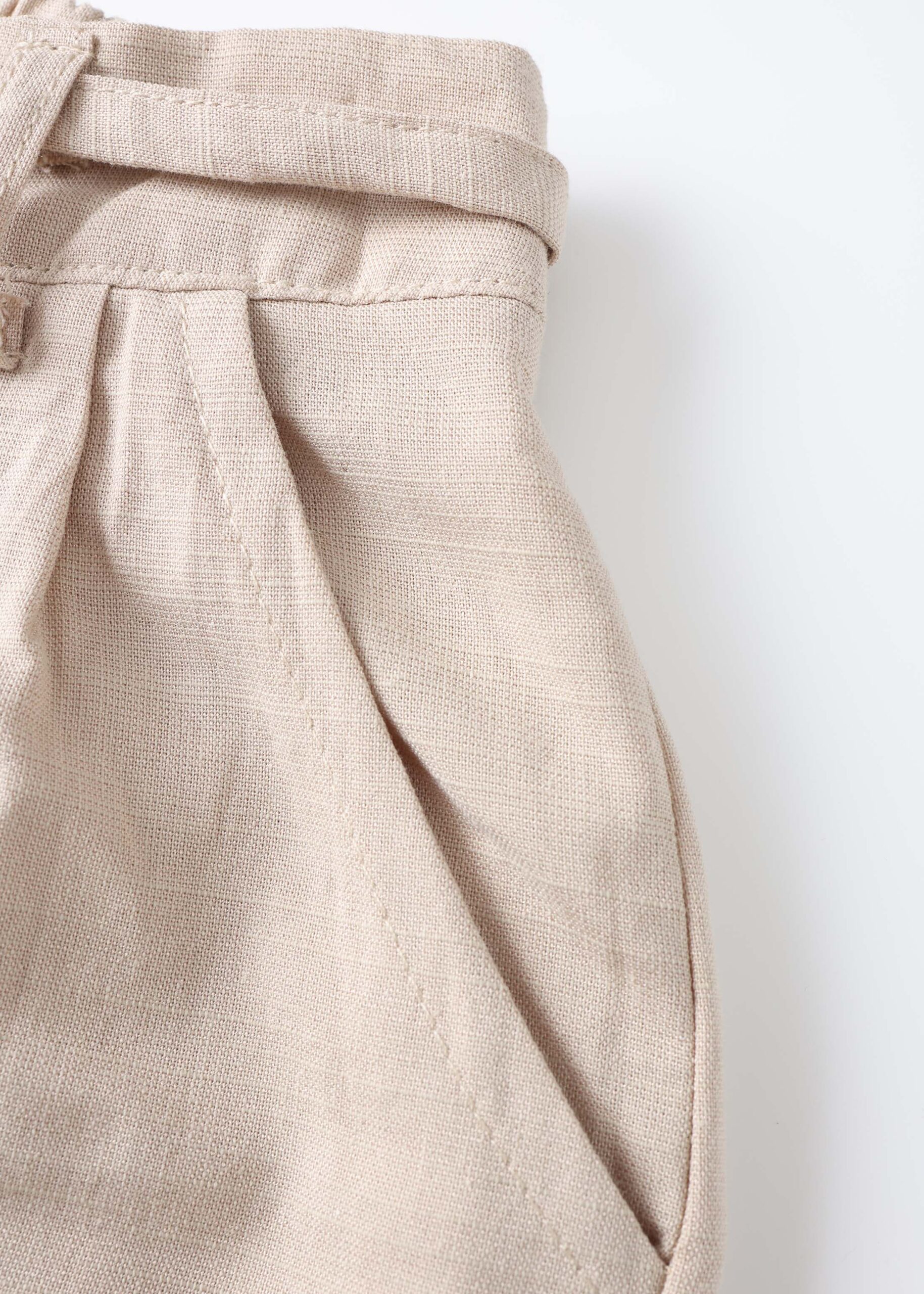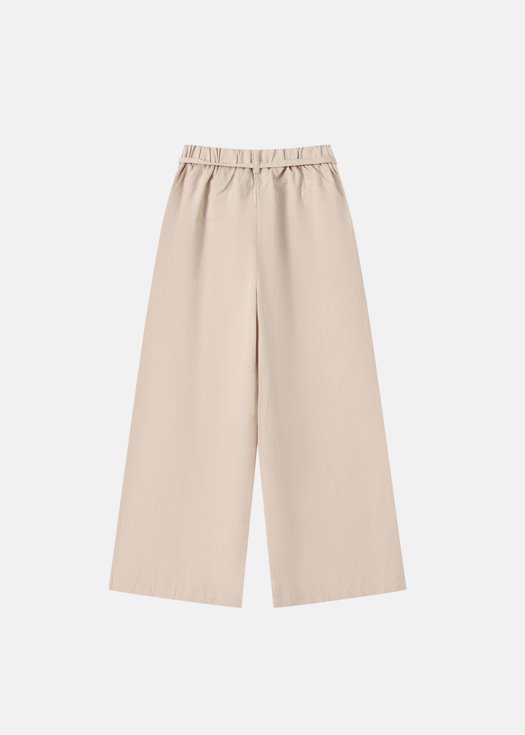 Kids girl trouser, wide-leg, elastic waist with front fake button and waist tie, front pockets, unique and practical