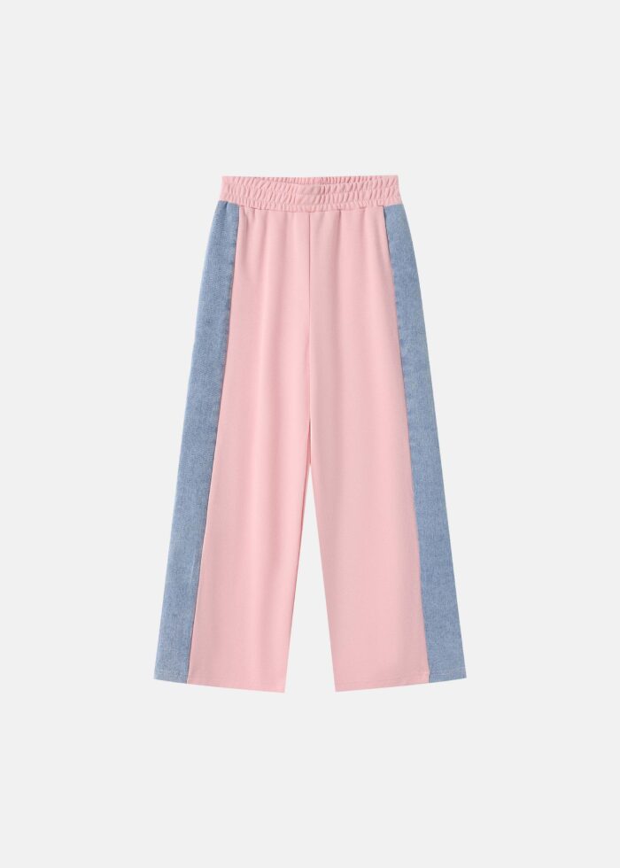Kids girl trouser, wide-leg, two-tone, elastic waist, denim sides, unique and practical