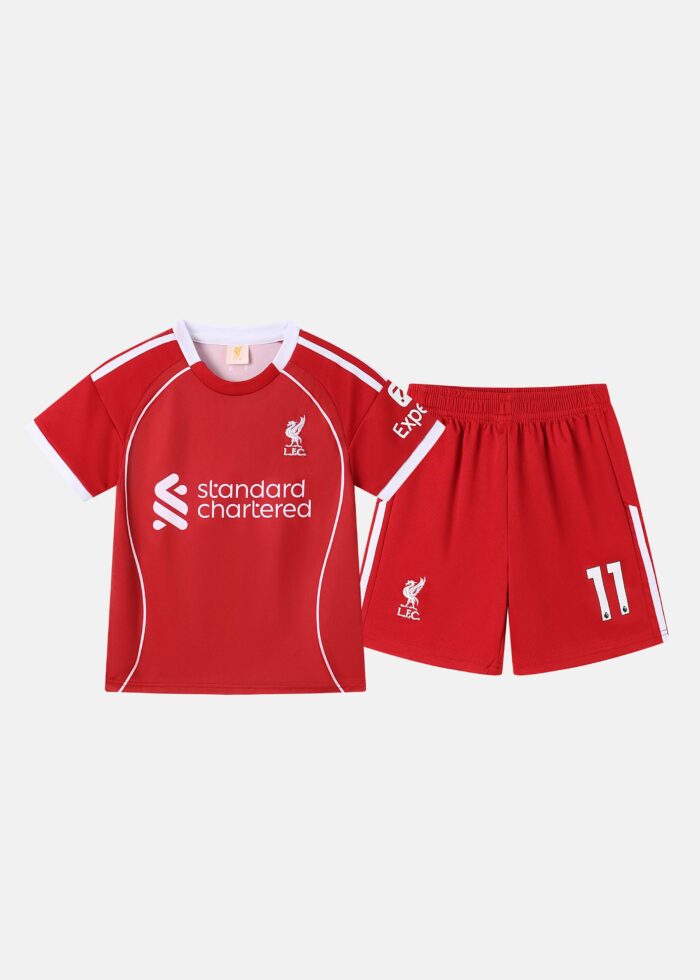 Kids kit, Liverpool team, “M.Salah 11”, t-shirt, round neck, short sleeves, short, elastic waist, practical and comfortable