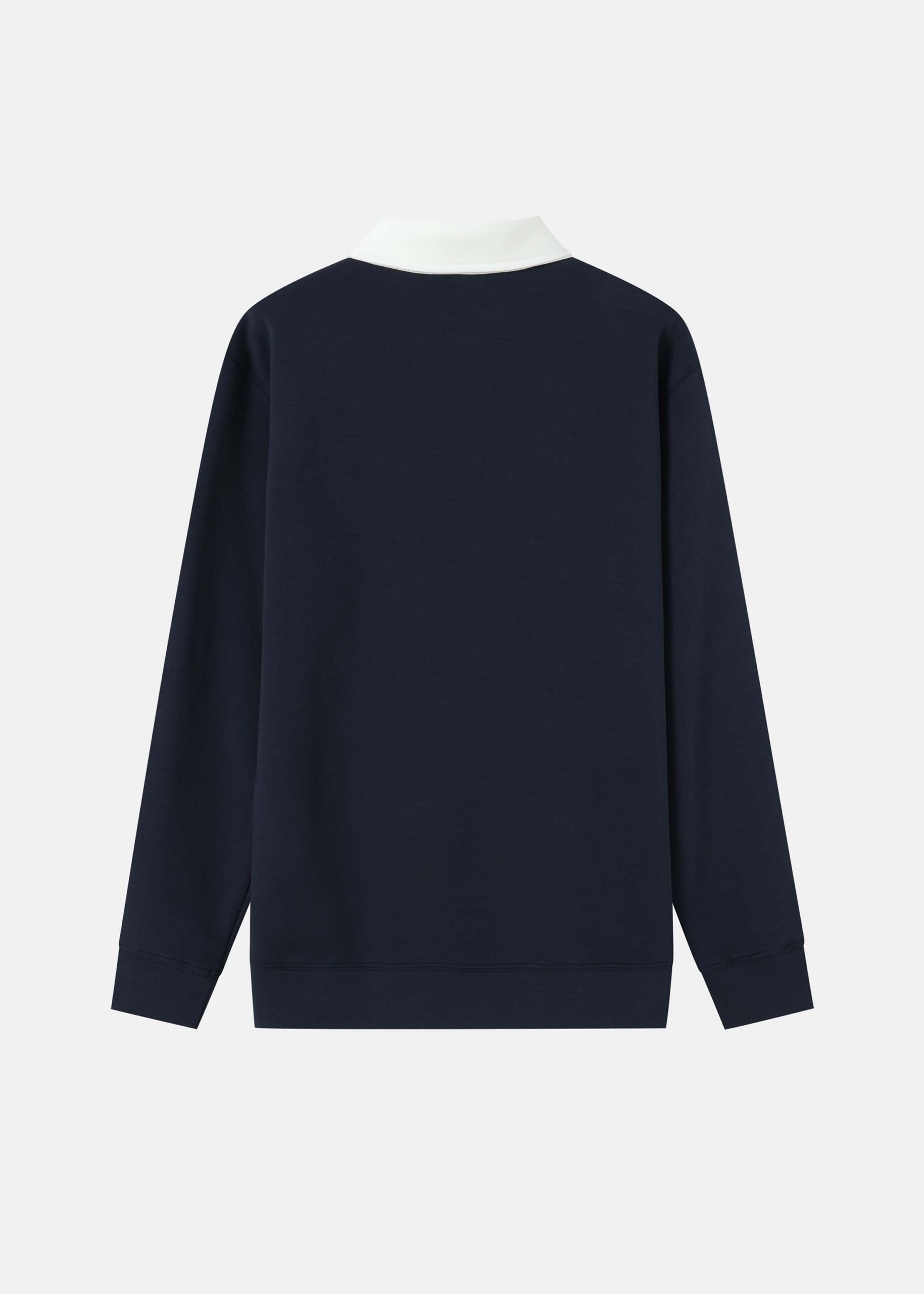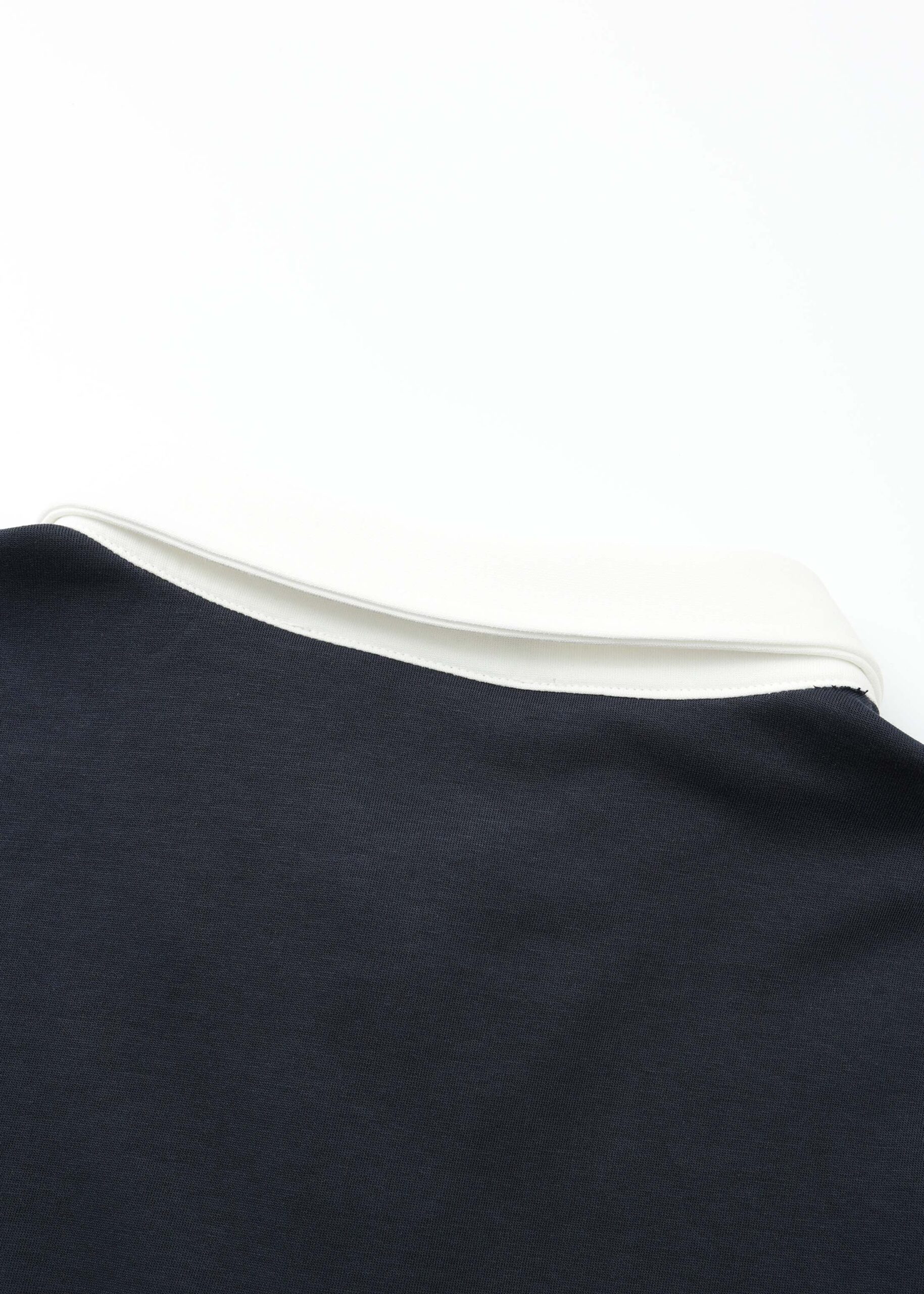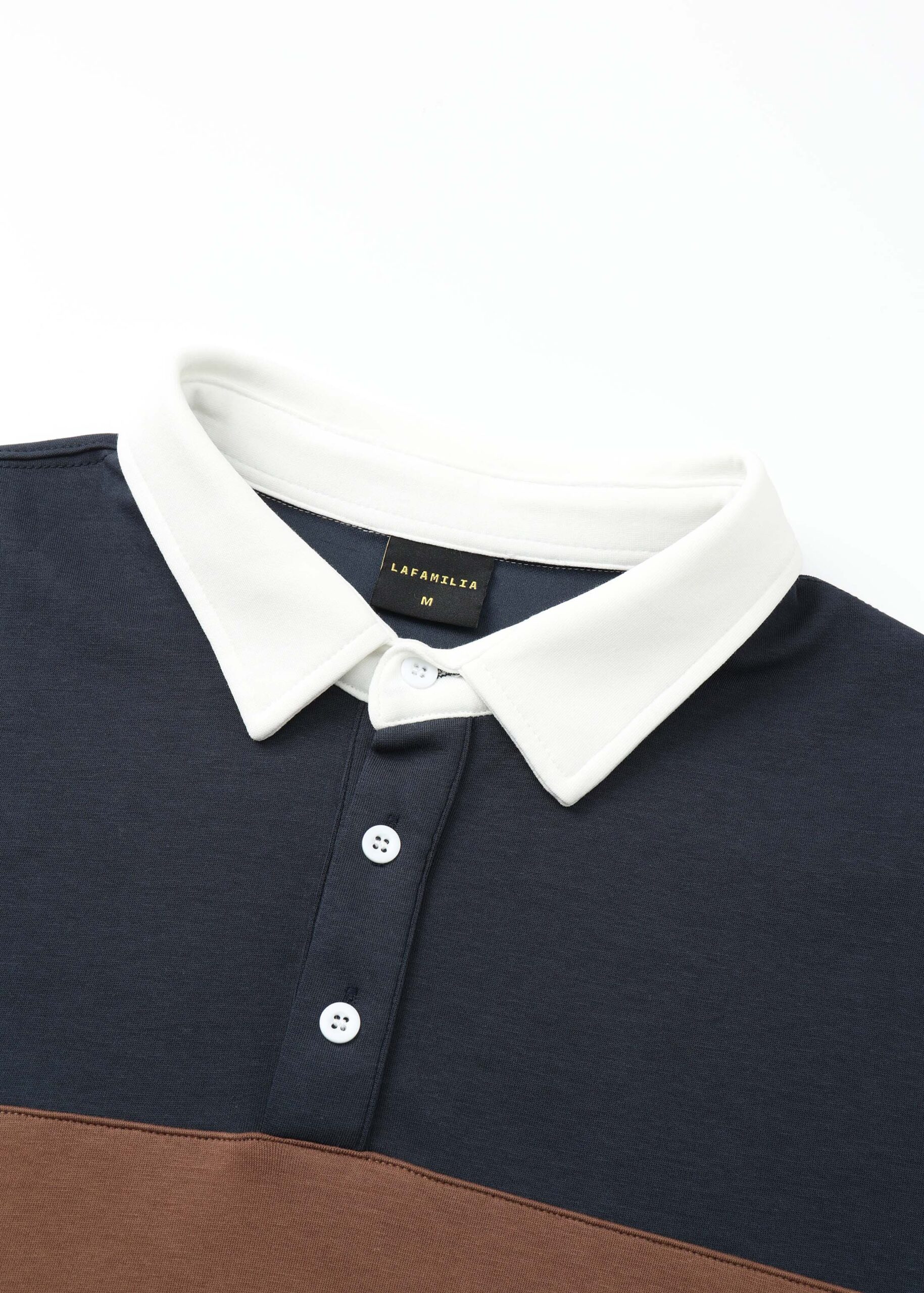 Men polo shirt, color-block, rolled collar with front buttons, long sleeves with tight cuff, unique and modern