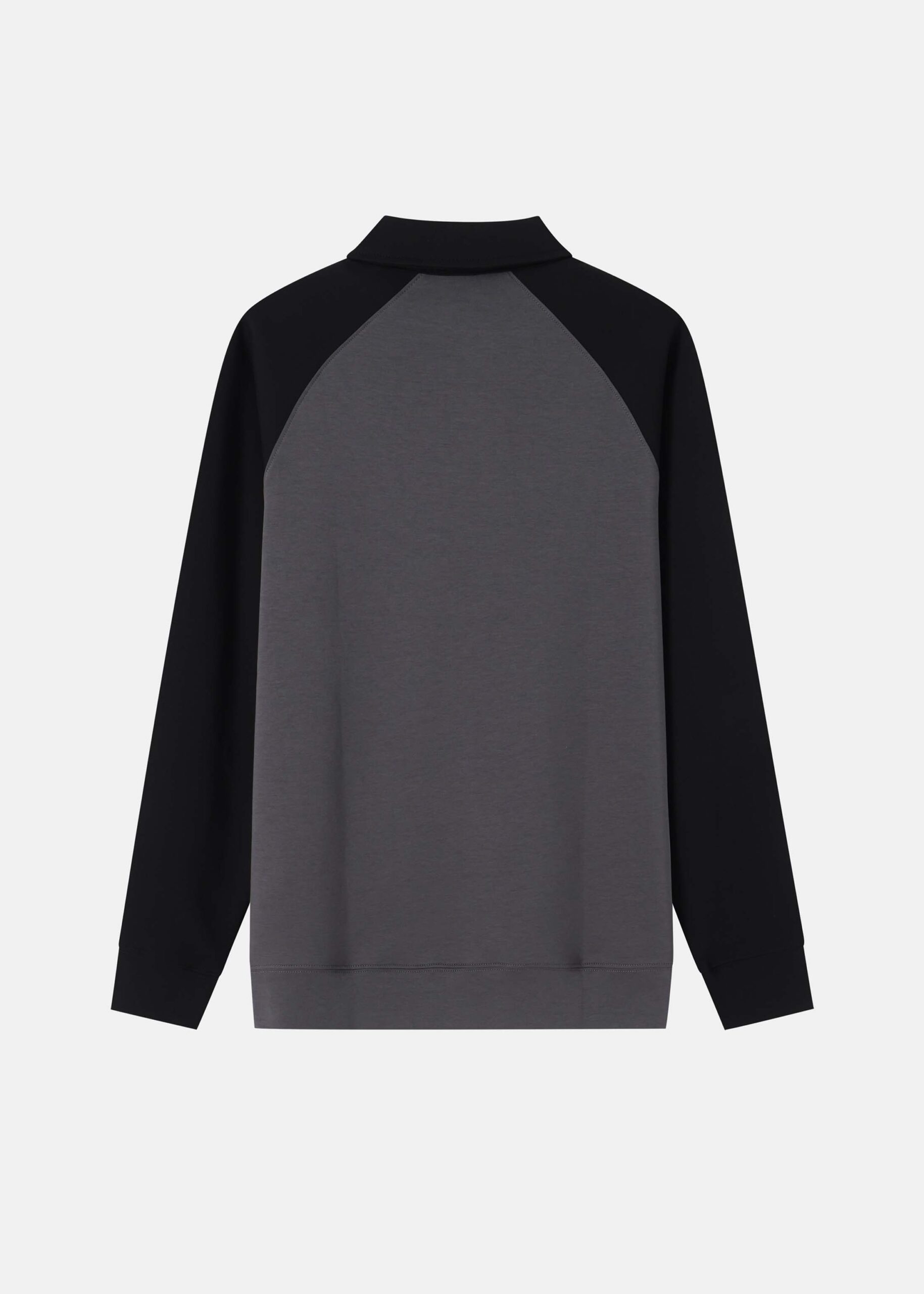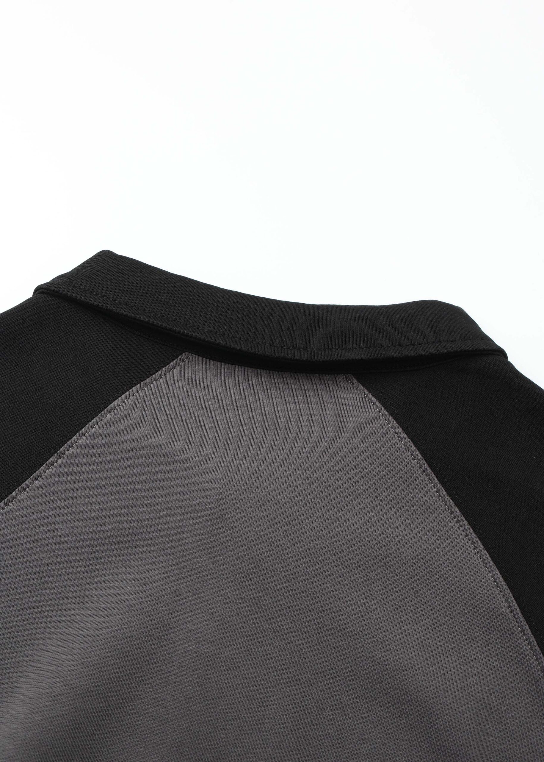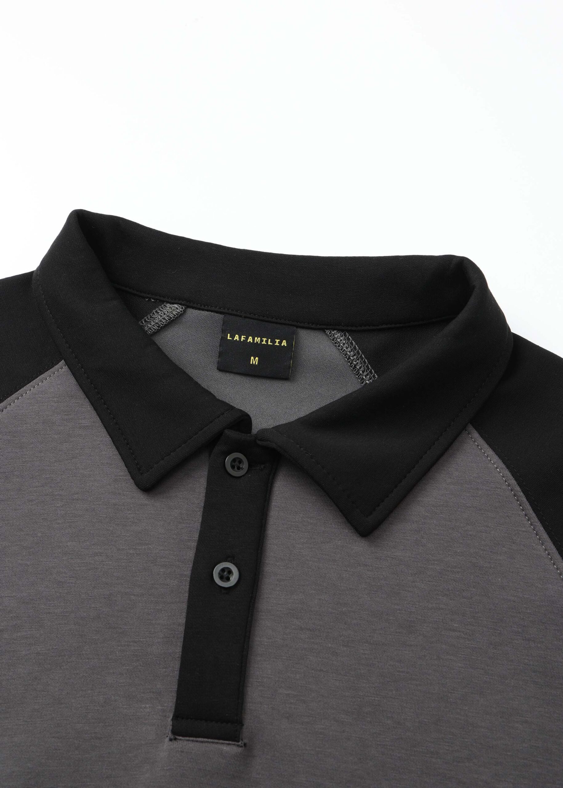 Men polo shirt, color-block, rolled collar with front buttons, long sleeves with tight cuff, unique and modern