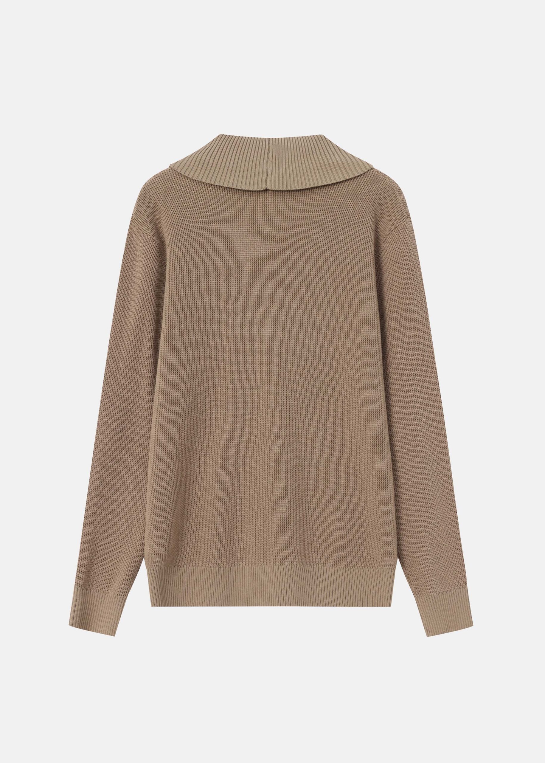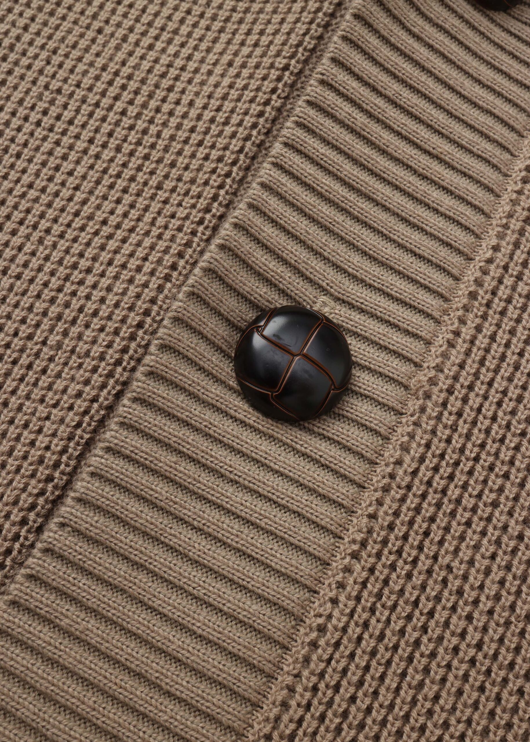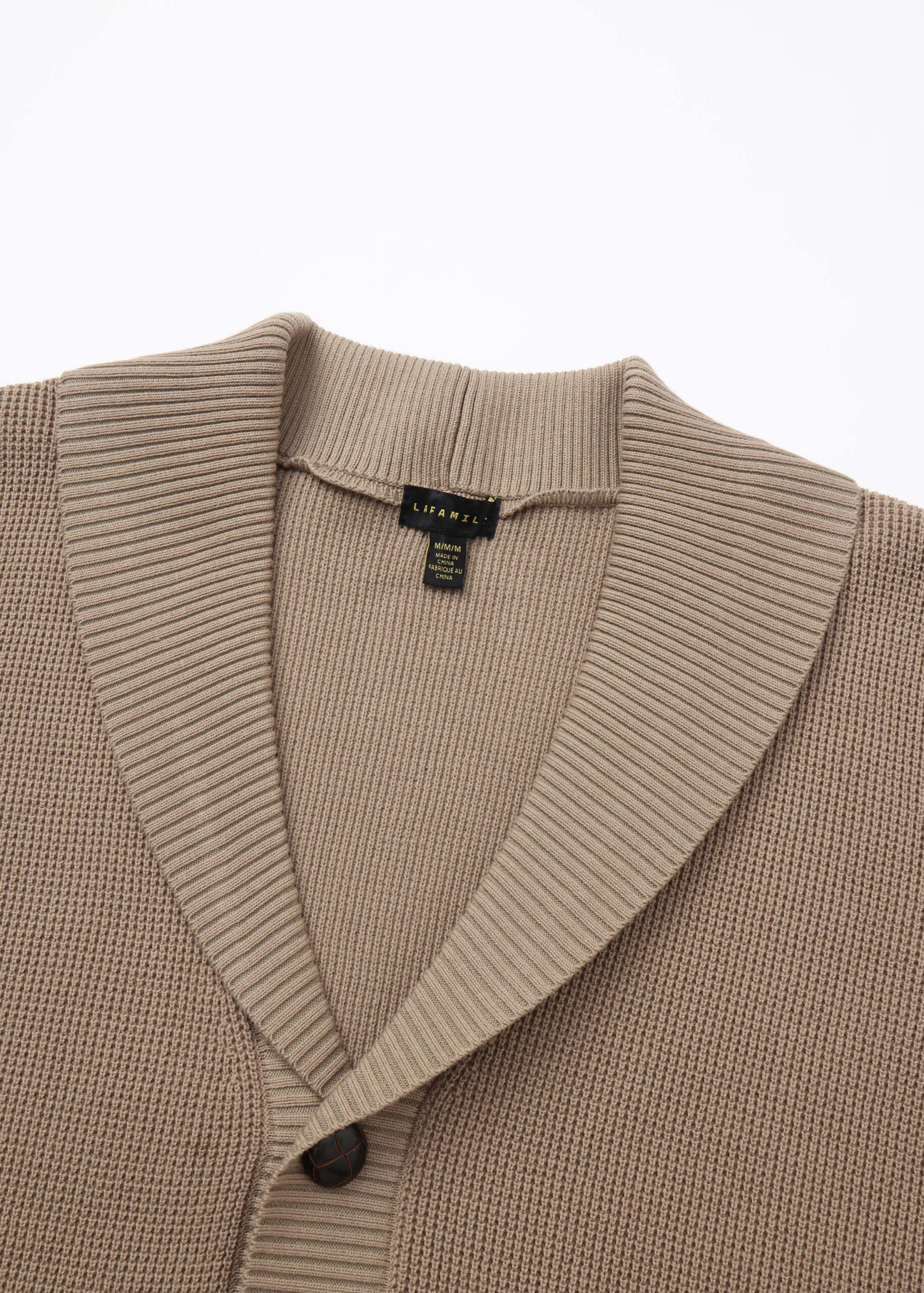 Men sweater, knitted fabric, patterned, rolled collar V neck, front buttons to close, long sleeves, unique and warm