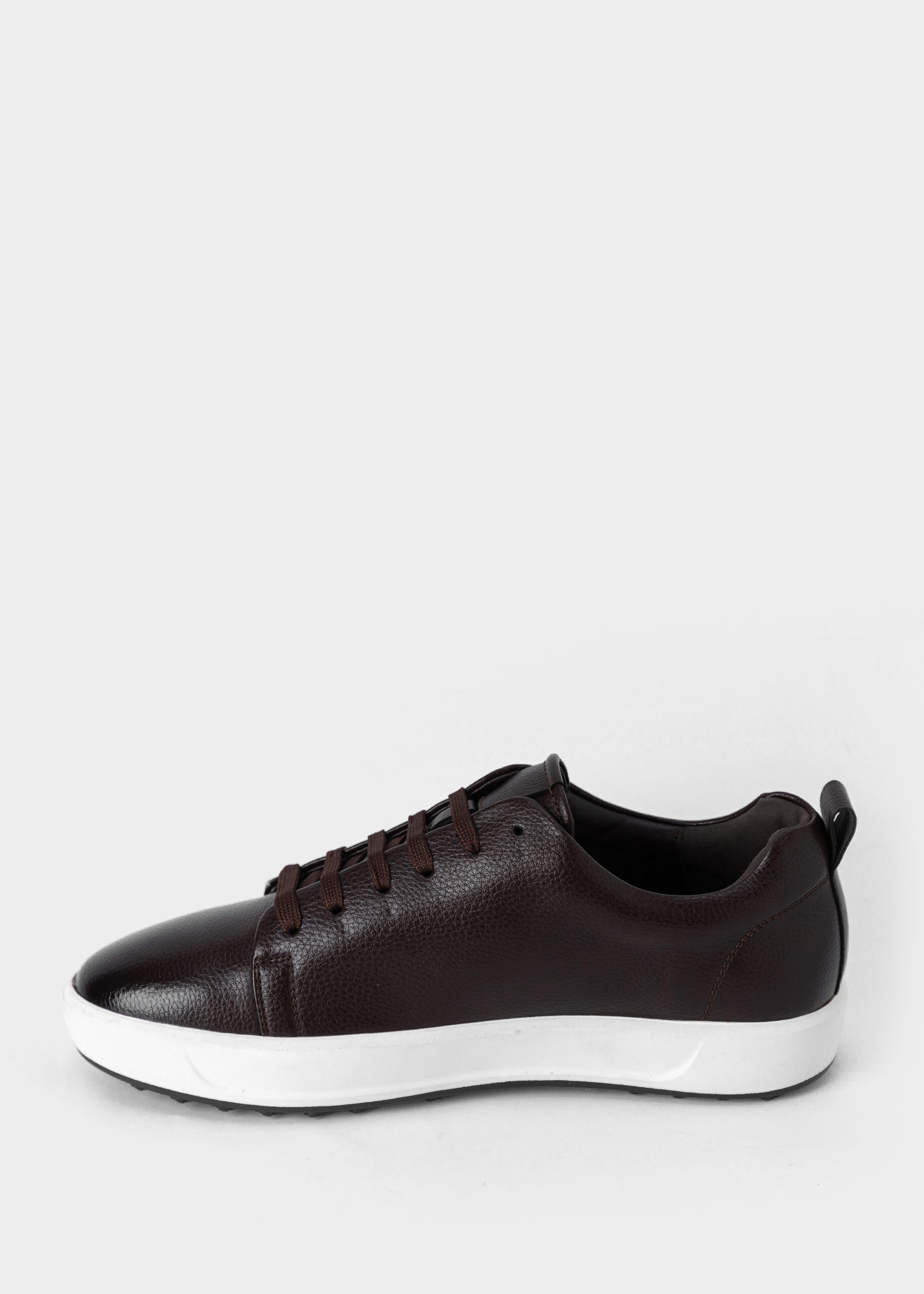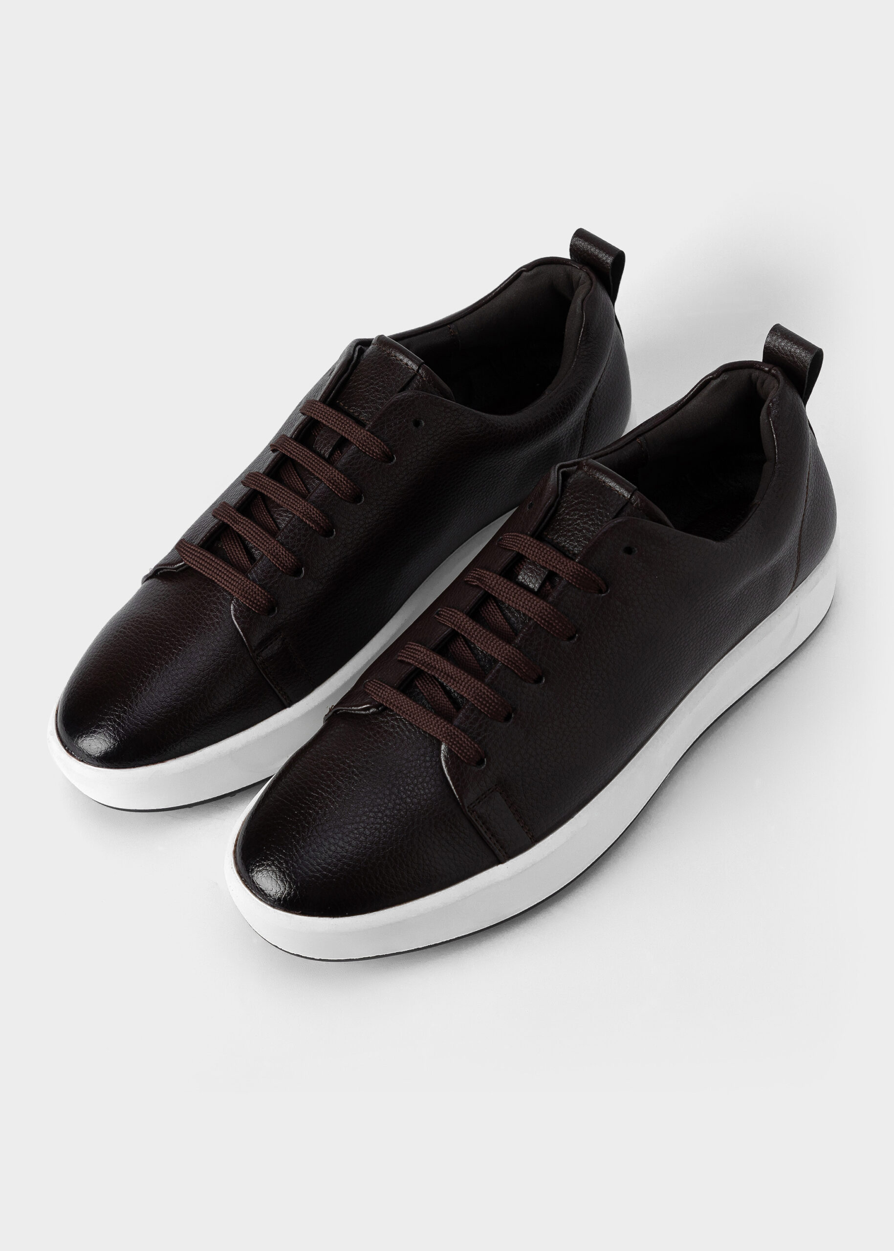 Men trainers, leather, round toe, rubber sole, lace up, comfortable and practical