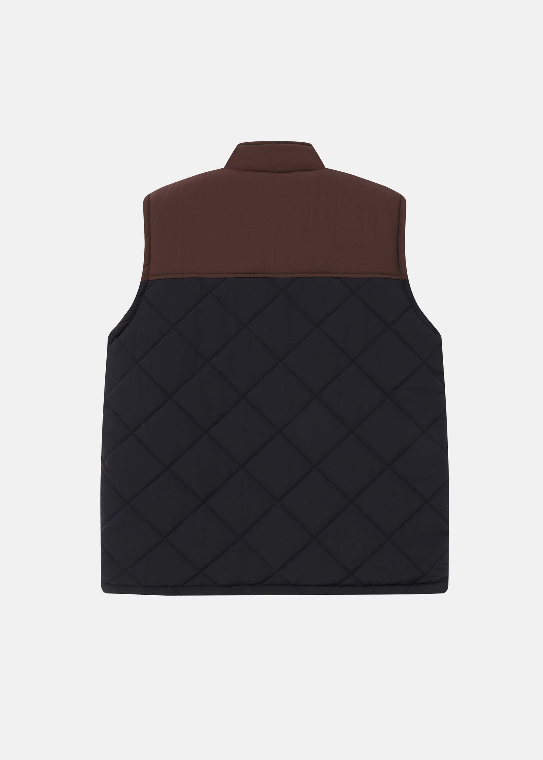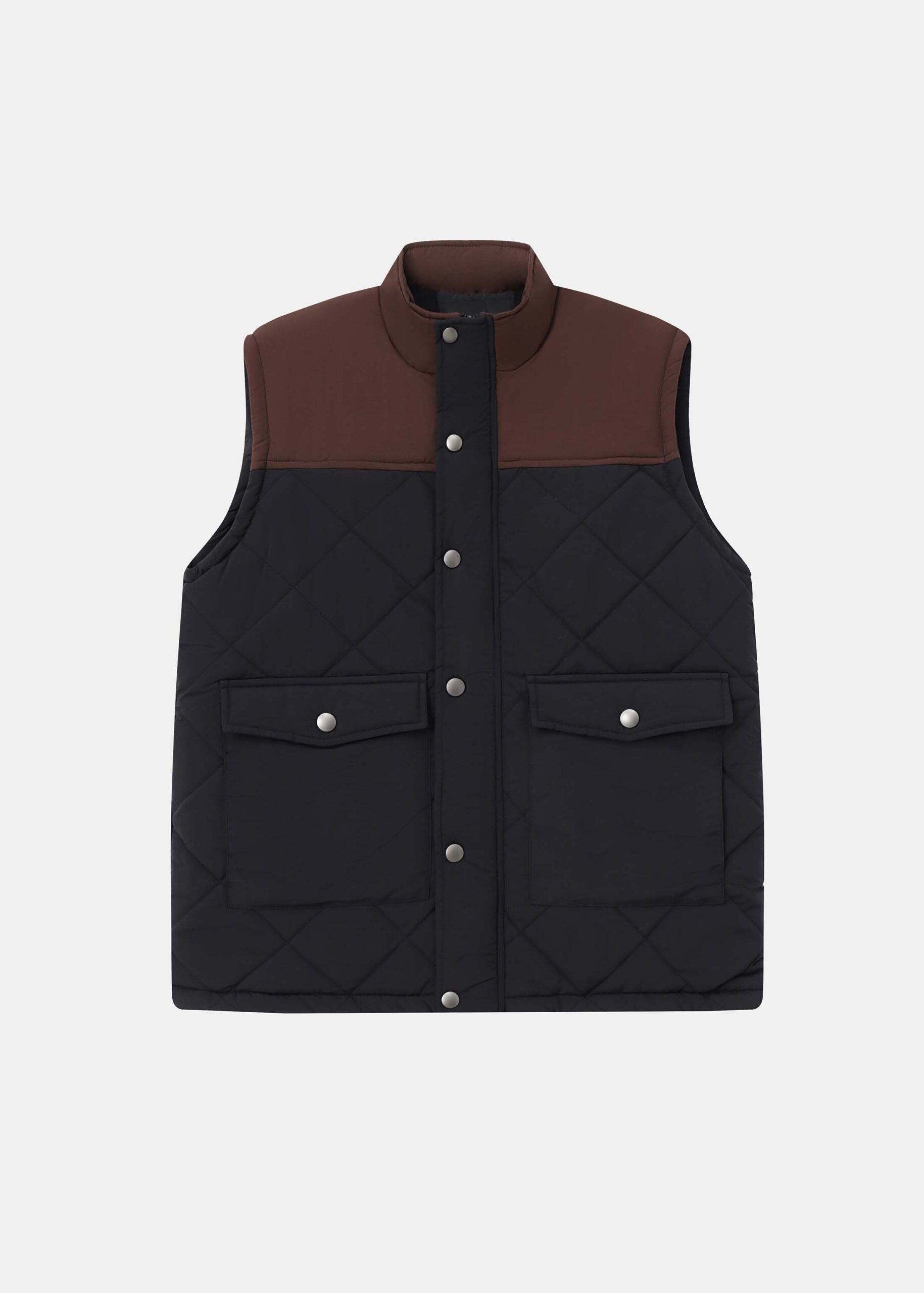 Men vest, padded, color-block, stand collar, sleeveless, front buttons and zipper closure, inner lining, front pockets, unique and warm